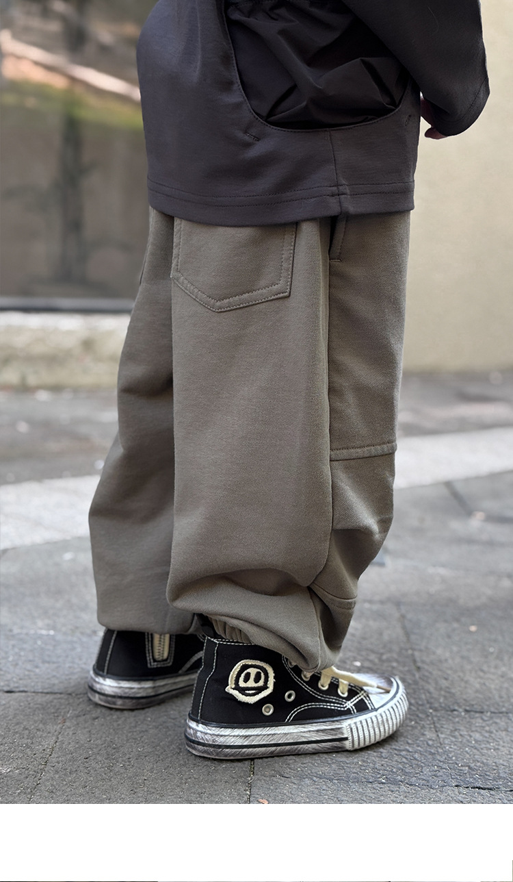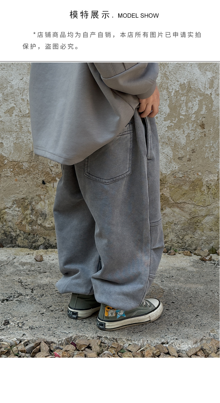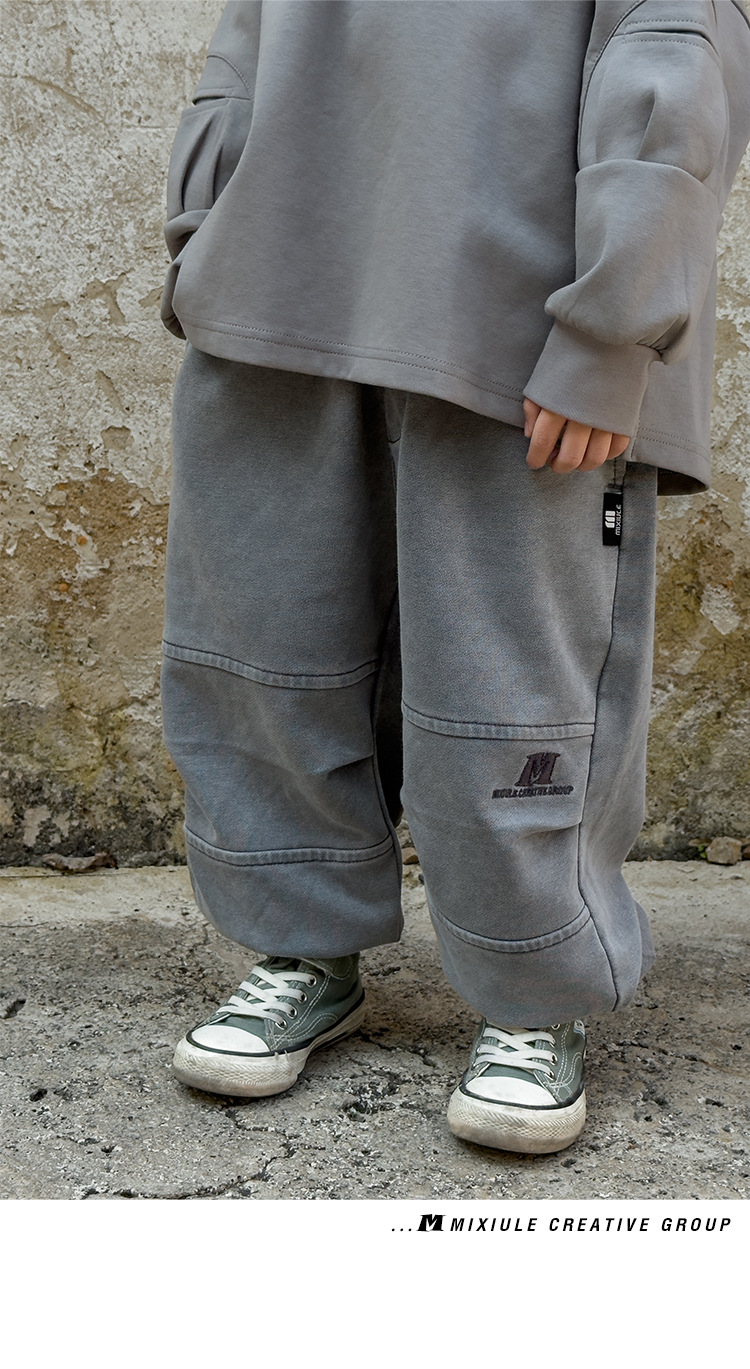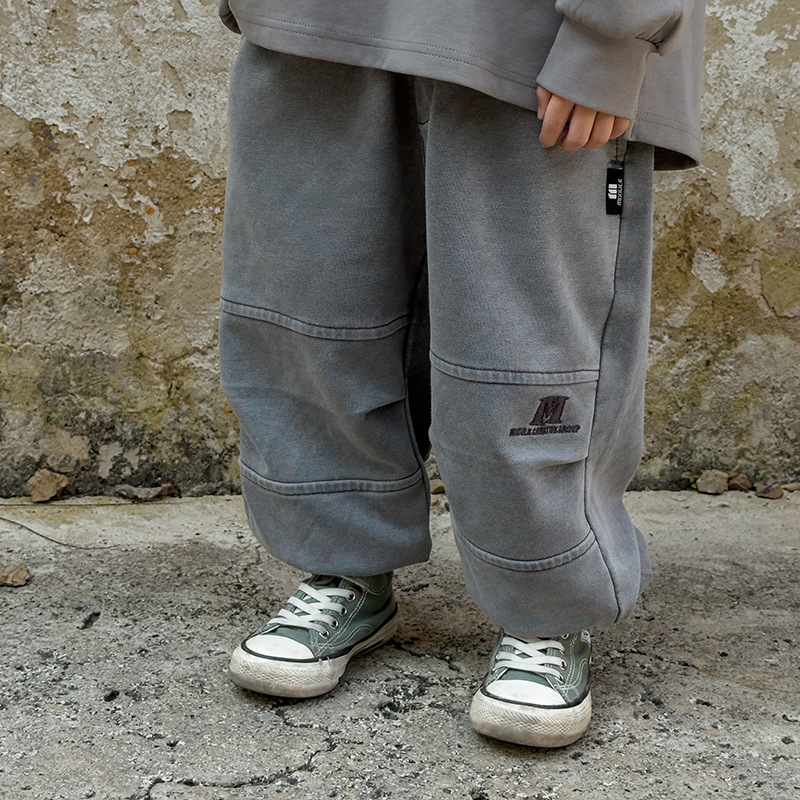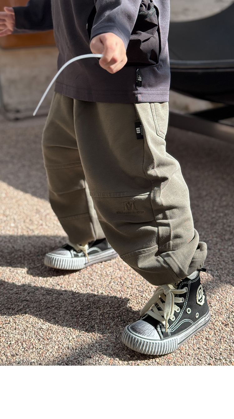 소년 바지 봄과 가을 2025 새로운 도착 이피 잘 생긴 아동복 스프링 워시 아웃 캐주얼 스위트 바지 소년 스포츠 바지스토어 가기