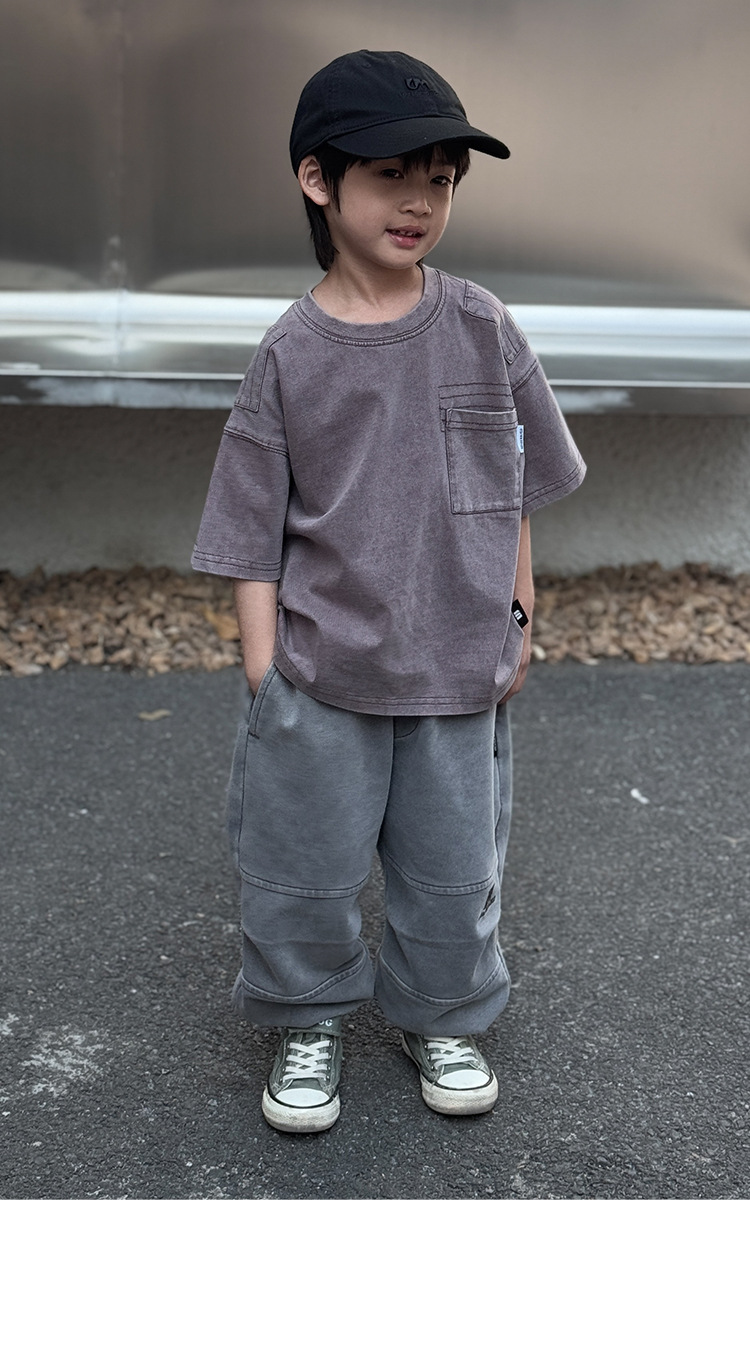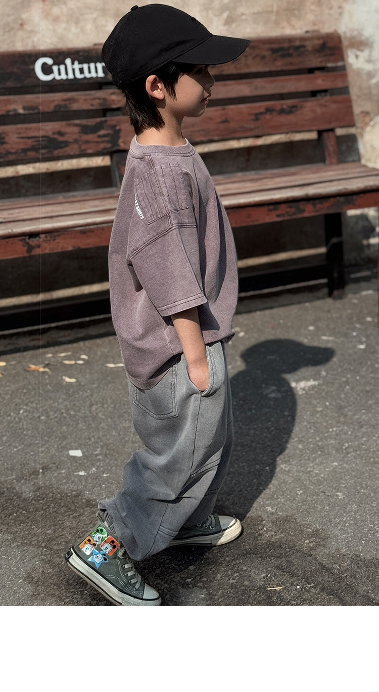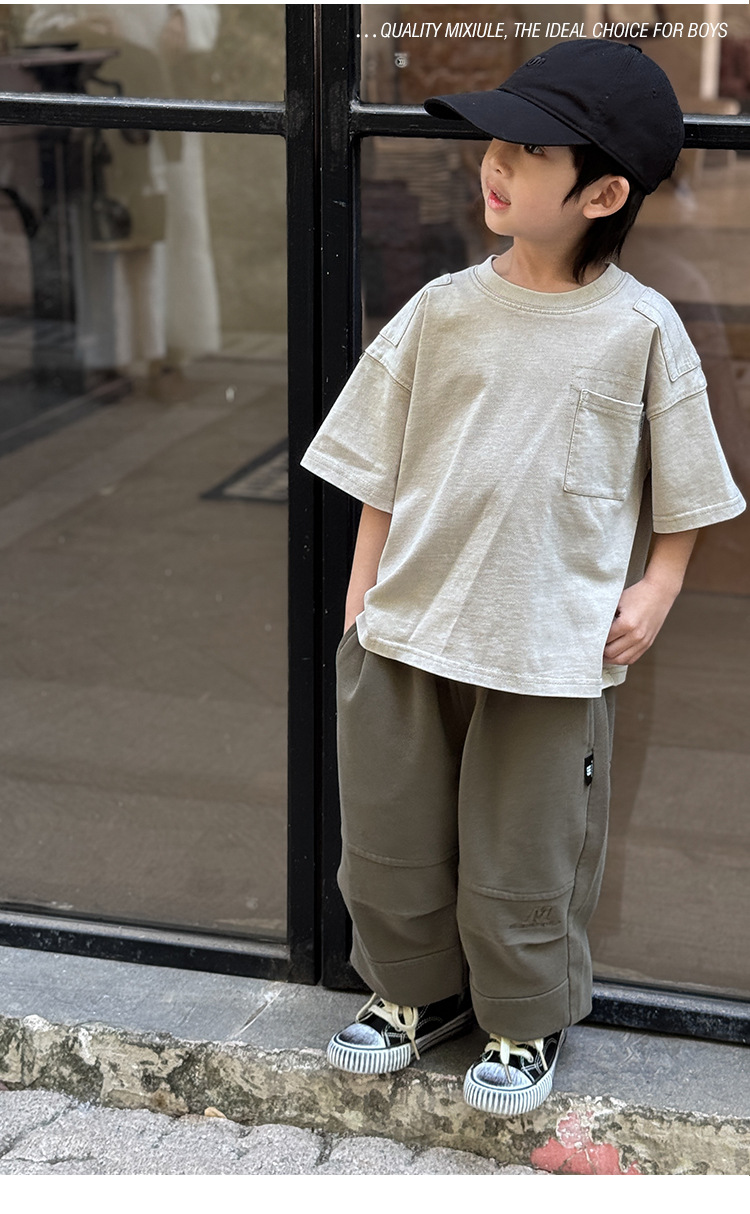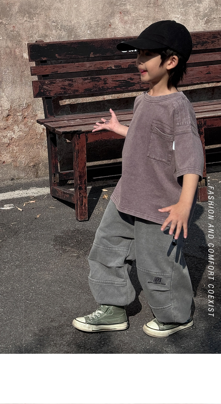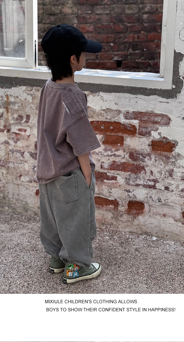 소년 바지 봄과 가을 2025 새로운 도착 이피 잘 생긴 아동복 스프링 워시 아웃 캐주얼 스위트 바지 소년 스포츠 바지스토어 가기