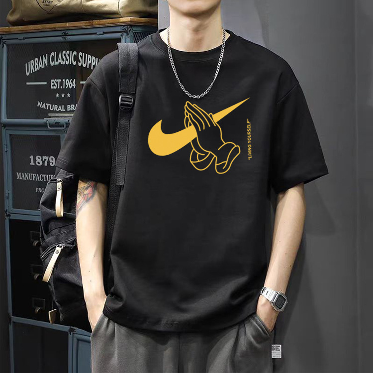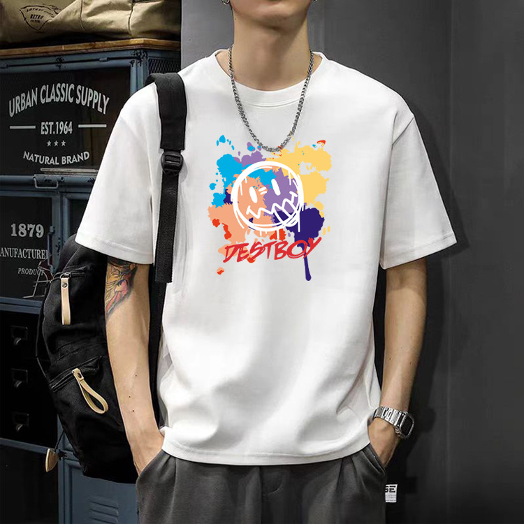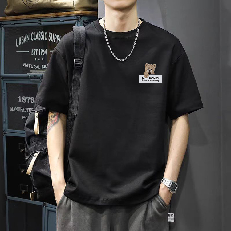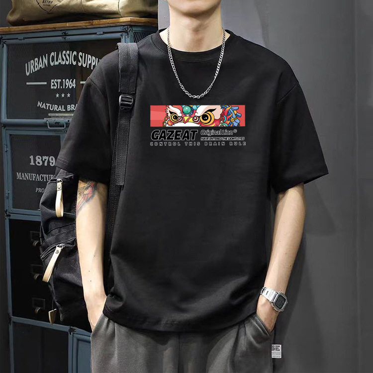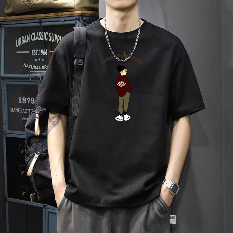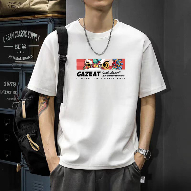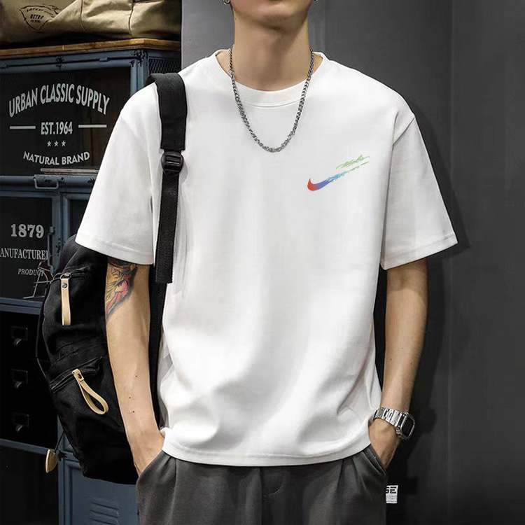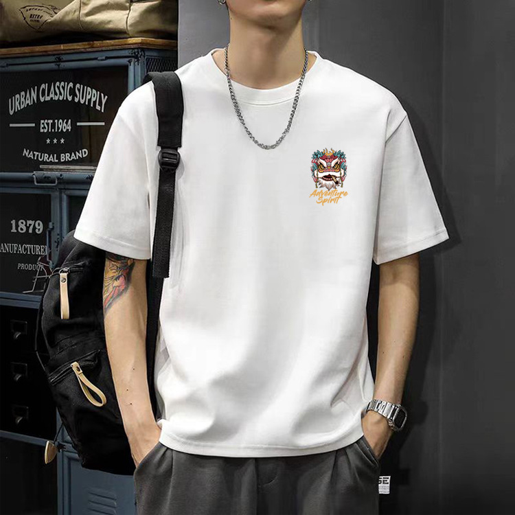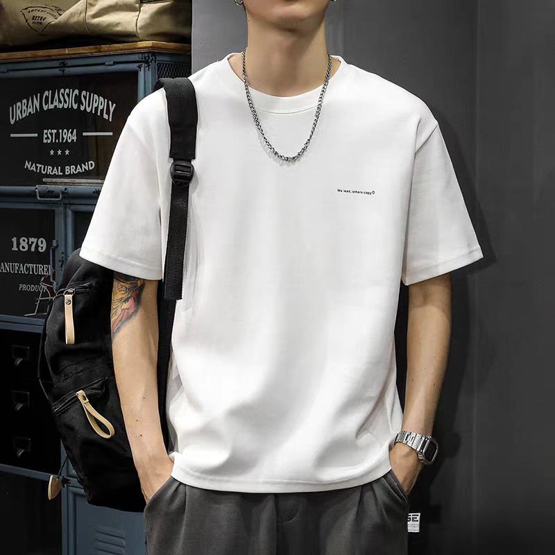 트렌디 한 브랜드 티셔츠 남성용 뉴 헤비 반팔 여름 옷 탑 코튼 루즈 화이트 티셔츠 라운드 넥 반소매 남성스토어 가기