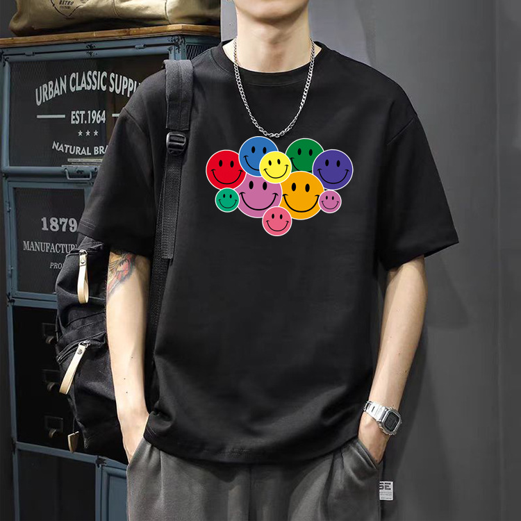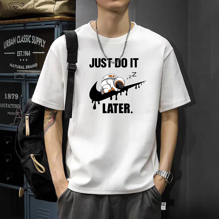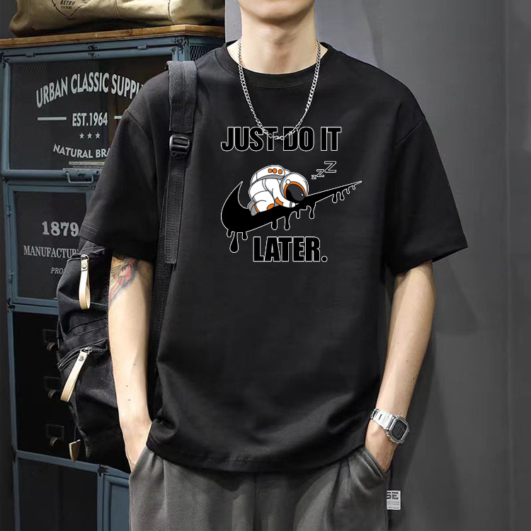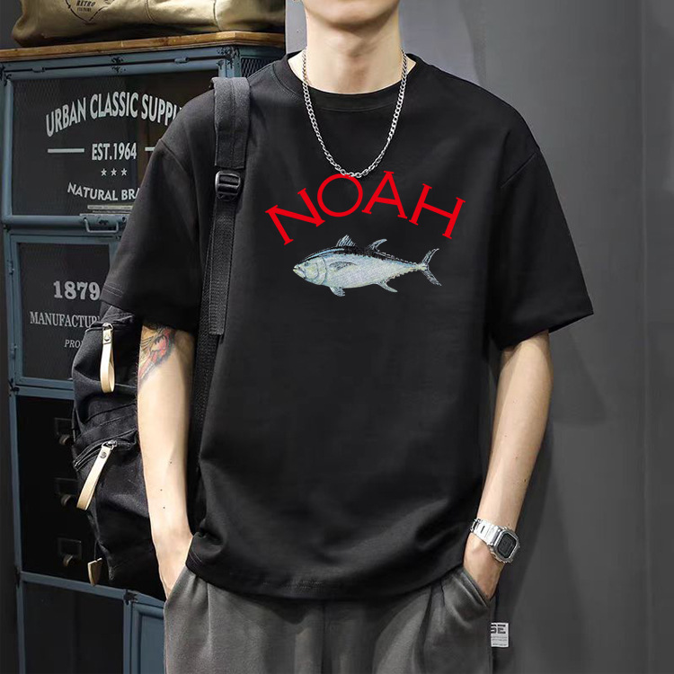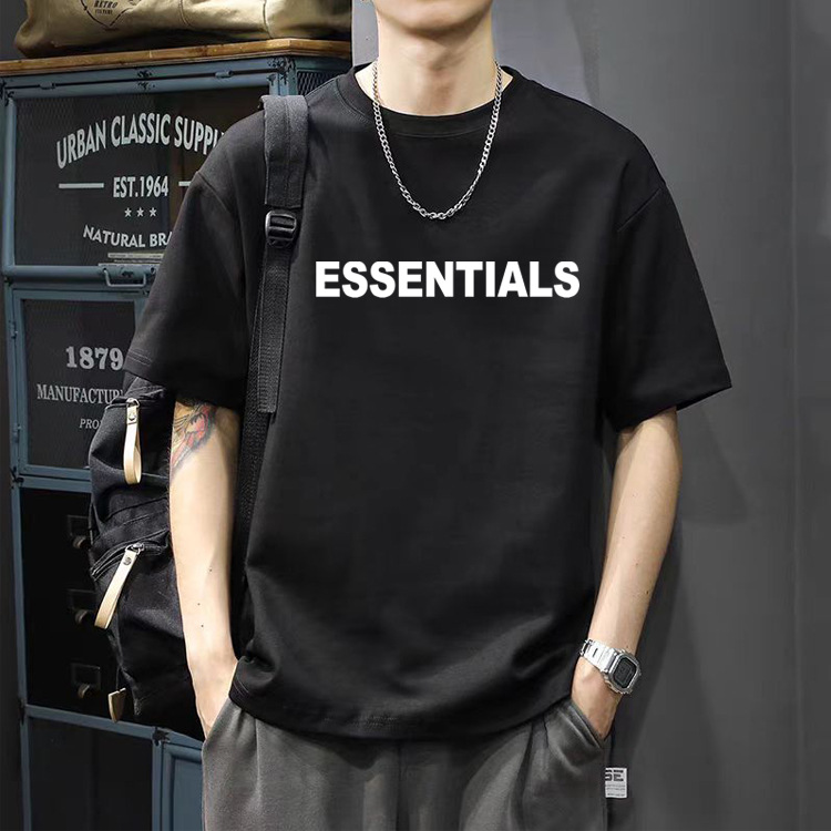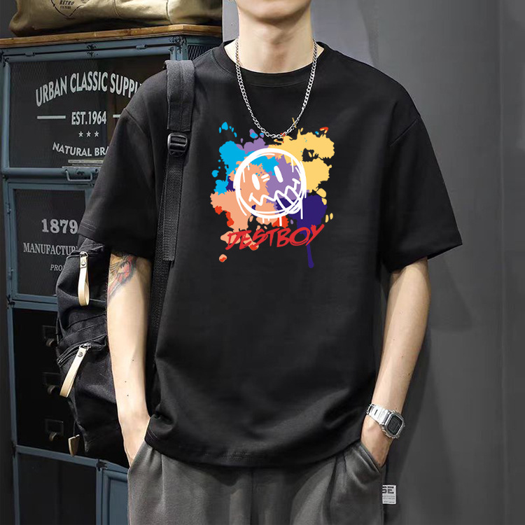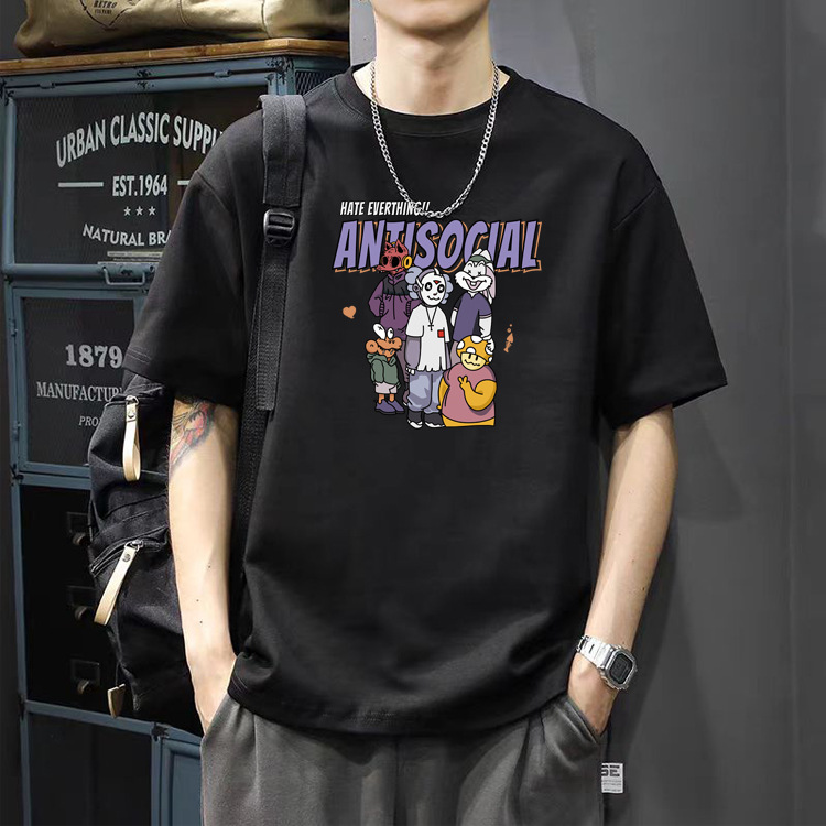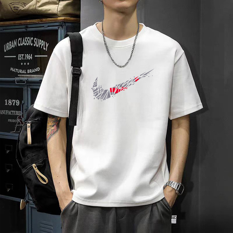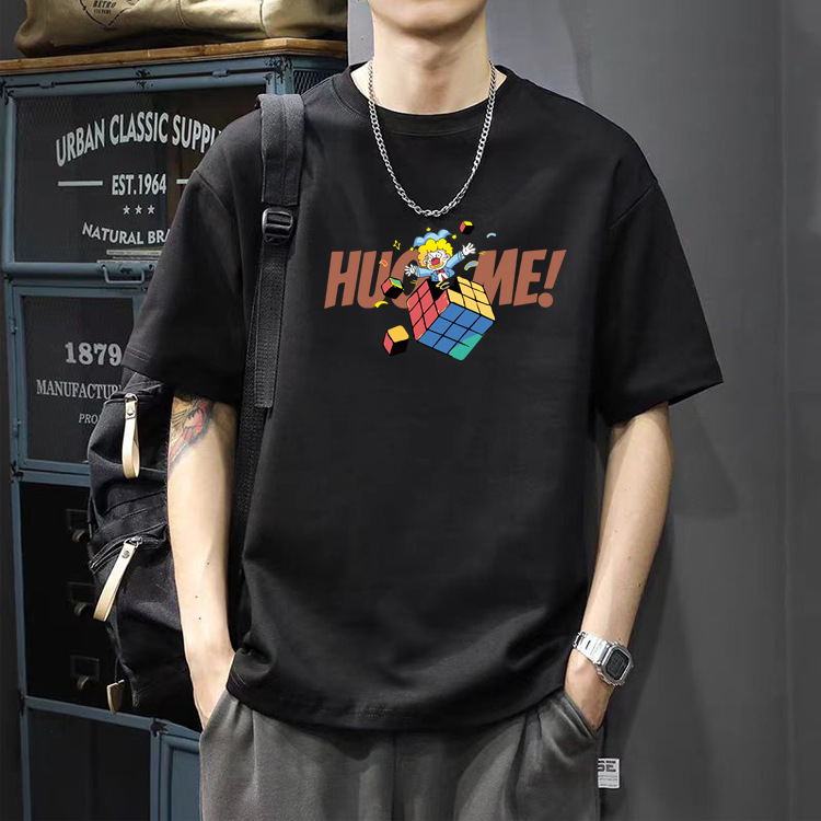 트렌디 한 브랜드 티셔츠 남성용 뉴 헤비 반팔 여름 옷 탑 코튼 루즈 화이트 티셔츠 라운드 넥 반소매 남성스토어 가기