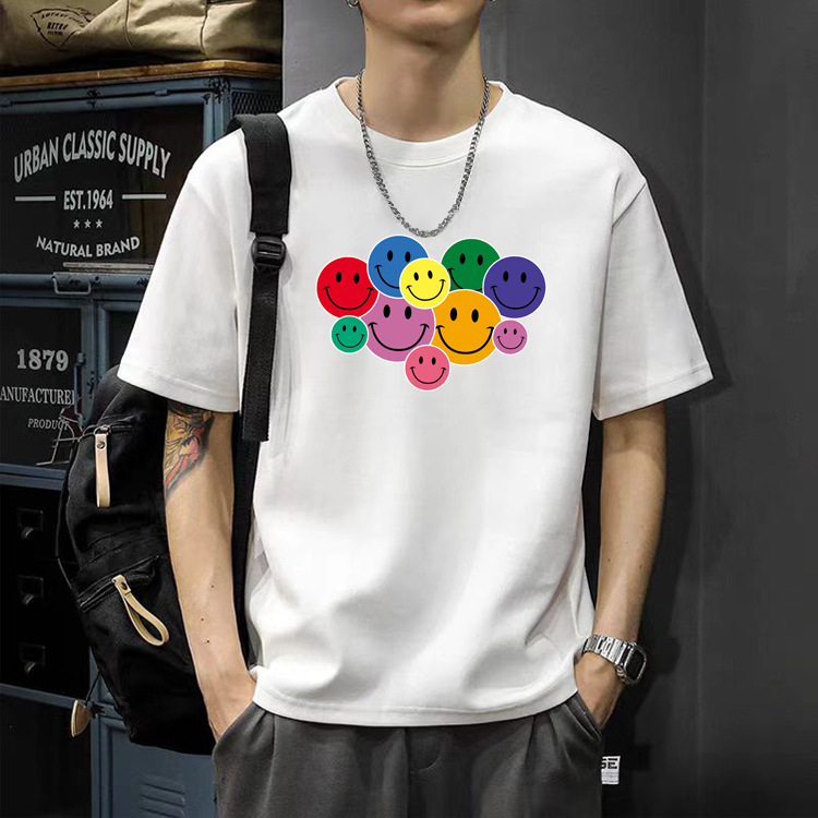 트렌디 한 브랜드 티셔츠 남성용 뉴 헤비 반팔 여름 옷 탑 코튼 루즈 화이트 티셔츠 라운드 넥 반소매 남성