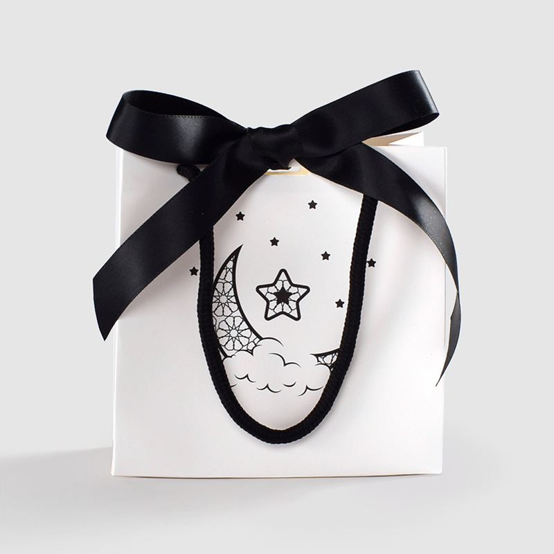 간단한 화이트 스타 문 큰 활 미니 작은 핸드백 재고 신선한 흑백 손 쇼핑백