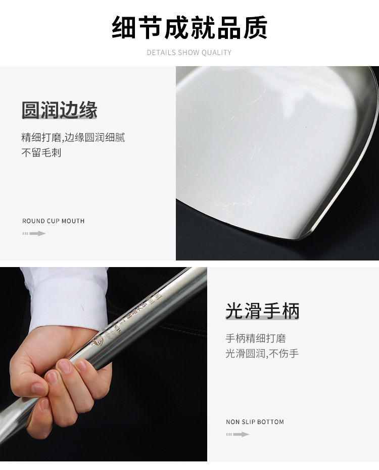상업용 304 스테인레스 스틸 긴 손잡이 대형 삽 요리사 요리 대형 냄비 삽 스테인레스 스틸 삽 공장 매점 316L스토어 가기