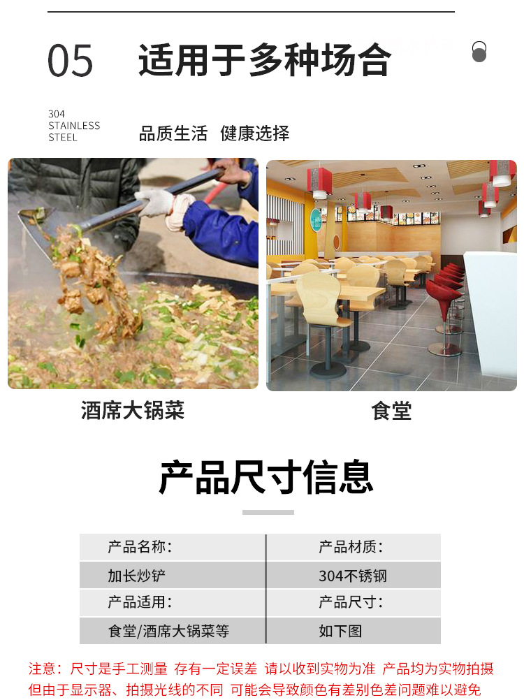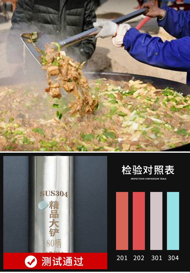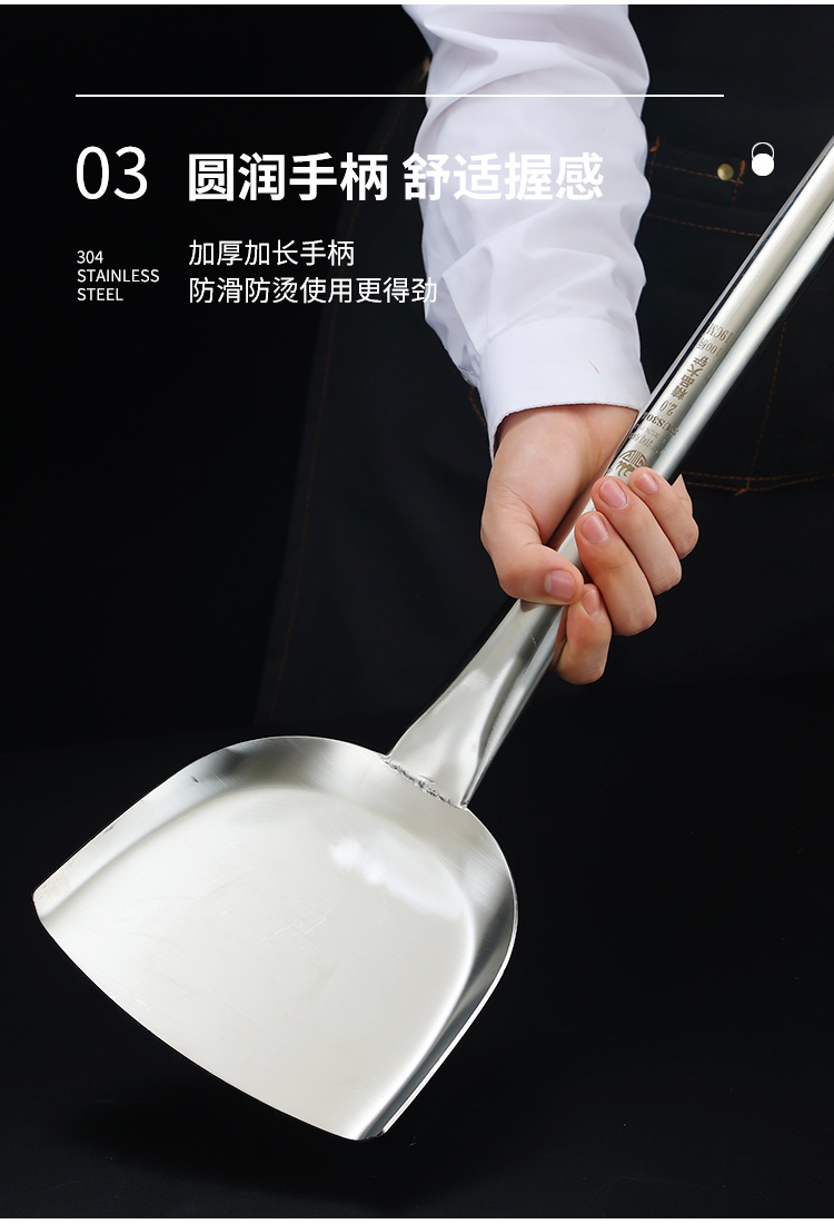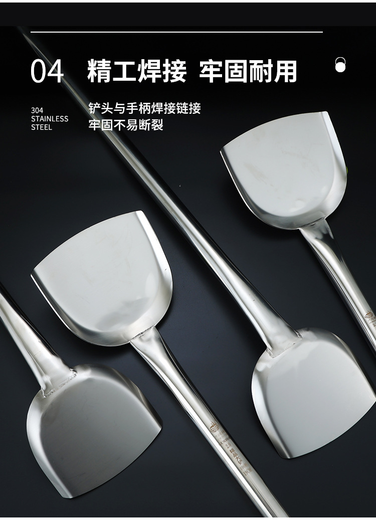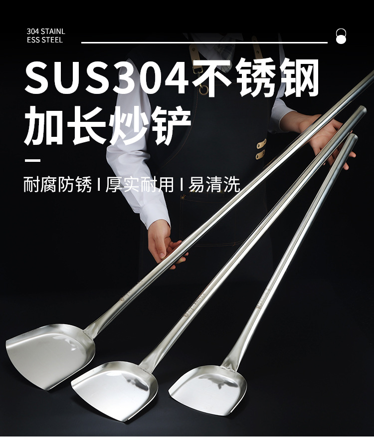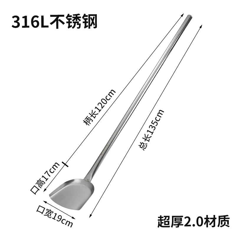 상업용 304 스테인레스 스틸 긴 손잡이 대형 삽 요리사 요리 대형 냄비 삽 스테인레스 스틸 삽 공장 매점 316L