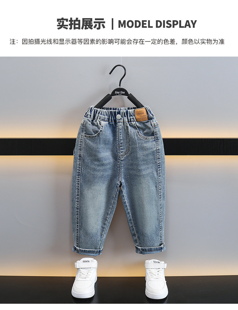 어린이 2025 새 소년 스트레이트 청바지 가을 바지 봄과 가을 어린이 청바지 서양식 한국 스타일