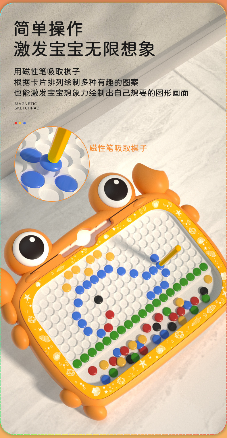 게 모양 자석 드로잉 보드, 1~3세 유아용 조기 교육 장난감
