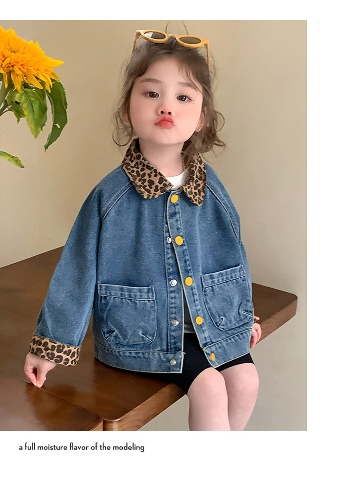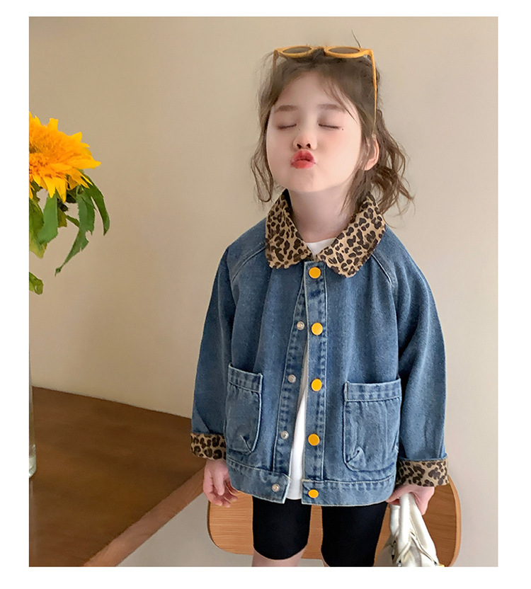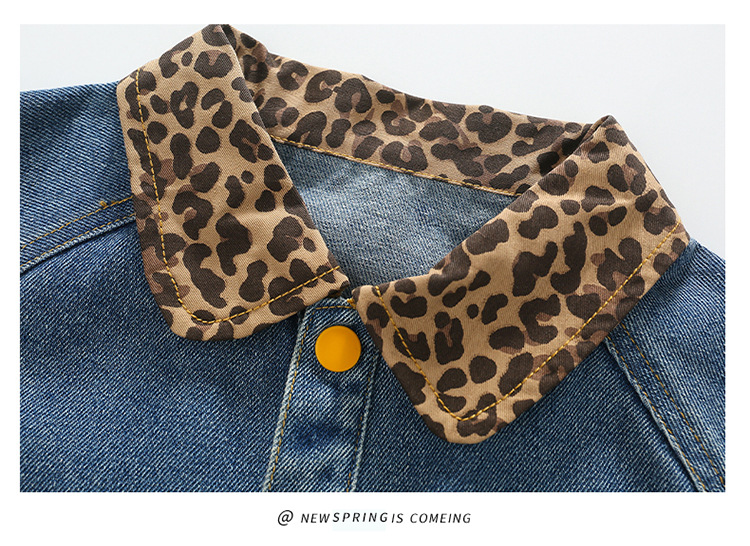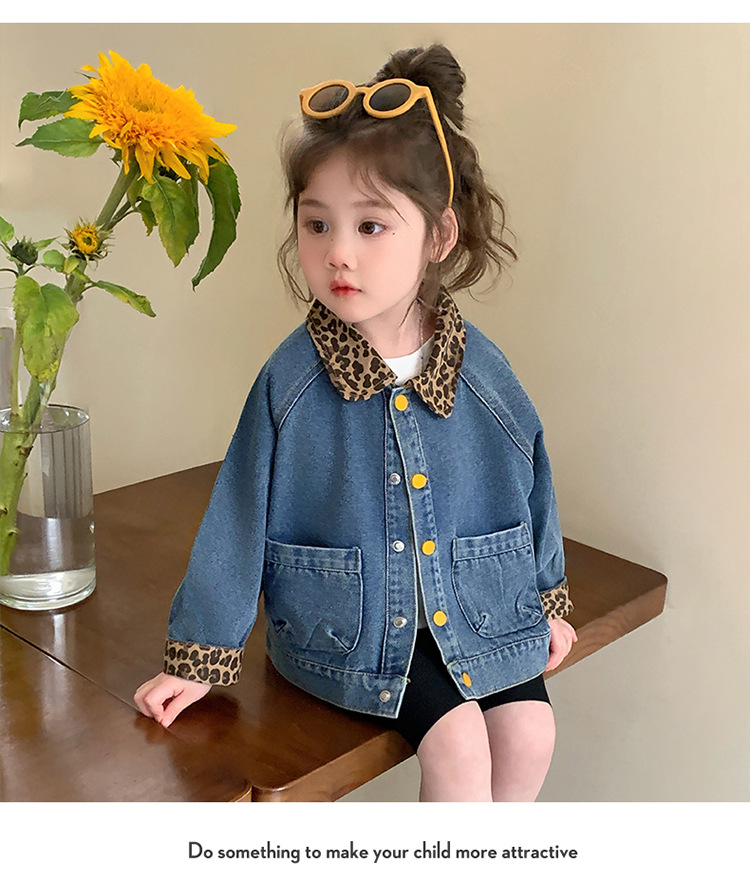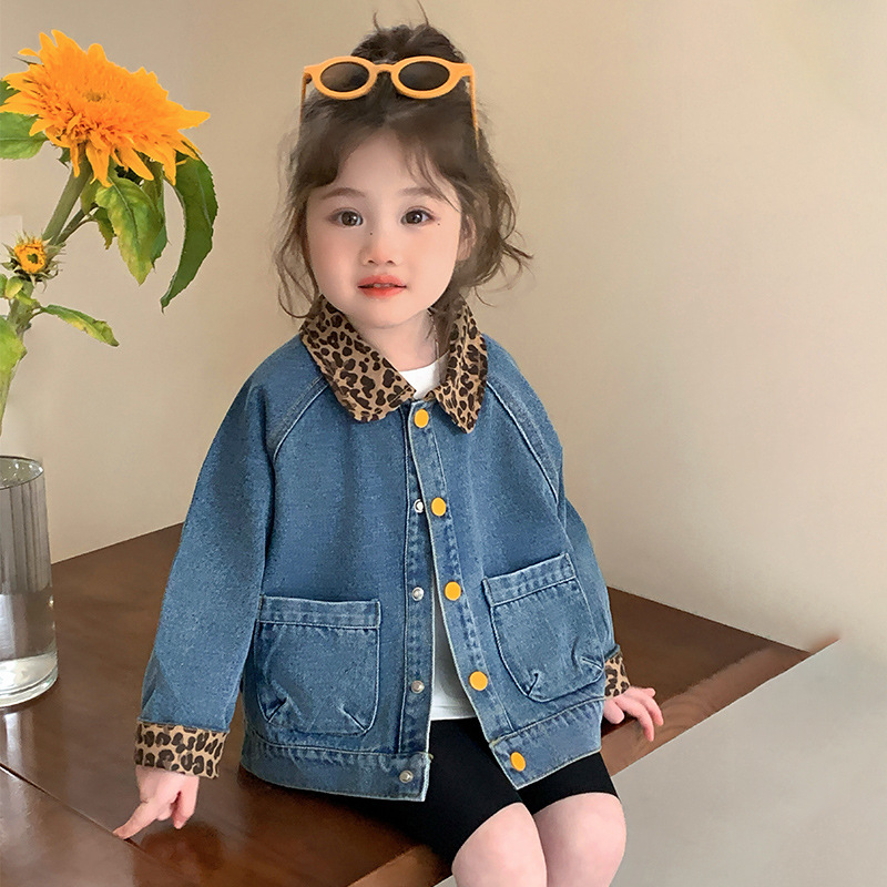 여아용 만화 카툰 데님 재킷, 아기용 봄 가을 얇은 2026 레오파드 프린트 칼라 재킷, 어린이용 고양이 카디건스토어 가기