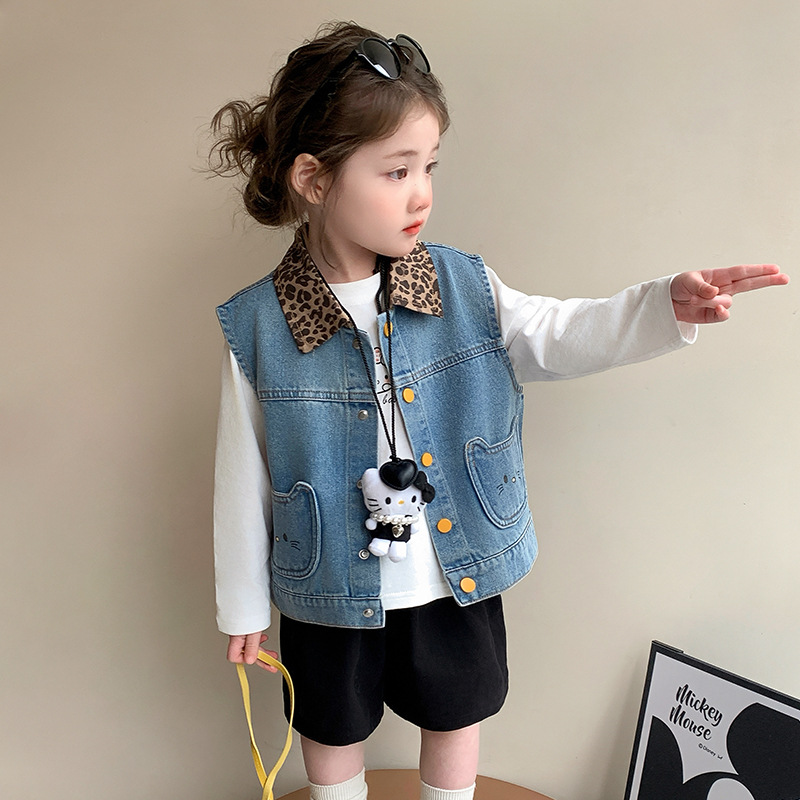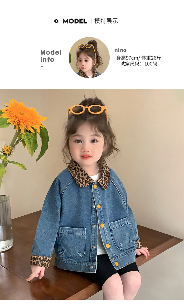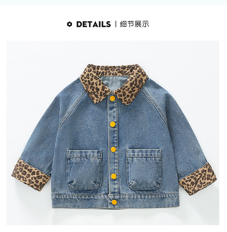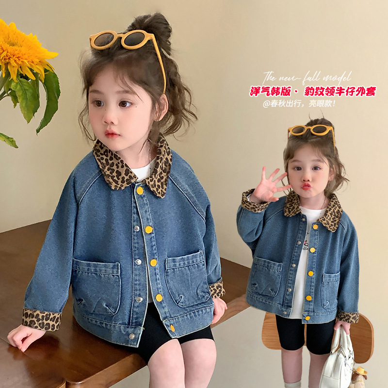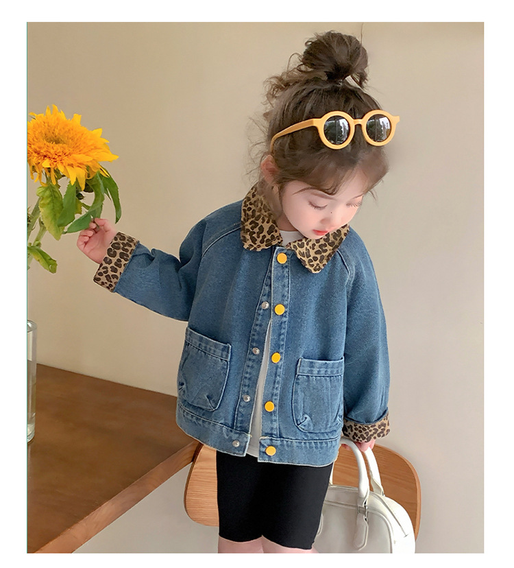 여아용 만화 카툰 데님 재킷, 아기용 봄 가을 얇은 2026 레오파드 프린트 칼라 재킷, 어린이용 고양이 카디건스토어 가기