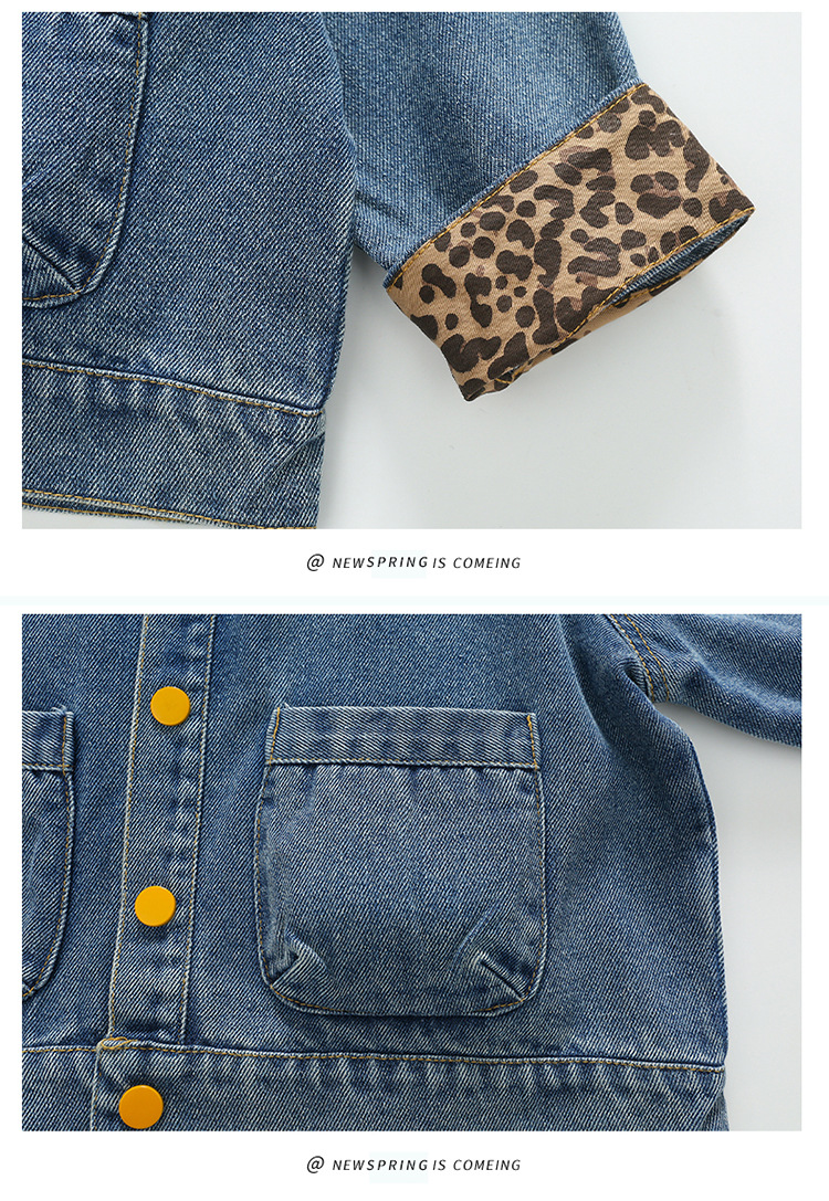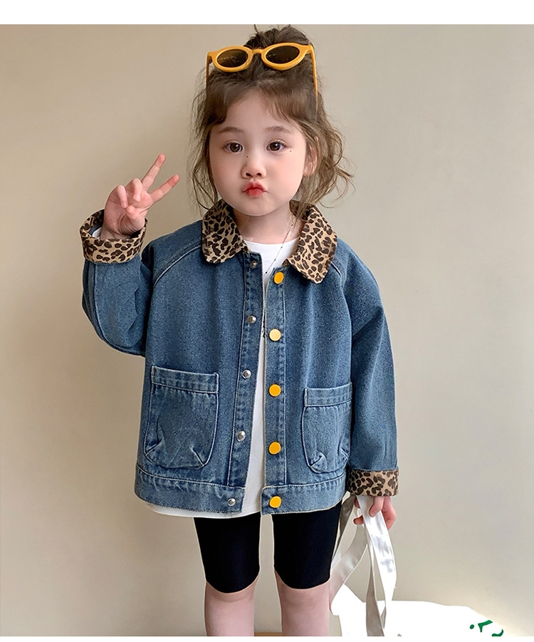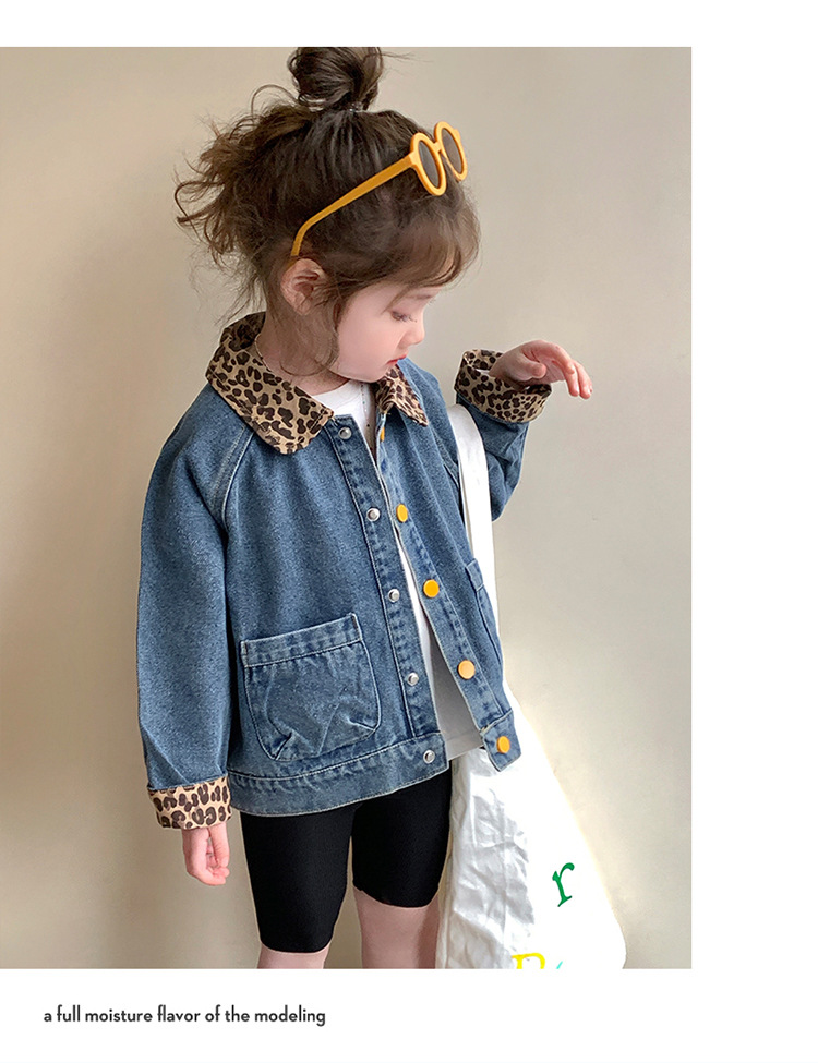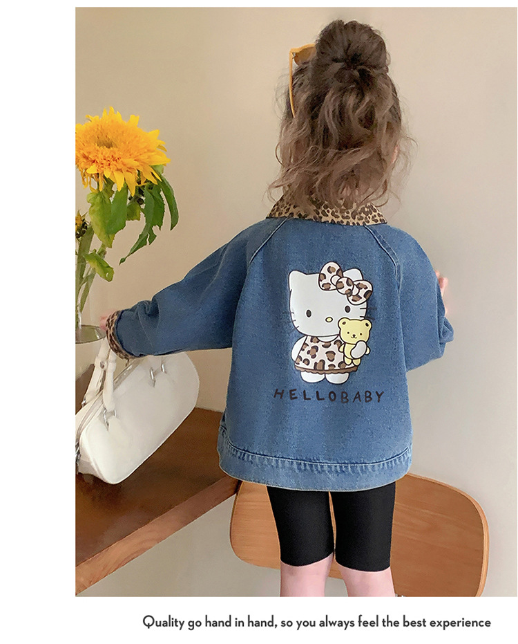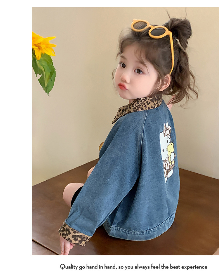 여아용 만화 카툰 데님 재킷, 아기용 봄 가을 얇은 2026 레오파드 프린트 칼라 재킷, 어린이용 고양이 카디건