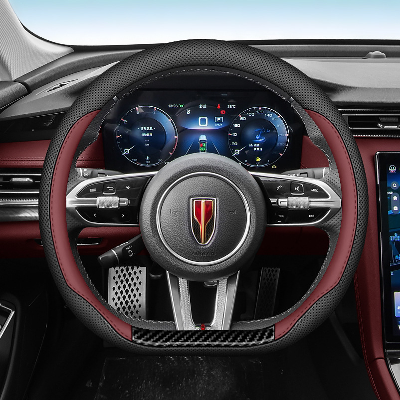 붉은 깃발 H6/h9/HS3/H5 스티어링 휠 커버 나파 가죽 초박형 미끄럼 방지 땀 원색 핸들 바 커버에 적합 4