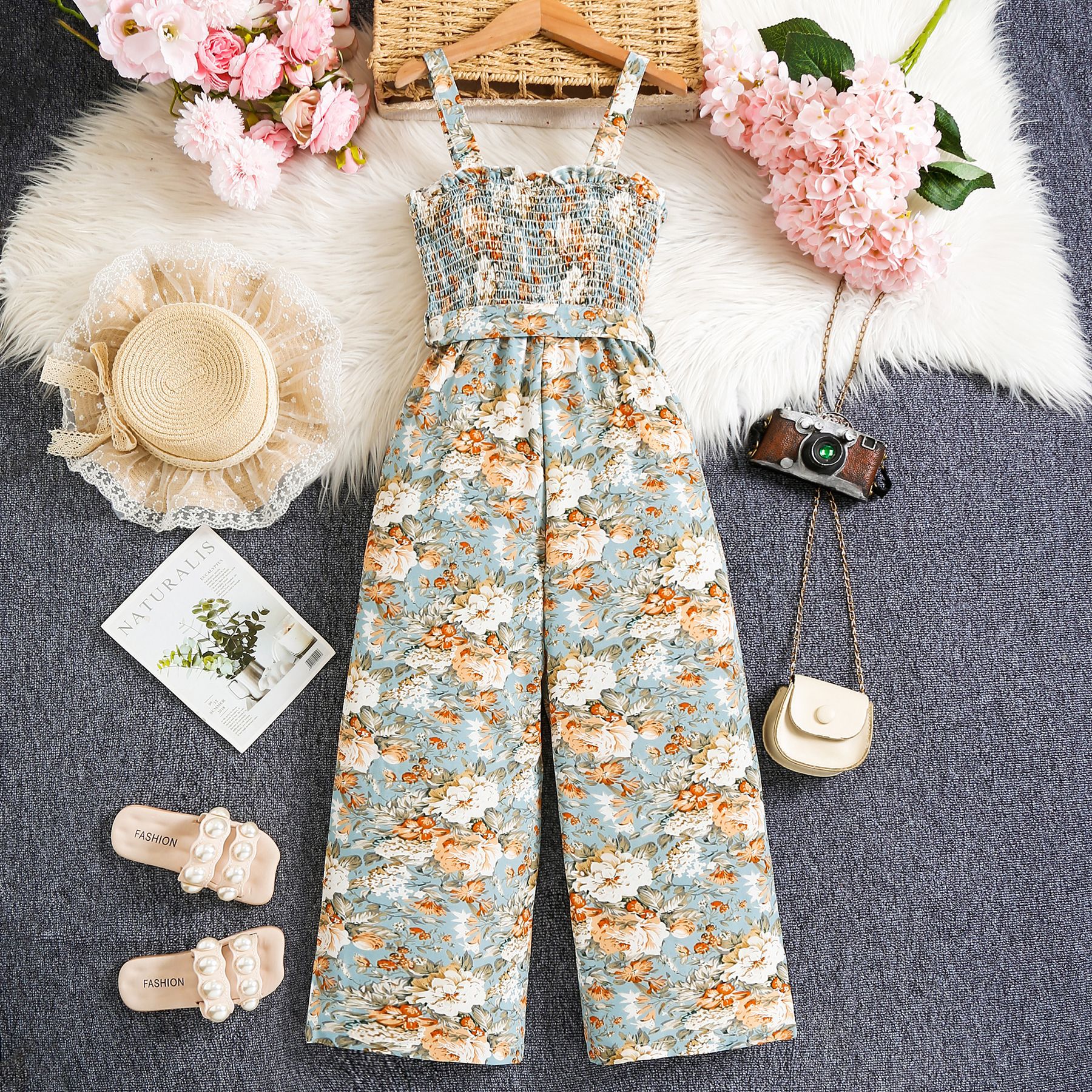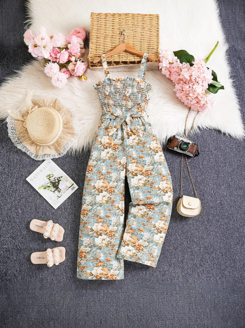 팔렌 시아 대외 무역 국경 8-12 세 여름 소녀 캐주얼 인쇄 슬링 슬림 핏 바지스토어 가기