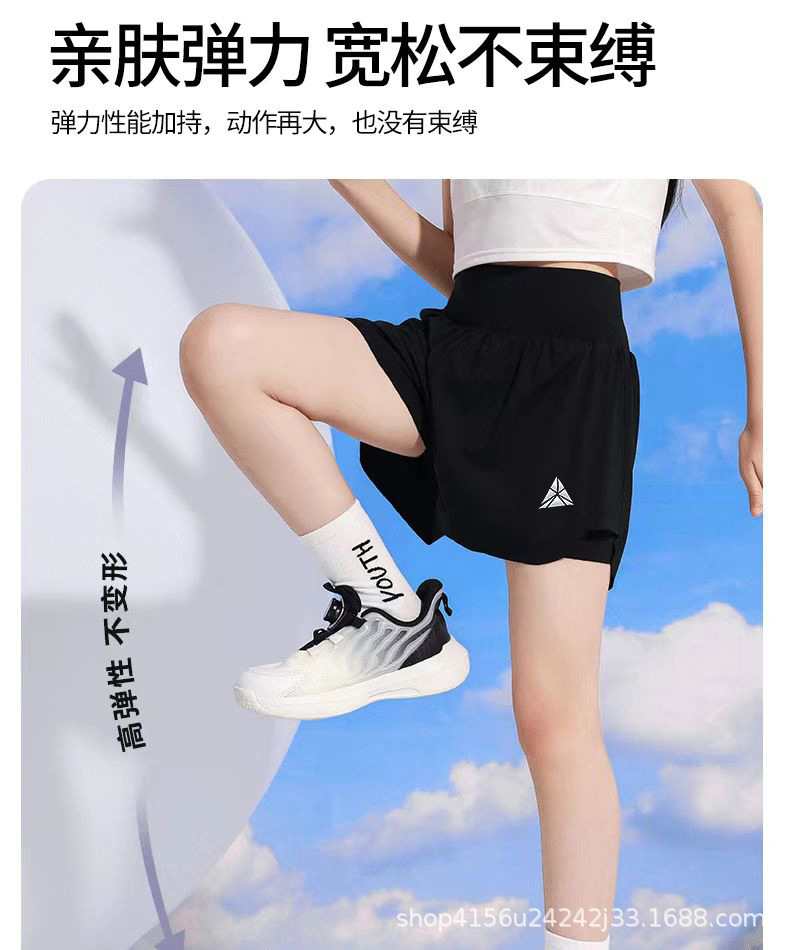 소녀 반바지 여름 아우터 착용 어린이 2025 새로운 블랙 스포츠 아이스 실크 3 점 큰 어린이 빠른 건조 캐주얼 바지스토어 가기