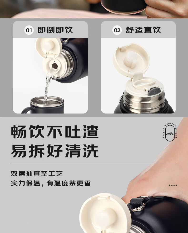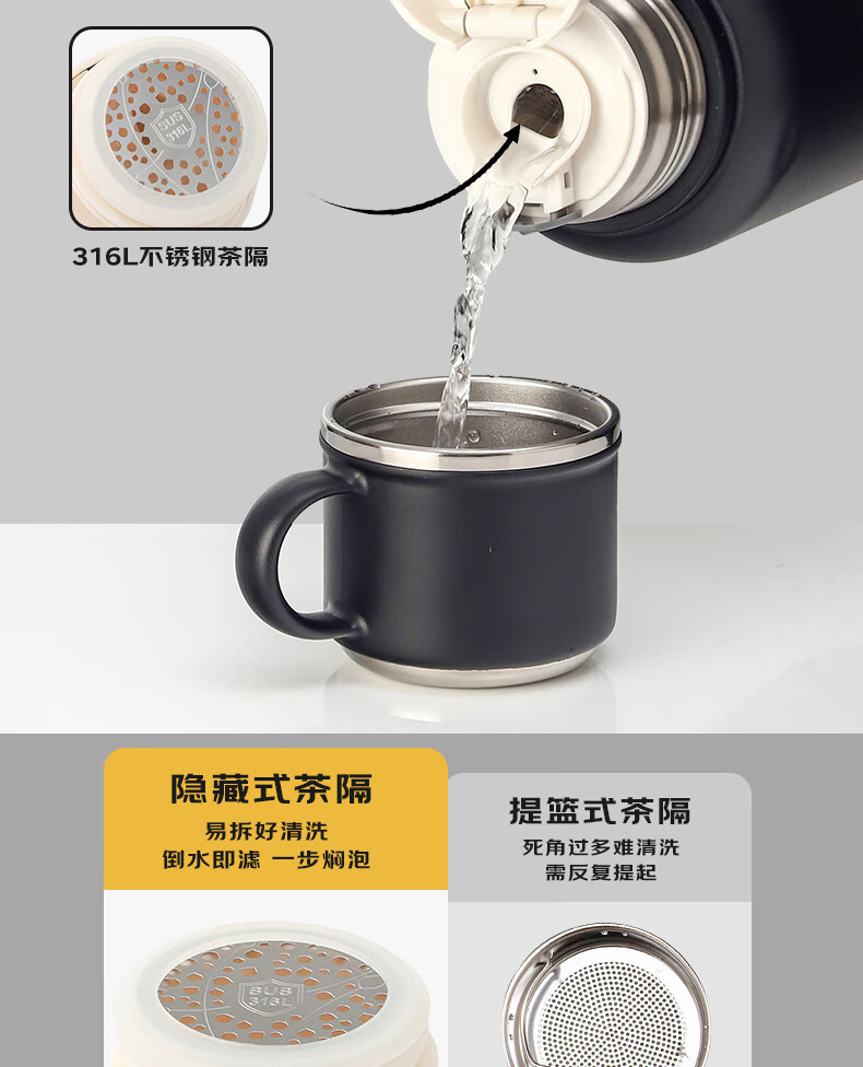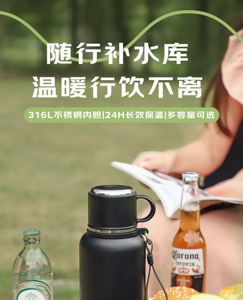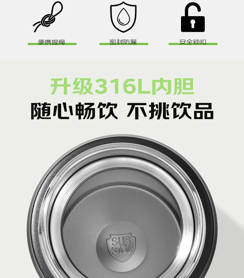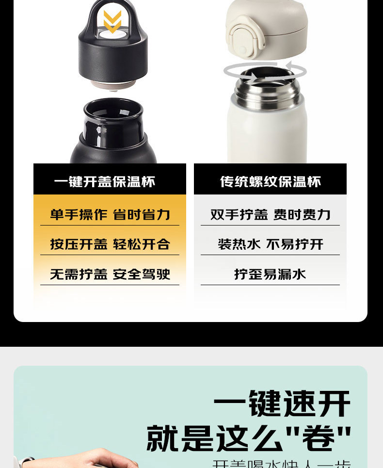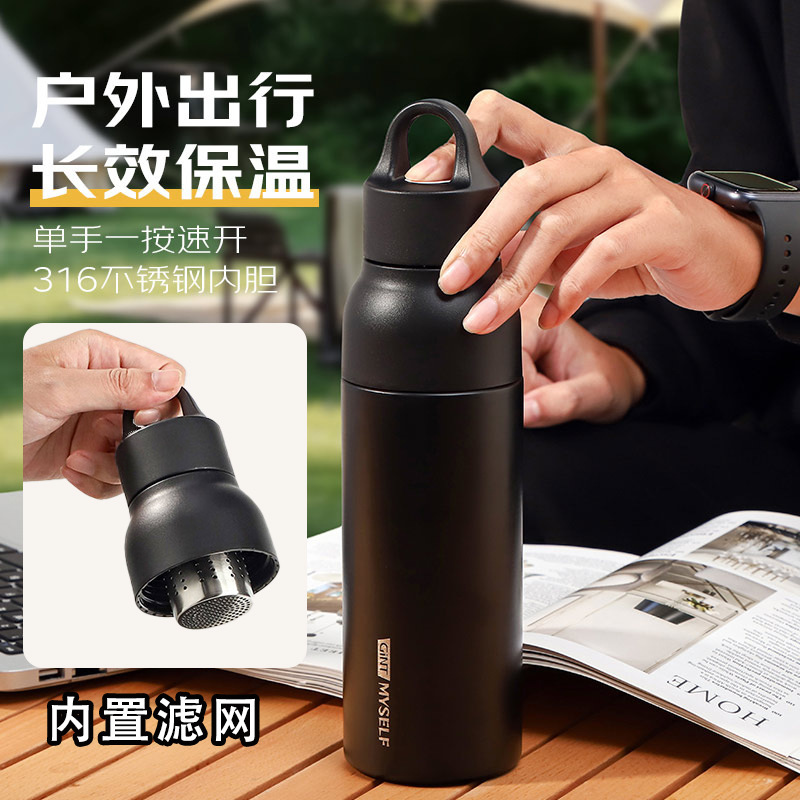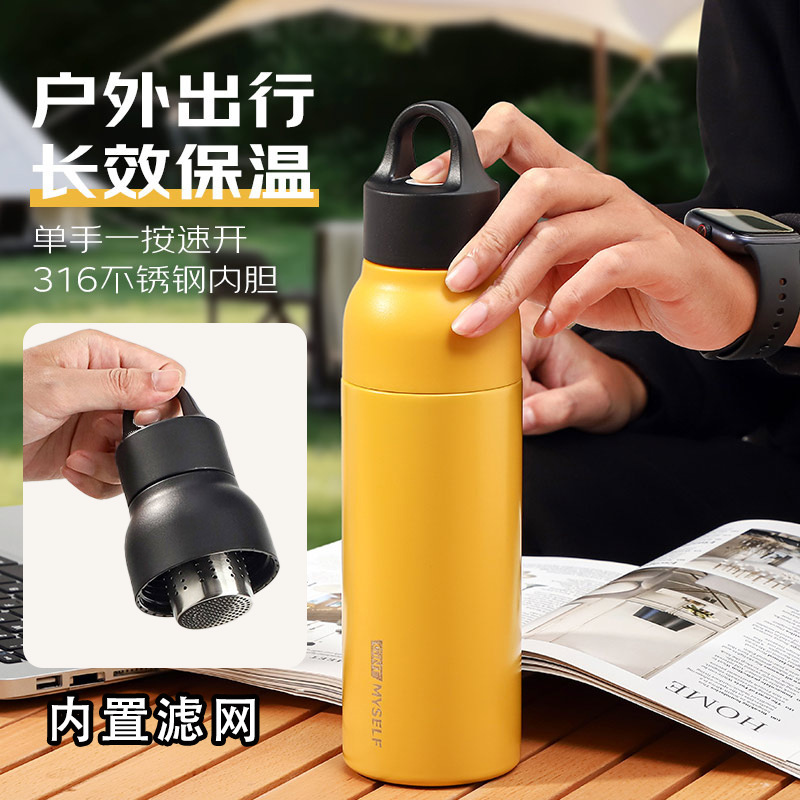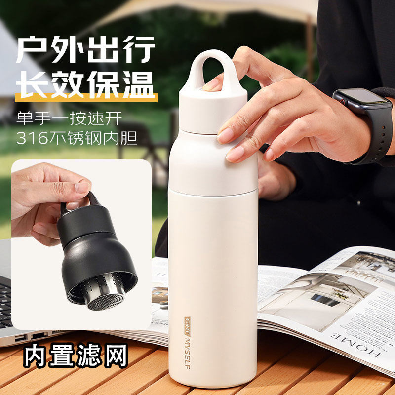 원버튼 오픈 뚜껑 316 보온병 컵 남자 스테인레스 스틸 대용량 여성 휴대용 야외 등산 컵 자동차 워터 컵