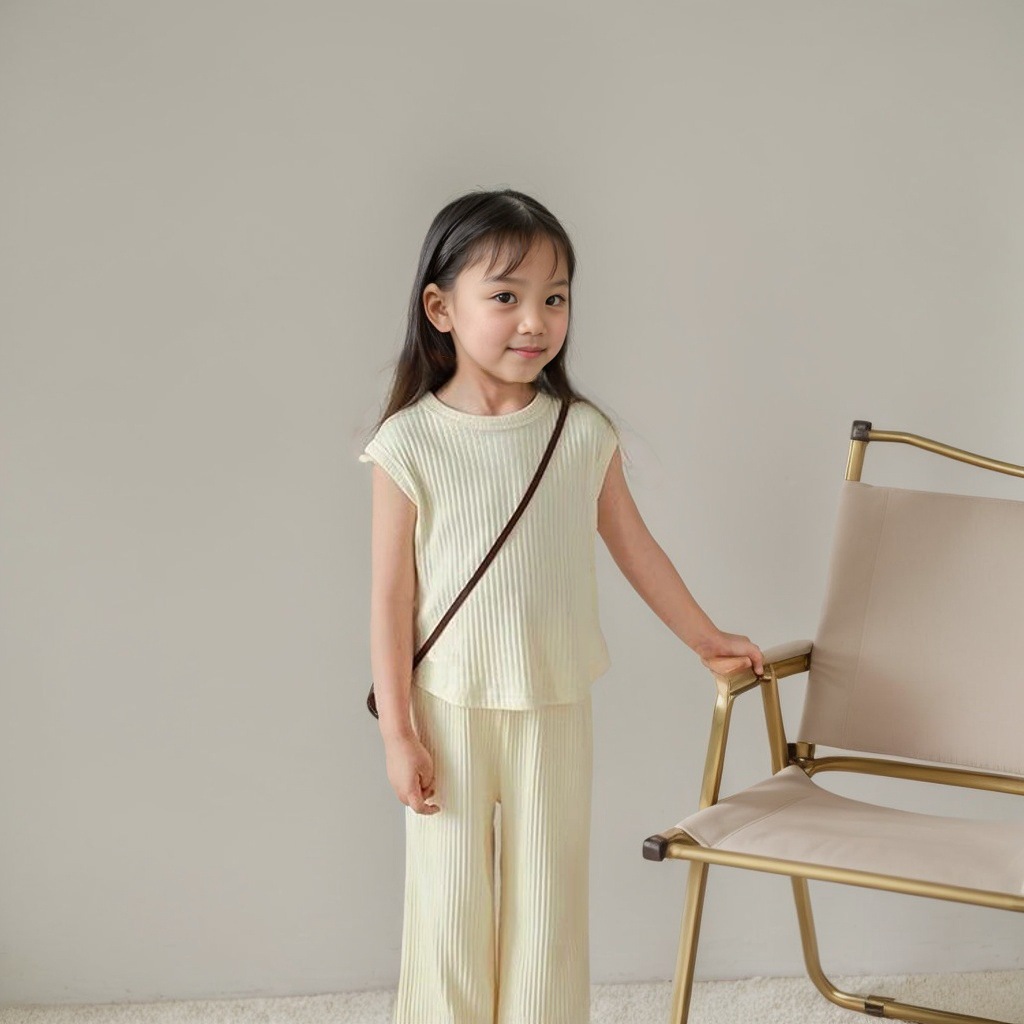 2026년 여름 신상 여아용 아이스 실크 세트, 여아 여름옷, 루즈핏 민소매 조끼 상의와 긴 바지 세트