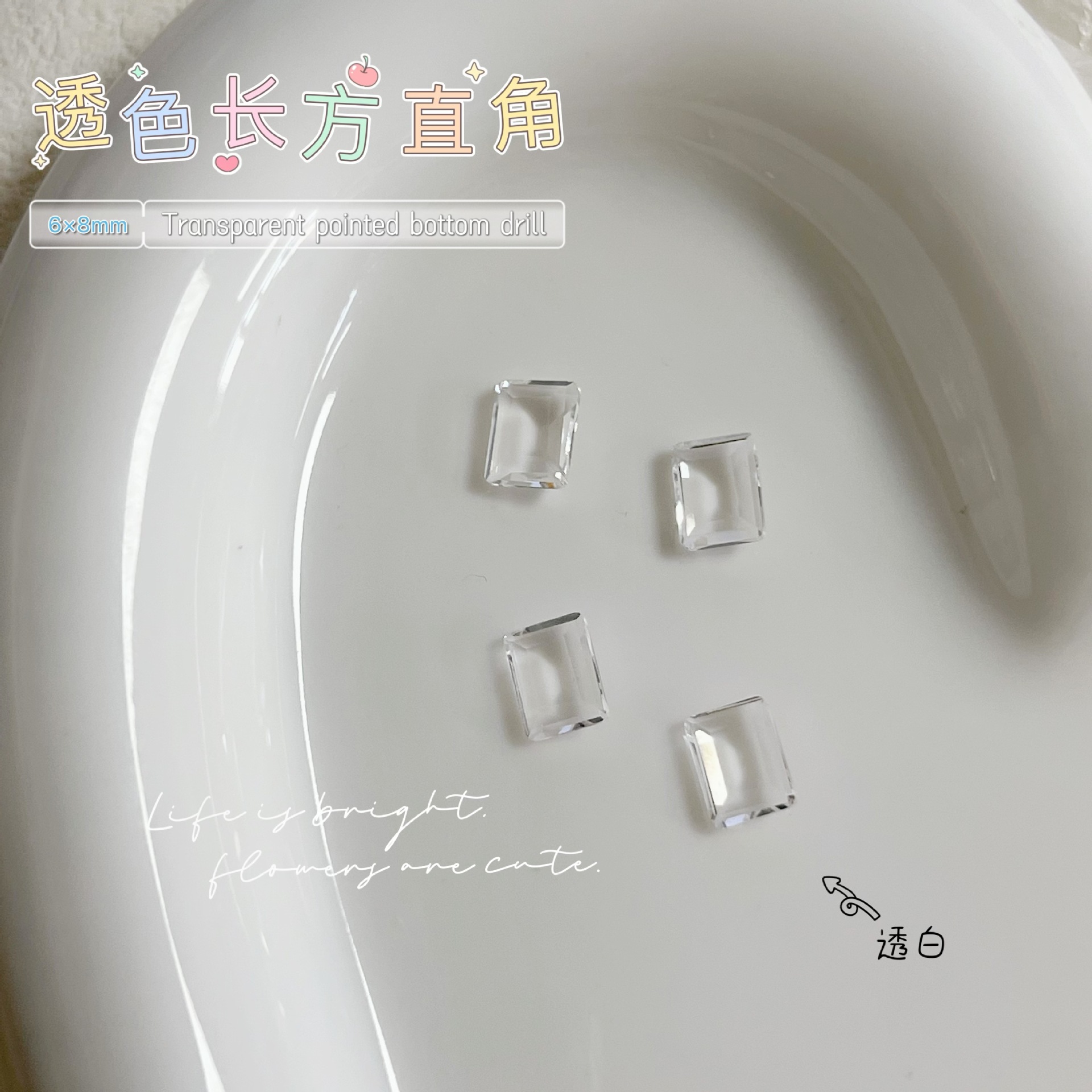 • JZ-196 투명 뾰족 바닥 다이아몬드 [6*8 직사각형]