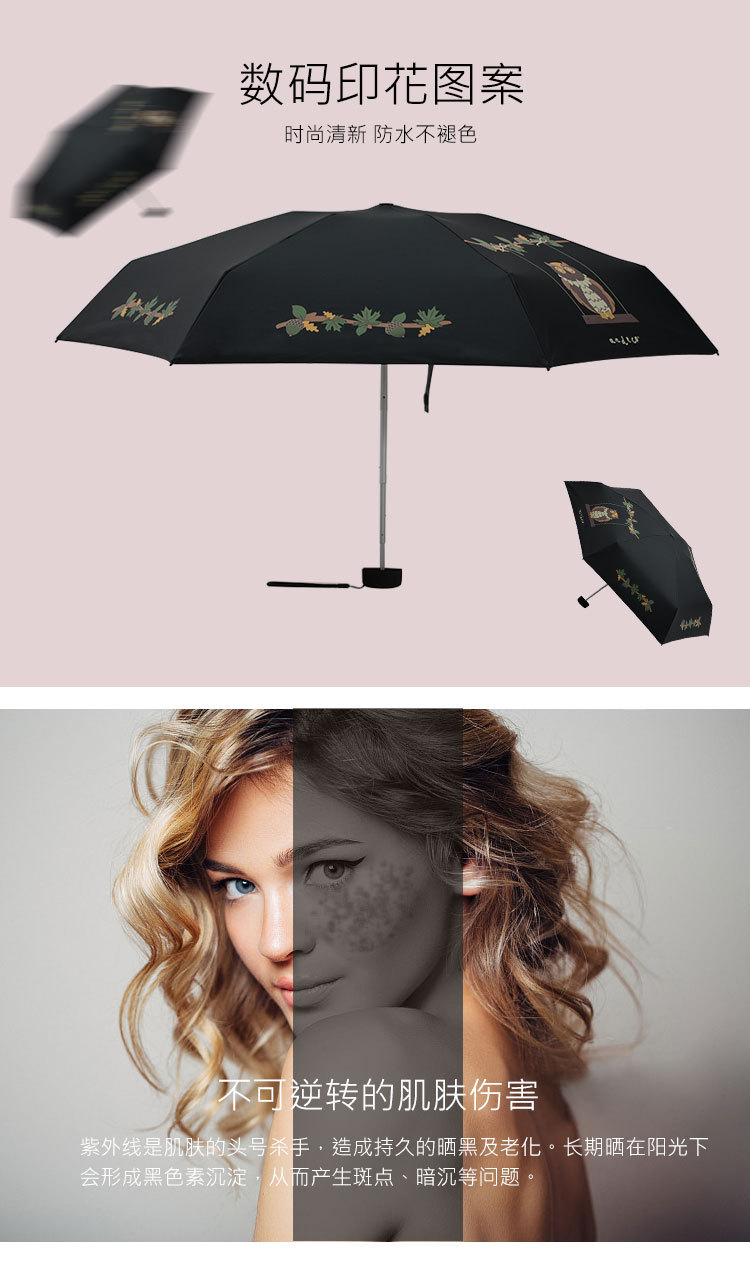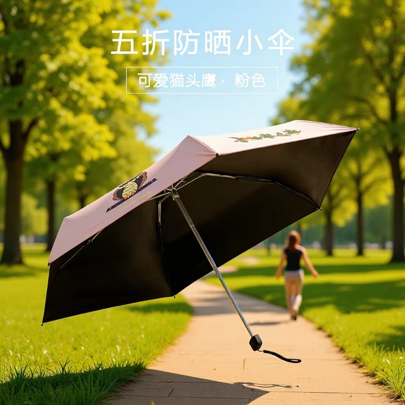 어린이 우산 여성용 비 또는 빛 동물 우산 50% 할인 접이식 비닐 자외선 차단제 UV 방지 작은 신선한 태양 우산