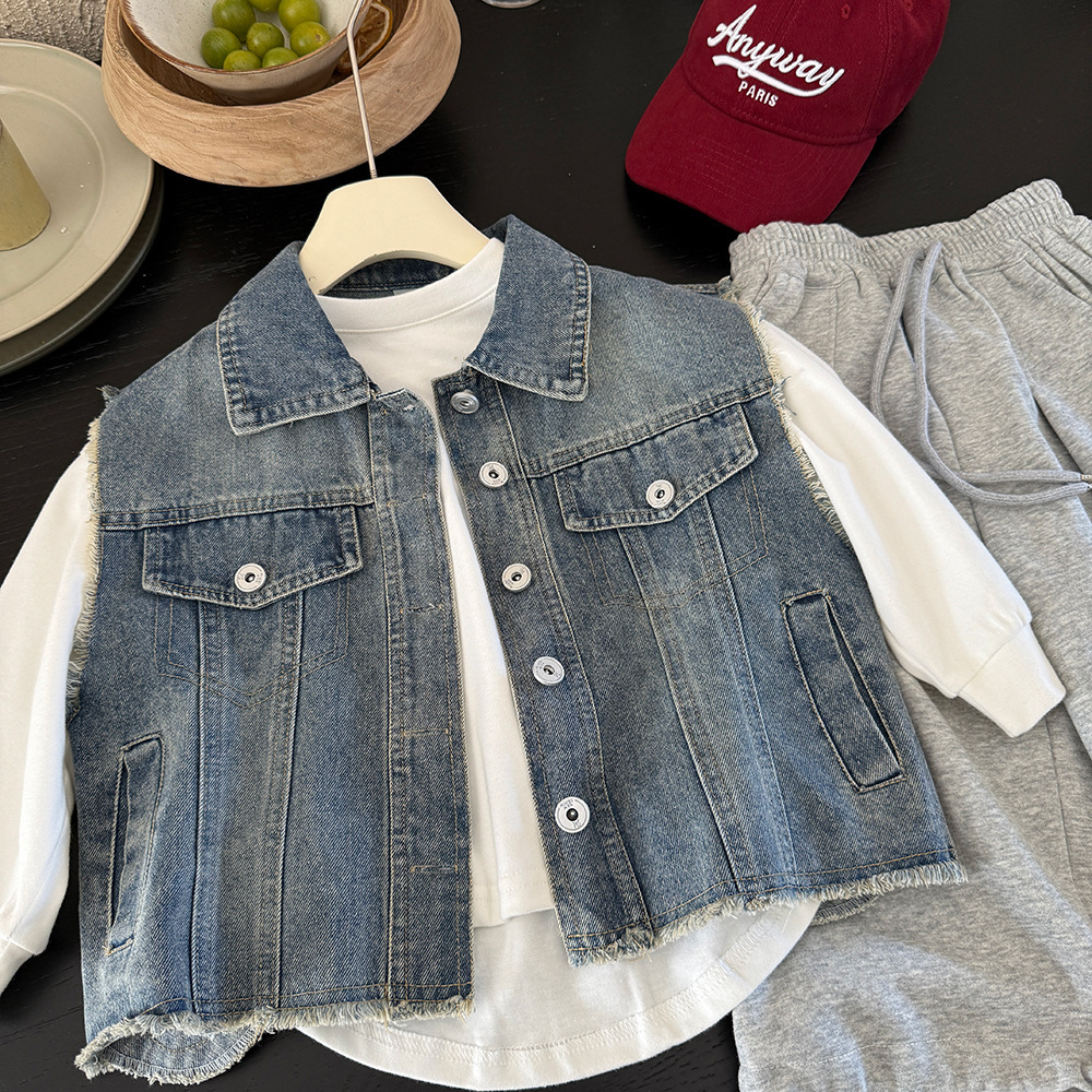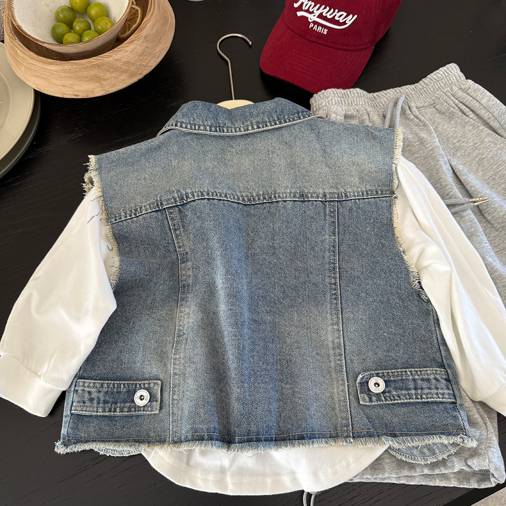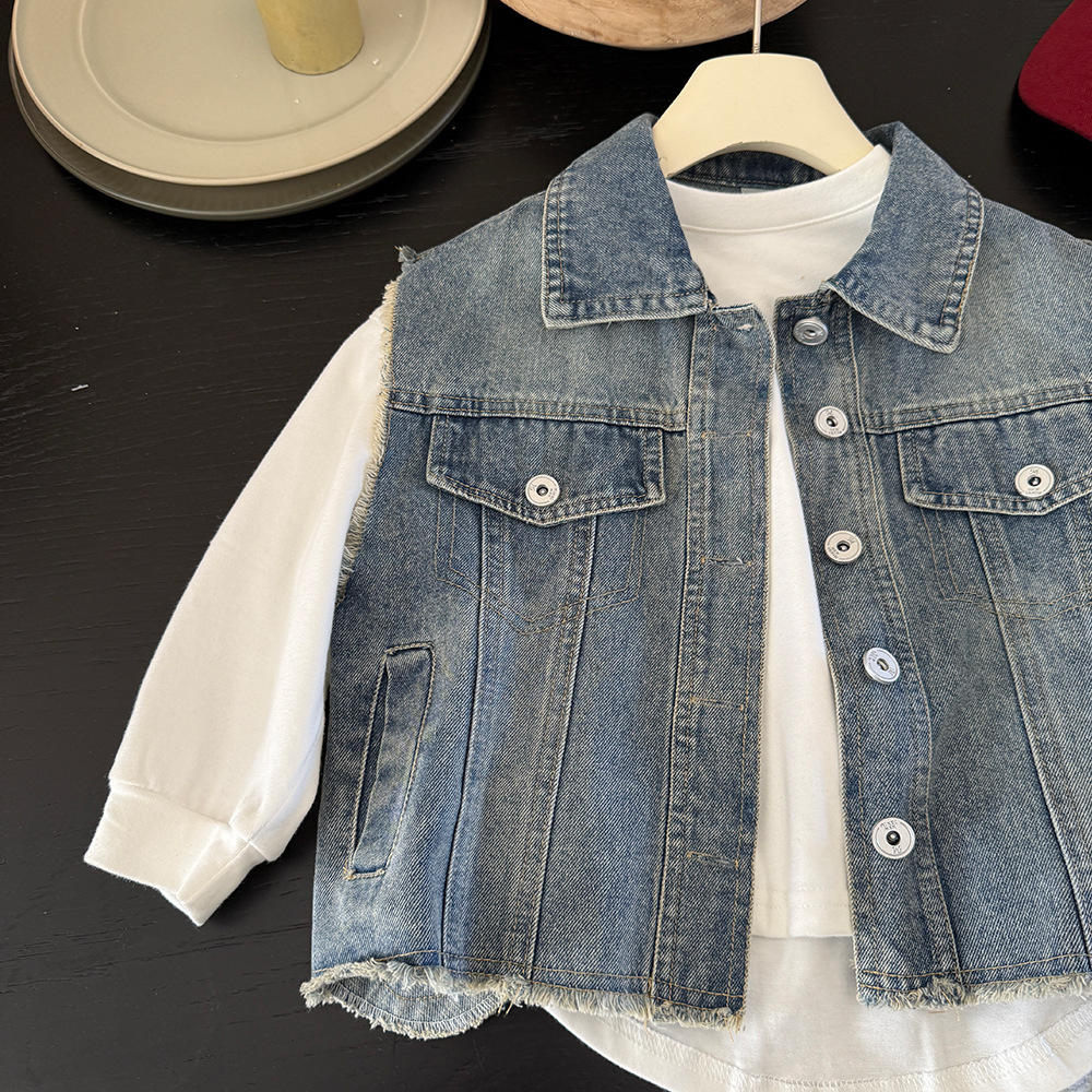 남학생 데님 조끼 2025 년 봄 · 가을 신형 한국식 어린이 패셔너블 웨이스트코트 잘 생긴 조끼 트렌디스토어 가기