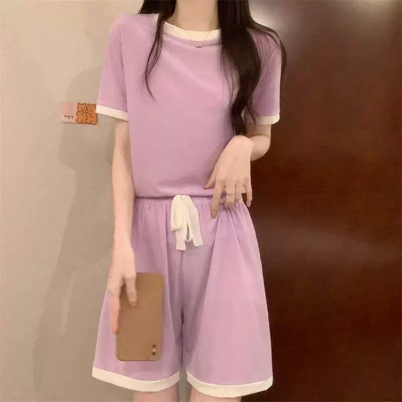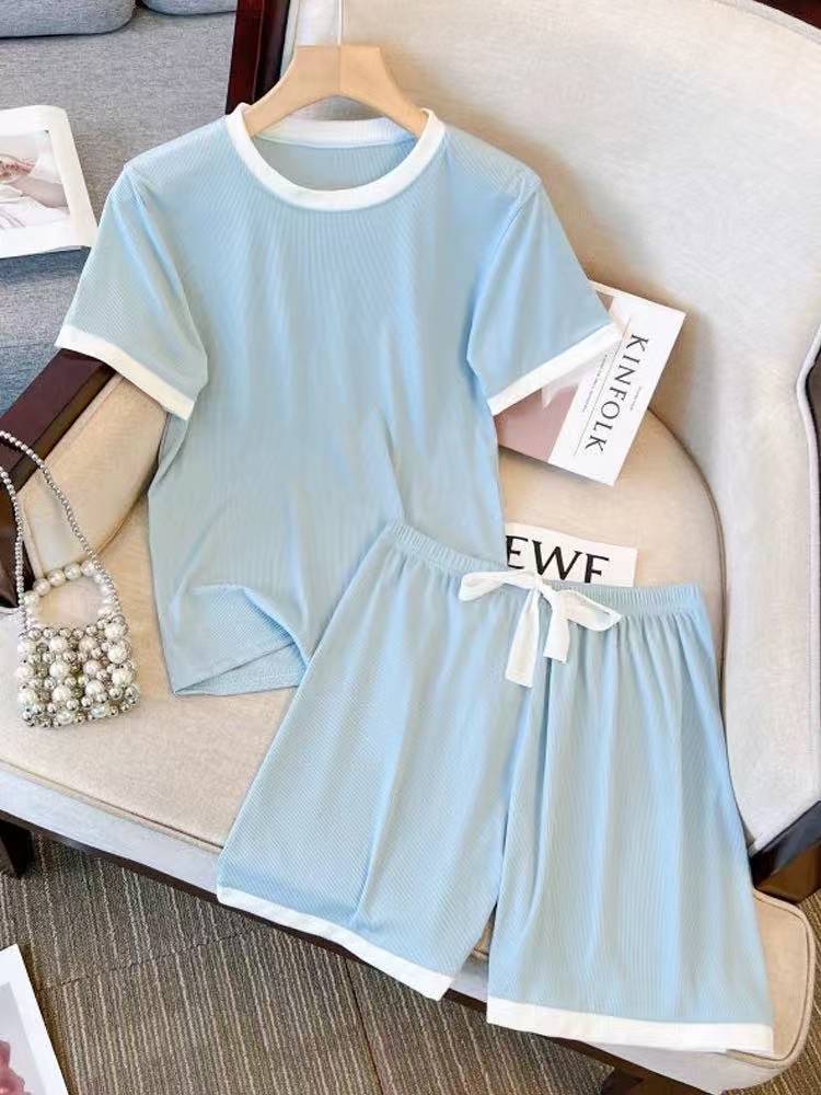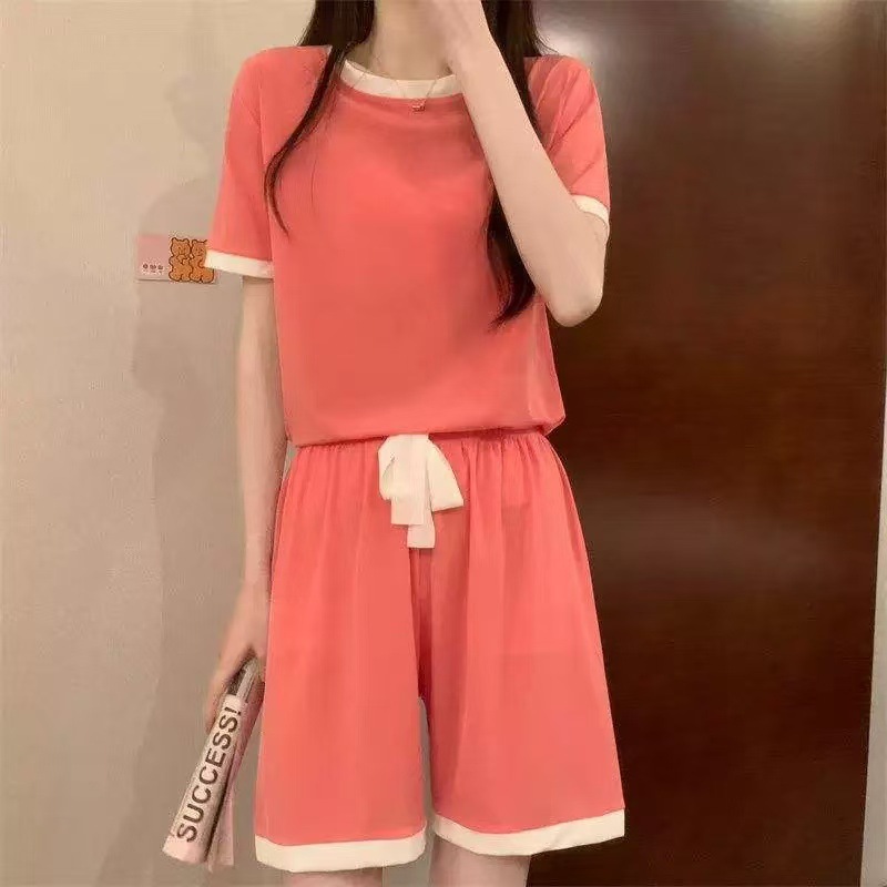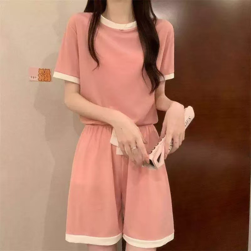 컬러 아이스크림 사탕 세트 여성 여름 캐주얼 아이스 실크 홈 의류 홈 편안한 느슨한 파자마 도매스토어 가기