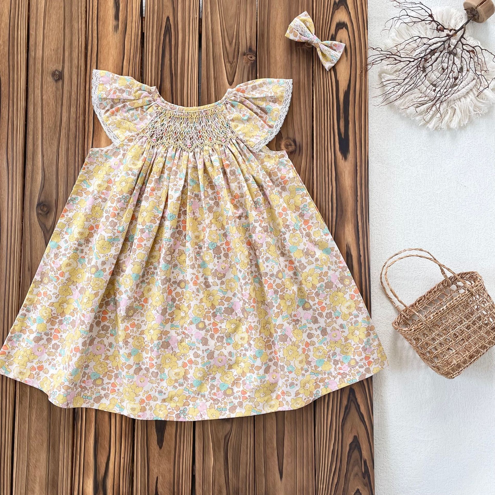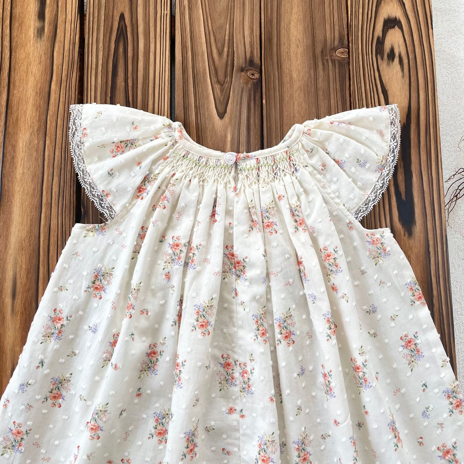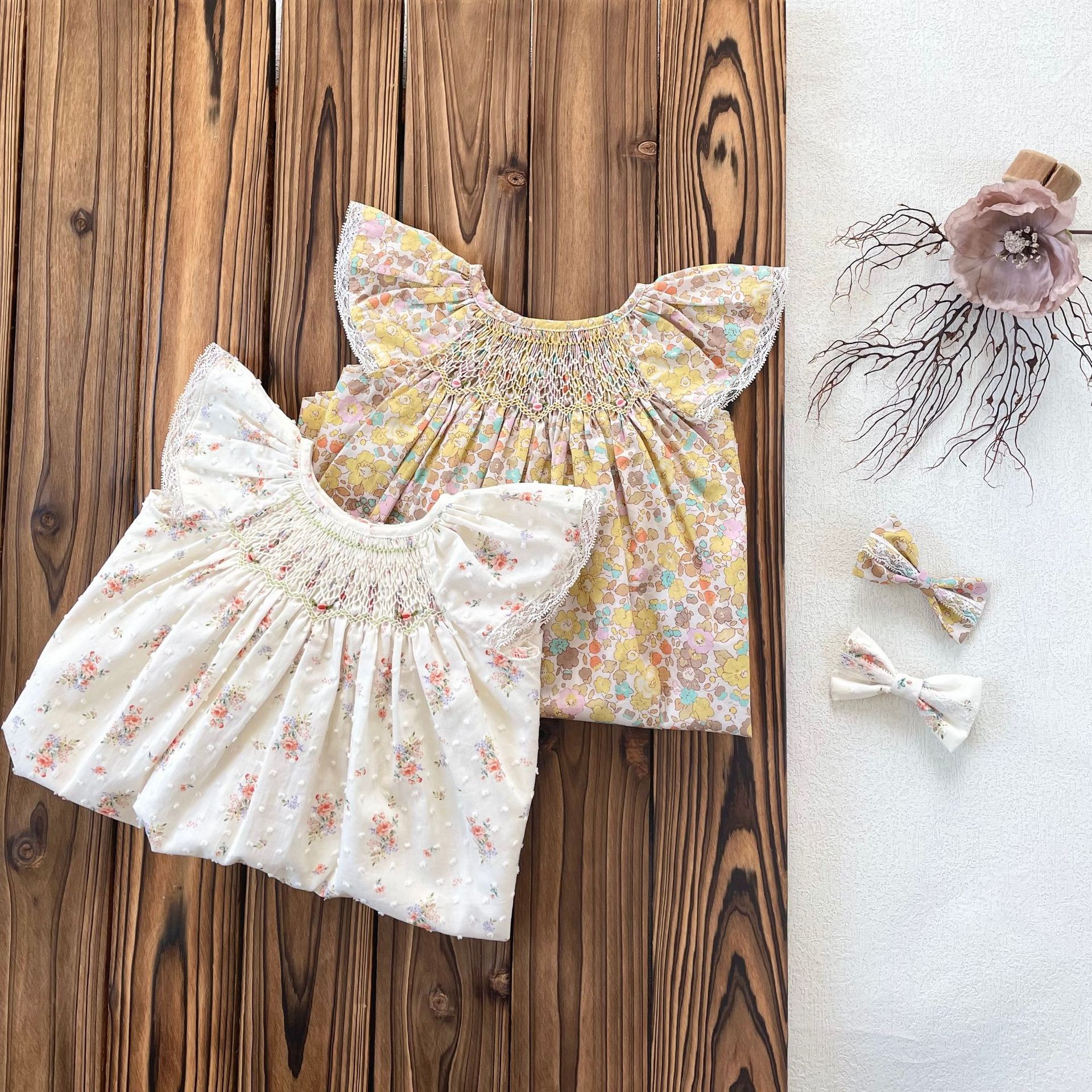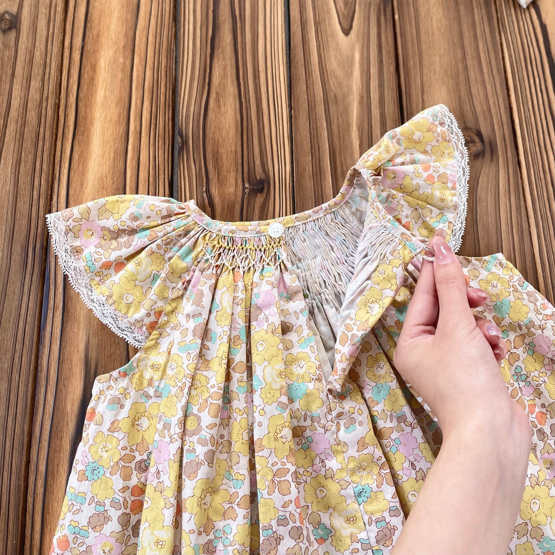 25 봄과 여름 새 소녀의 수제 자수 꽃 원피스 복고풍 아기 소녀의 전체 소매 인쇄 치마스토어 가기