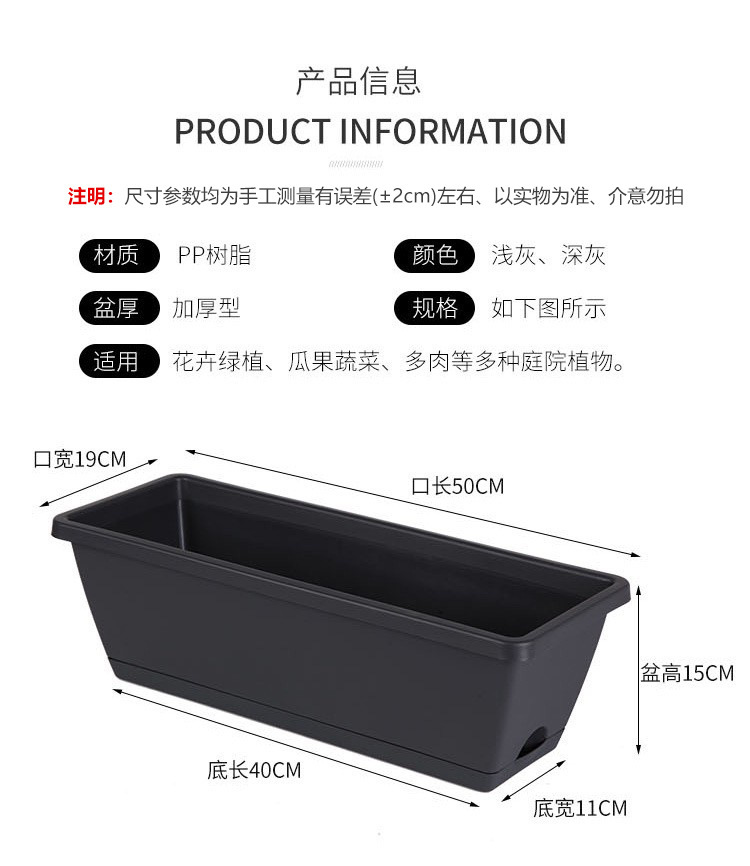 새로운 두꺼운 홀론 분지 가족 발코니 심기 야채 분지 직사각형 심기 그루브 게으른 플라스틱 꽃 냄비 도매스토어 가기