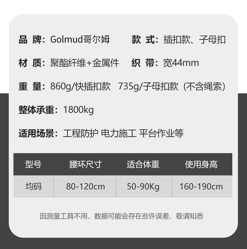 Gorm 하프 바디 퀵 플러그 안전 벨트 영역 공중 작업 안전 로프 세트 GB 벨트 후크 GM3727스토어 가기