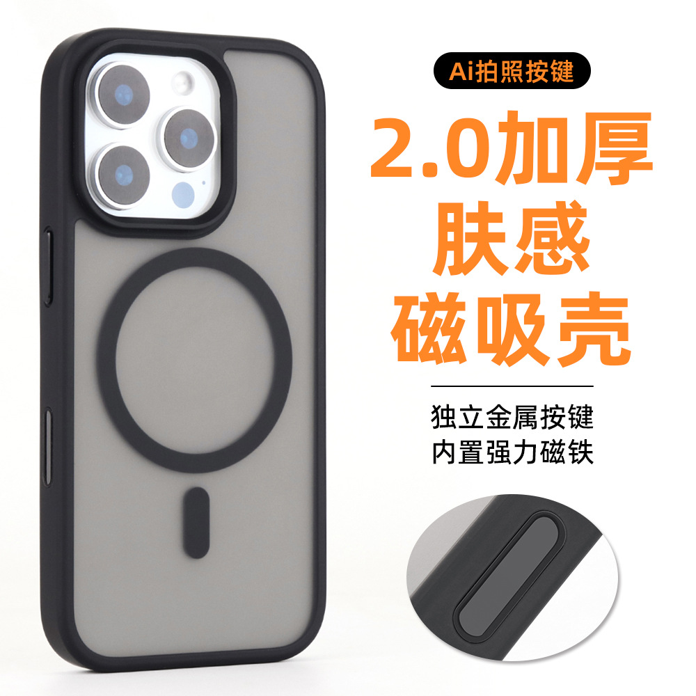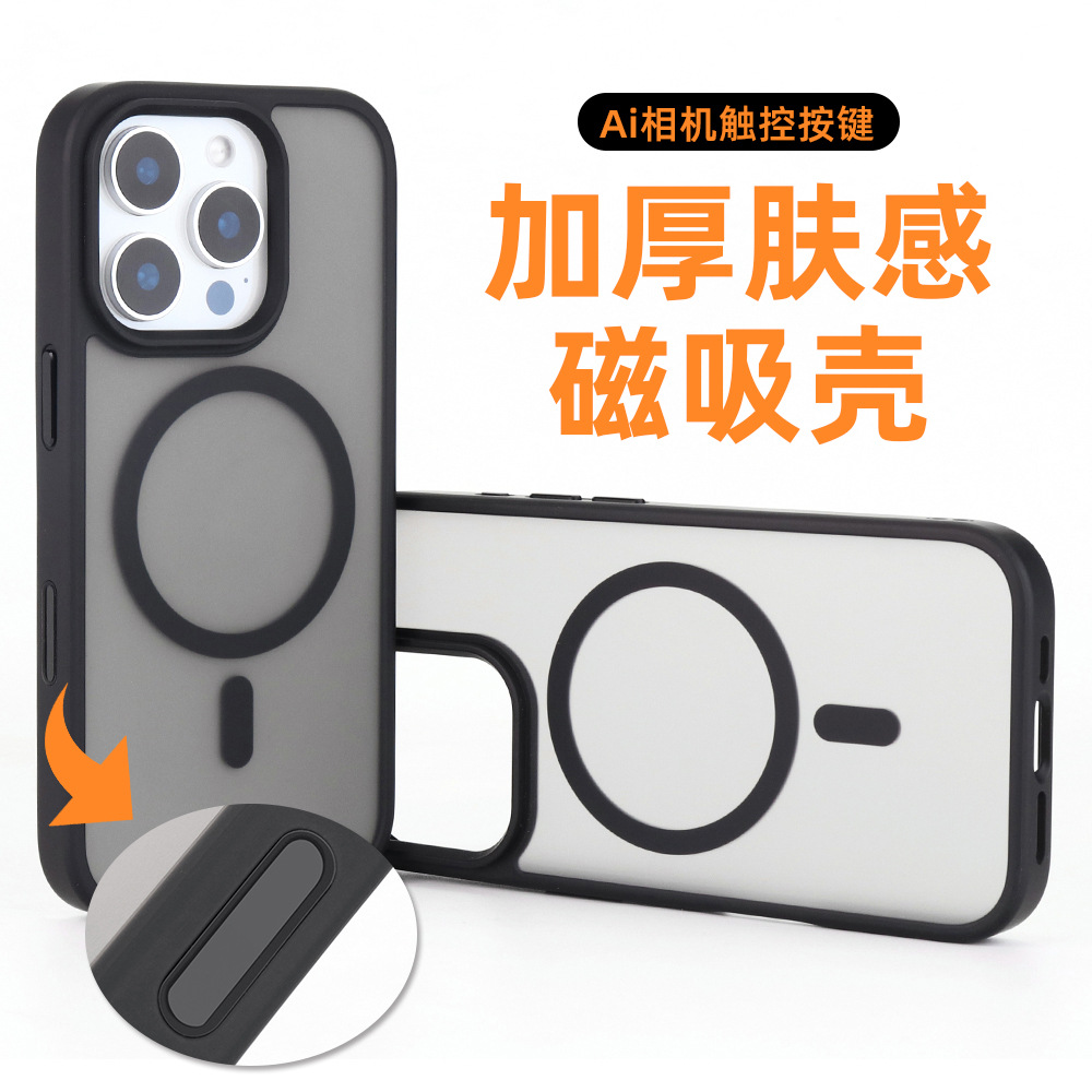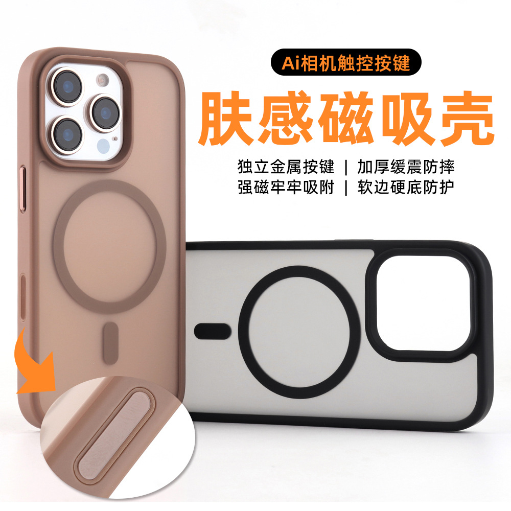 애플 17 프로맥스에 적합한 피부 느낌의 자석 휴대폰 케이스, 스마트 터치 버튼, AI 사진 촬영 버튼, 아이폰16스토어 가기