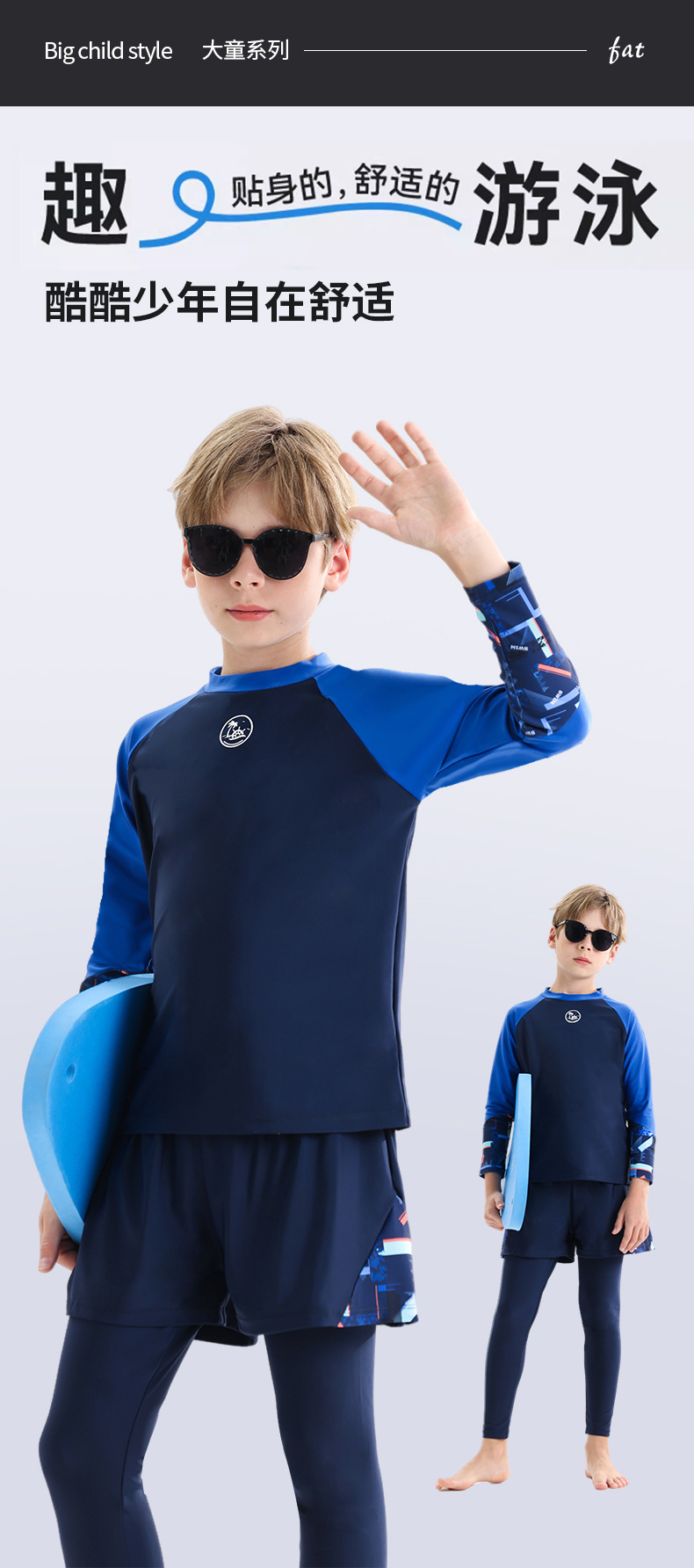 약 2025 아동 수영복 남아용 분리형 긴팔 수영복 중대형 아동 수영 팬츠 온천용 속건성 뚱뚱아이 수영복