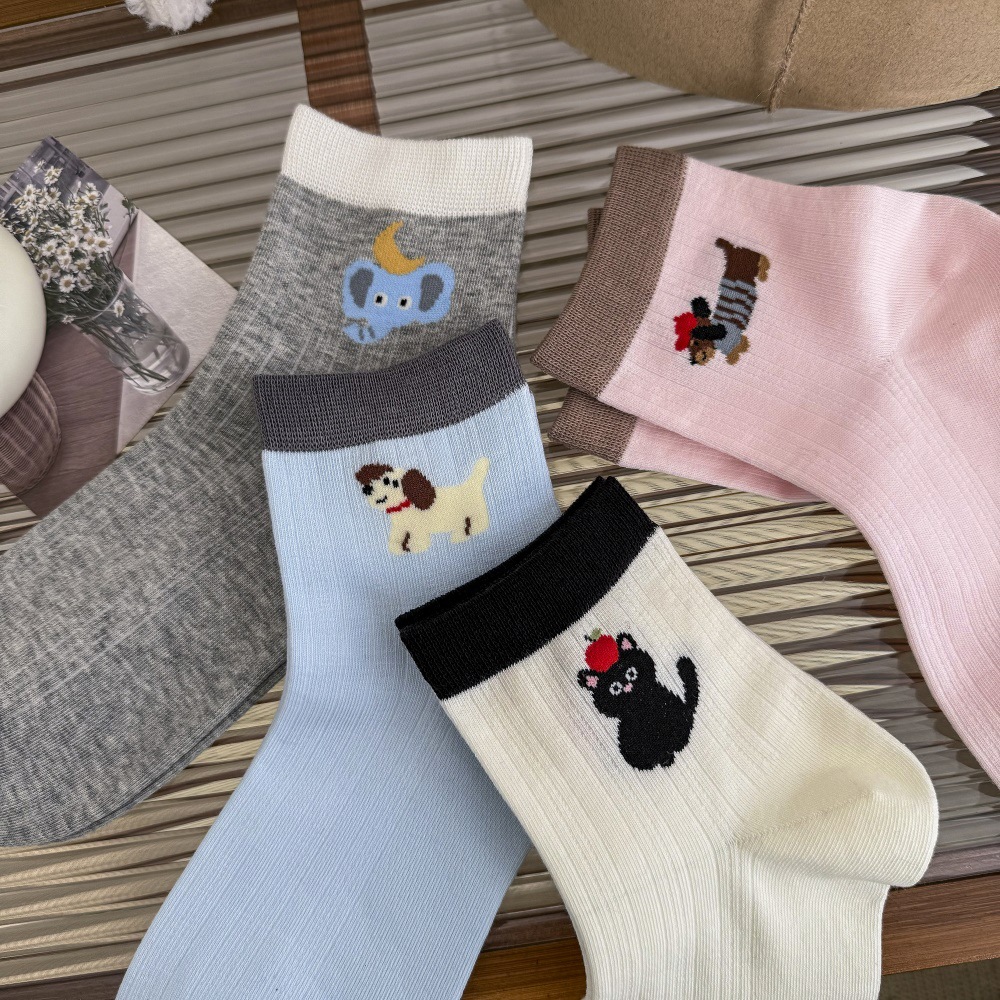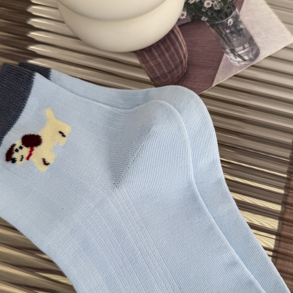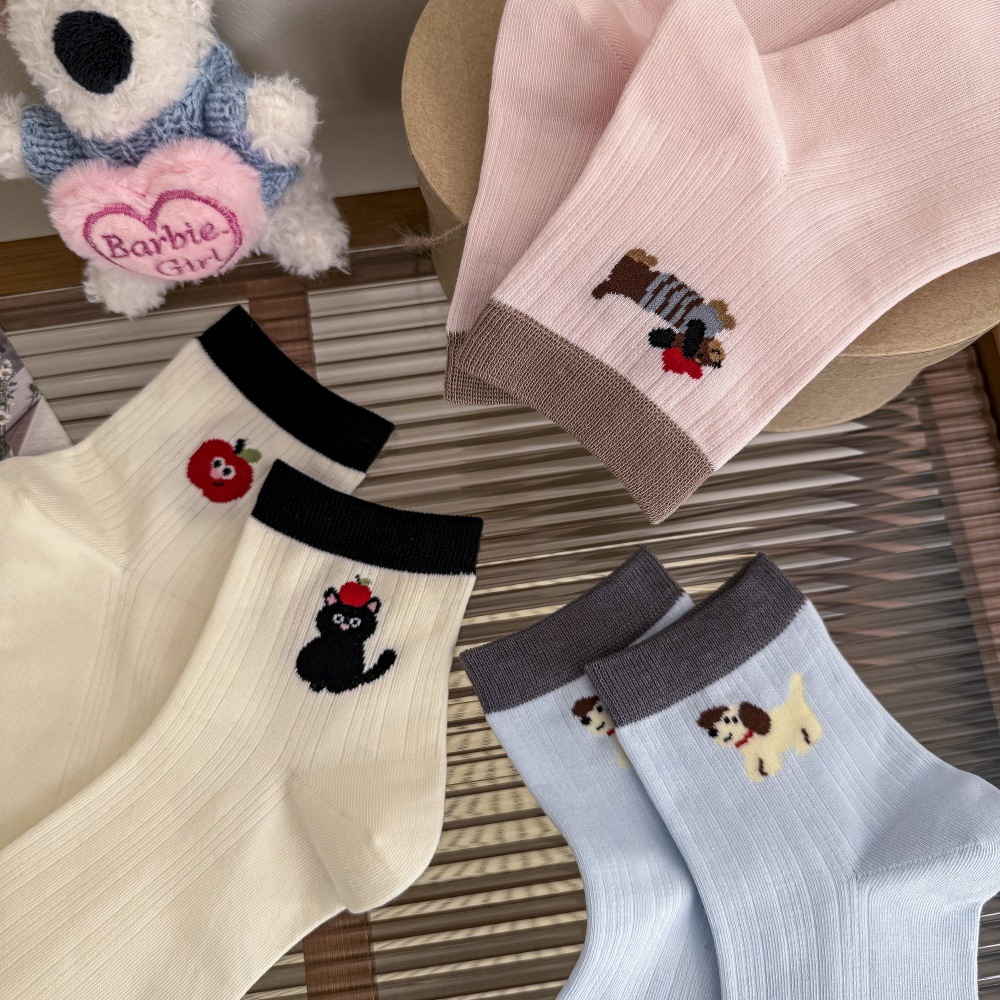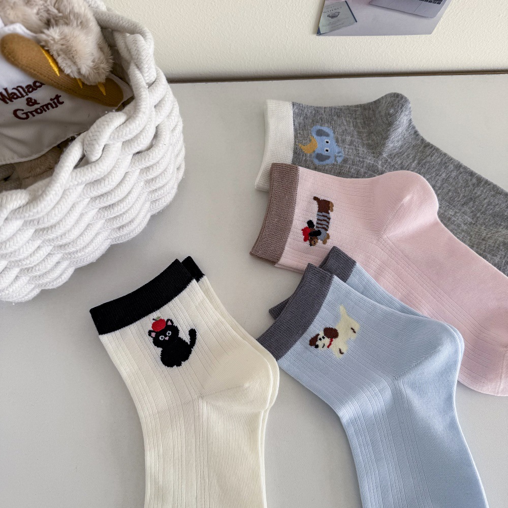 봄과 여름 얇은 AB 한국 강아지 짧은 튜브 만화 양말 낮은면 양말 중간 튜브 양말 컬러 매칭 닥스 훈트 개 양말