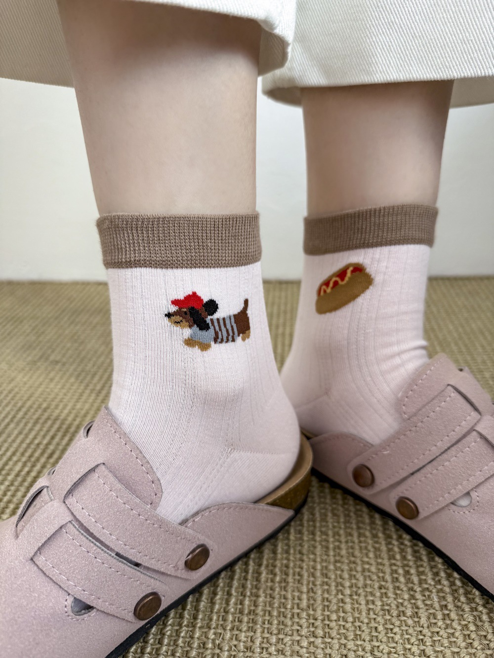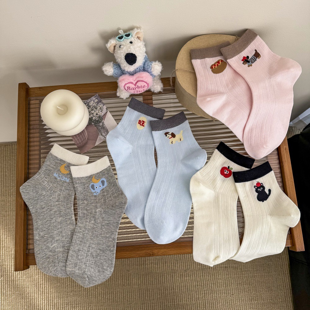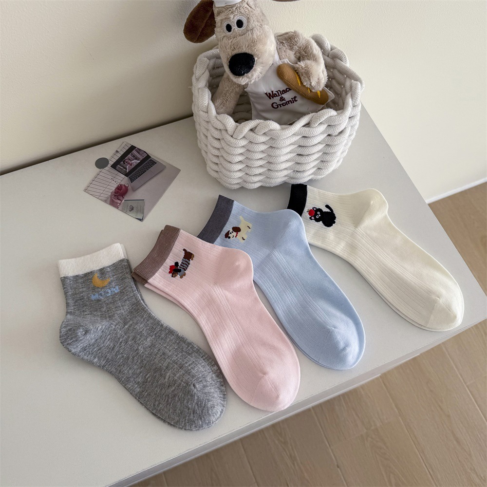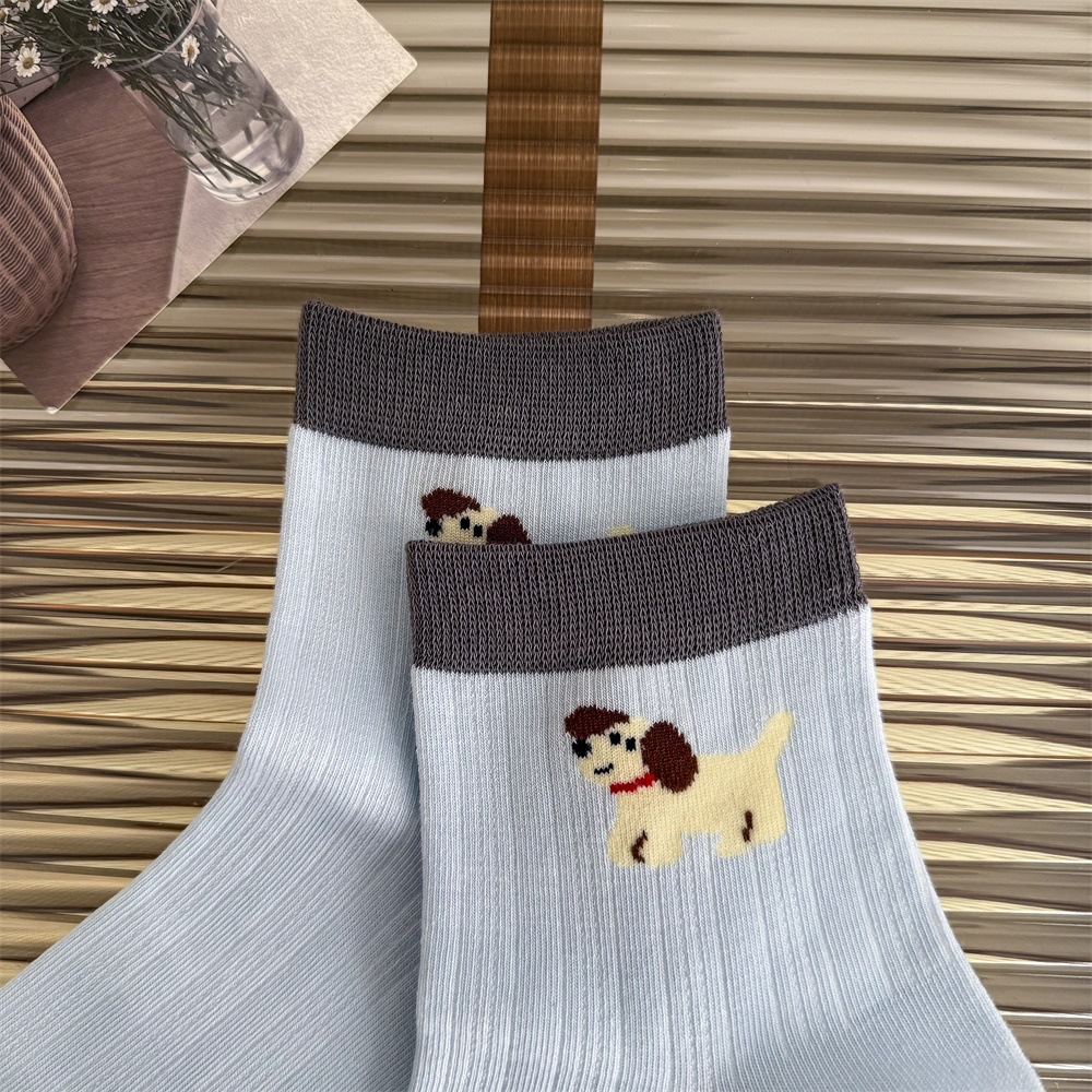 봄과 여름 얇은 AB 한국 강아지 짧은 튜브 만화 양말 낮은면 양말 중간 튜브 양말 컬러 매칭 닥스 훈트 개 양말