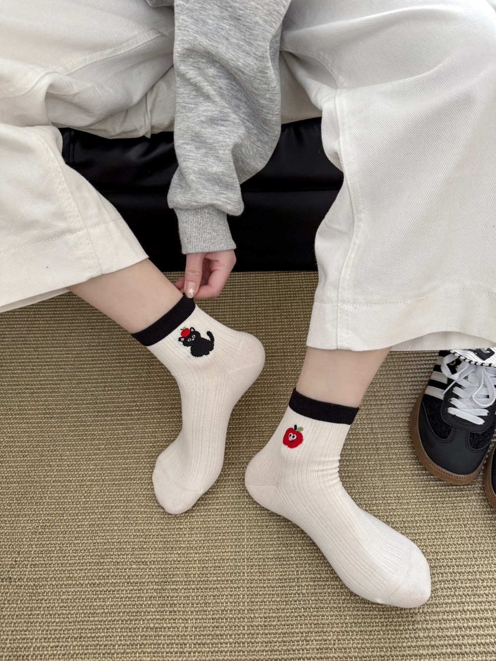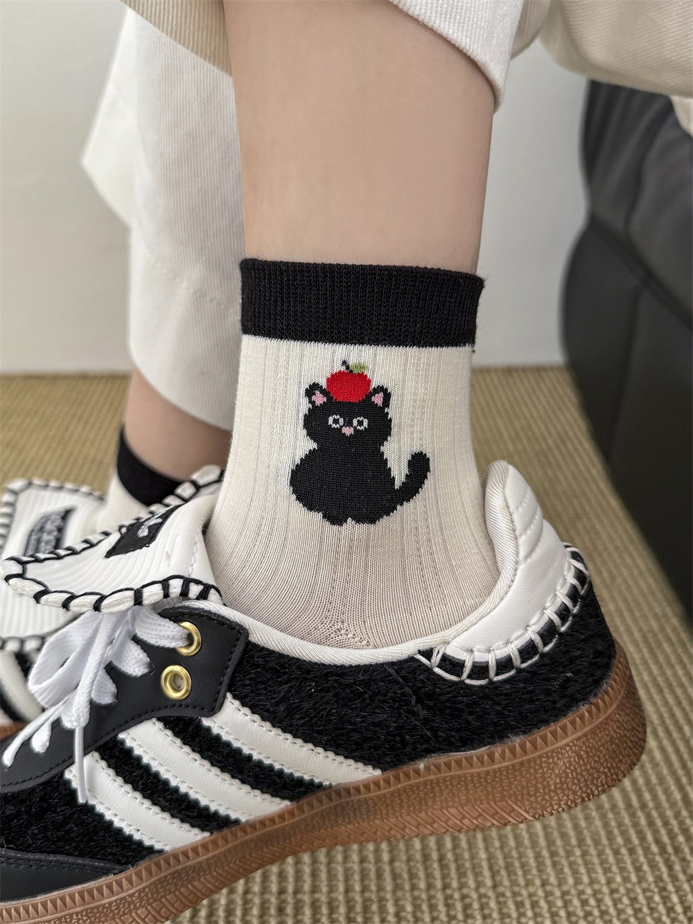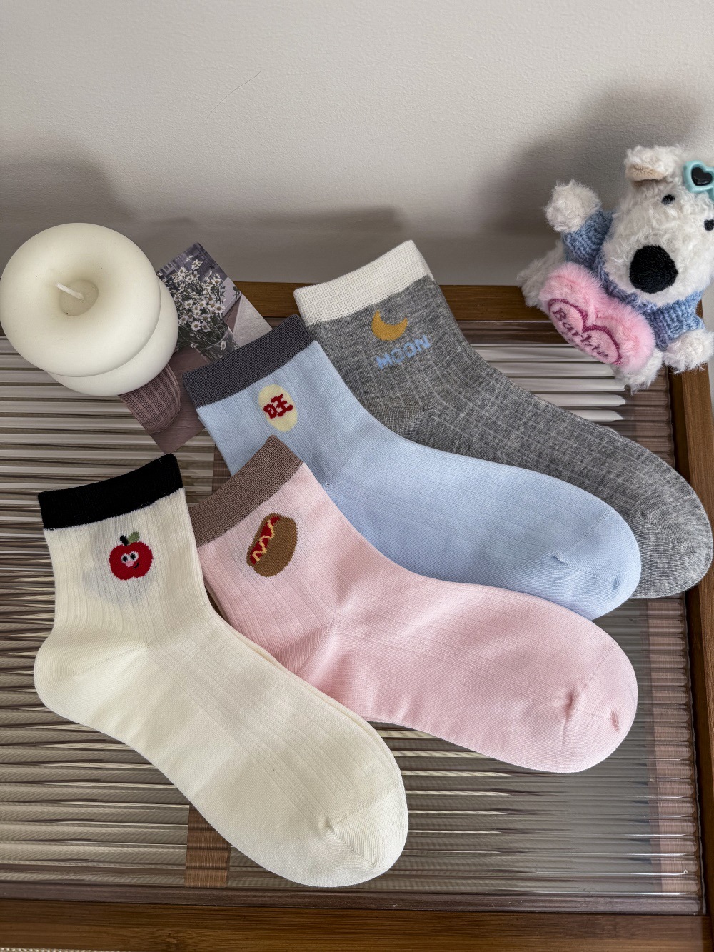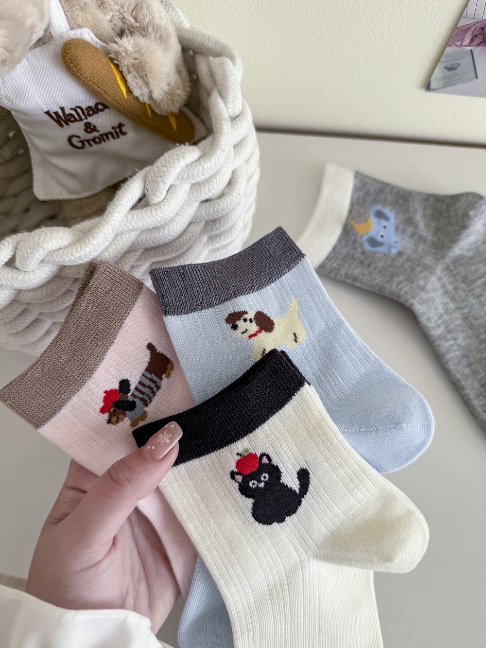 봄과 여름 얇은 AB 한국 강아지 짧은 튜브 만화 양말 낮은면 양말 중간 튜브 양말 컬러 매칭 닥스 훈트 개 양말