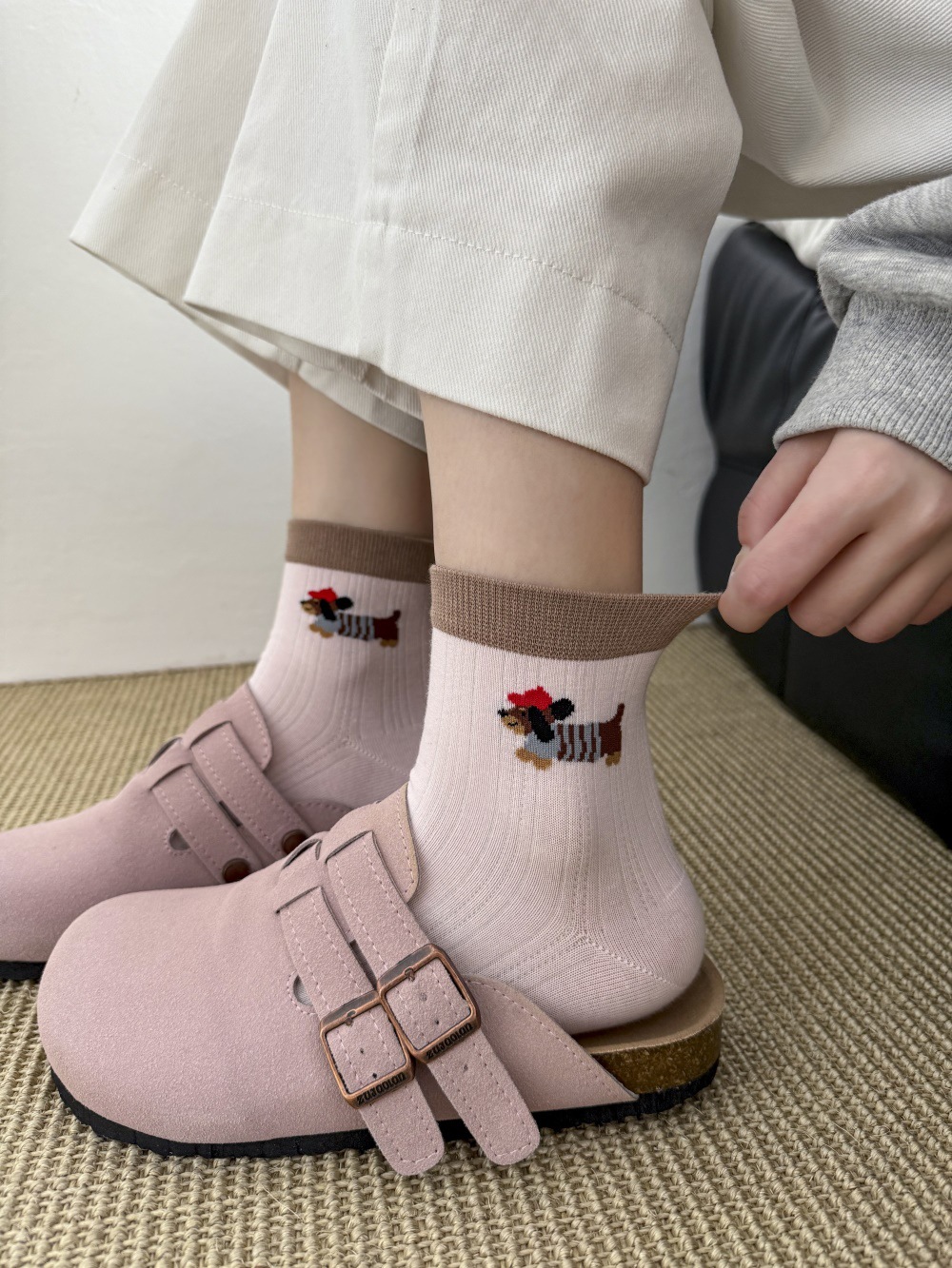 봄과 여름 얇은 AB 한국 강아지 짧은 튜브 만화 양말 낮은면 양말 중간 튜브 양말 컬러 매칭 닥스 훈트 개 양말스토어 가기