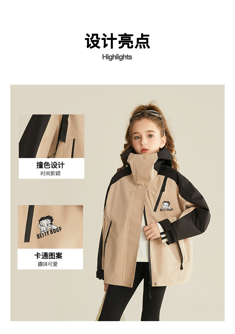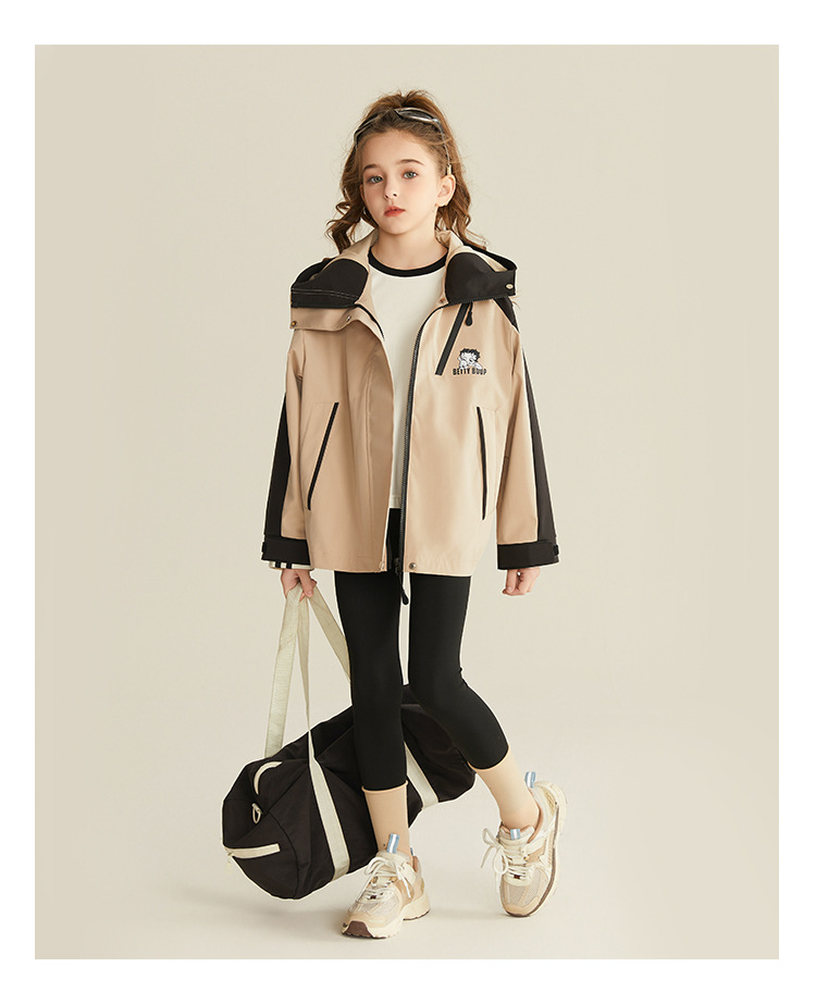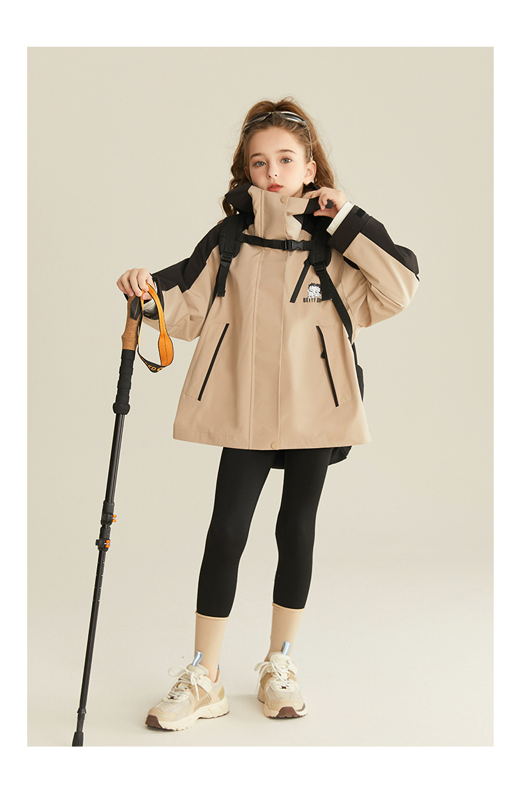 베티 아동복 걸스 툴링 야외 3 가지 방지 충전 재킷 2025 봄과 가을 소녀 패션 서양식 탑스토어 가기