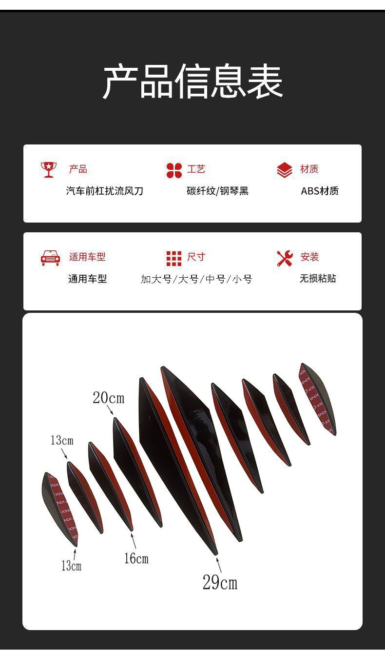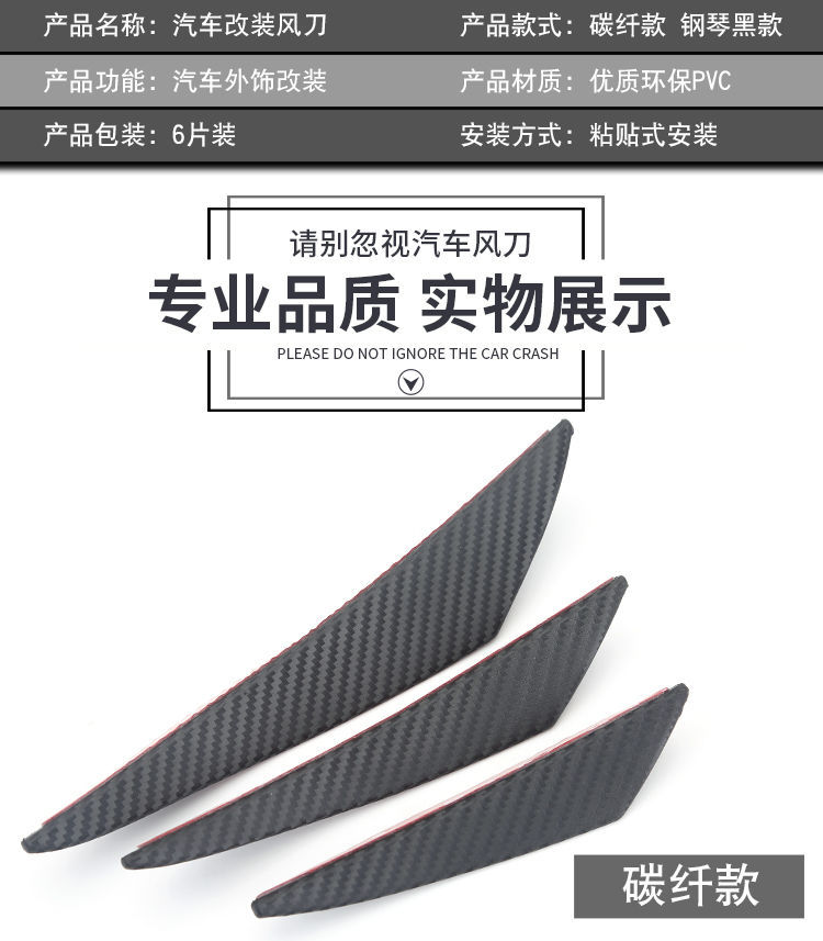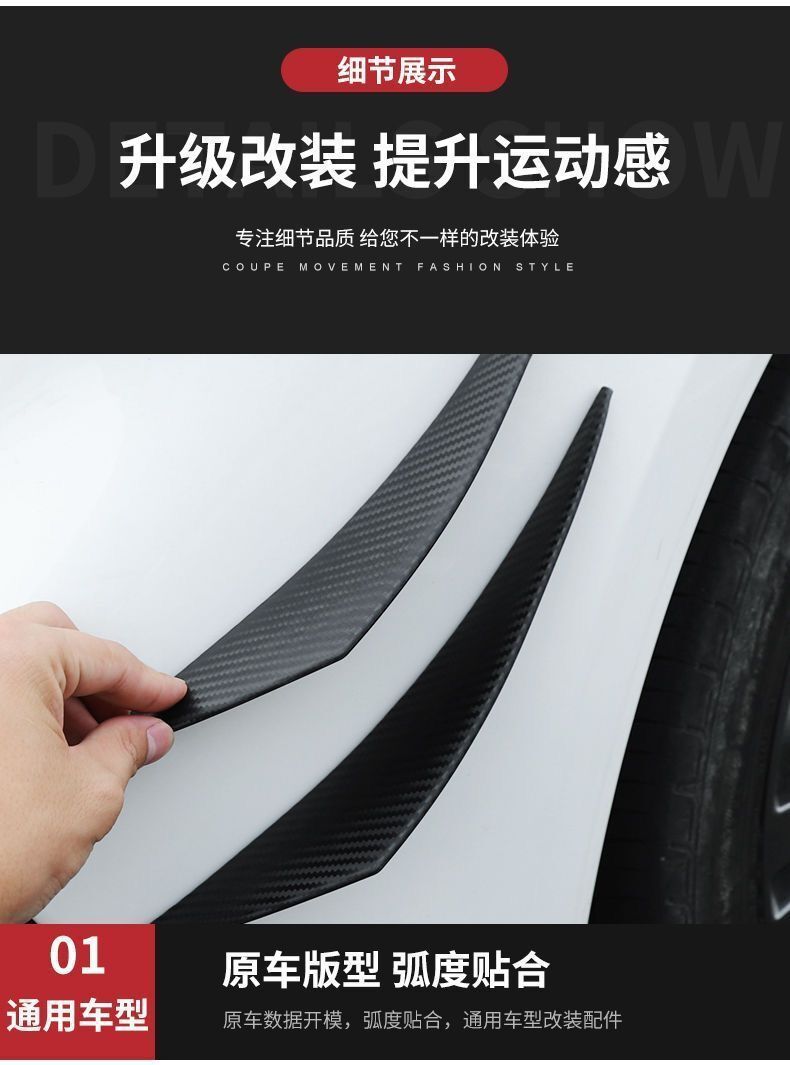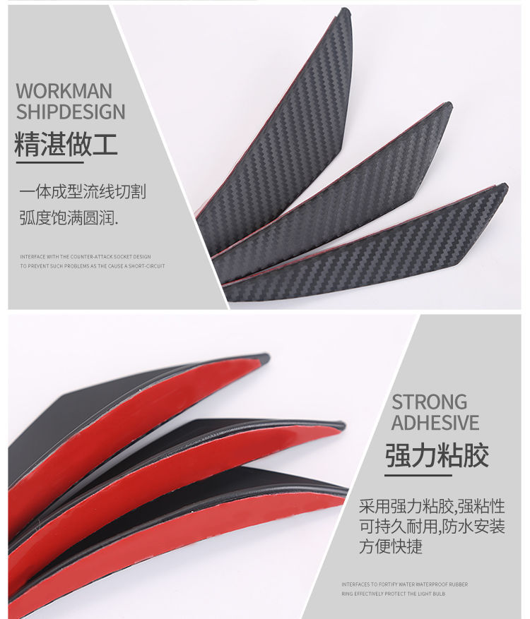 자동차 수정 보편적 인 탄소 섬유 곡물 달 칼 유형 에어 나이프 전환 바디 범퍼 충돌 방지 고무 스크래치 스포일러