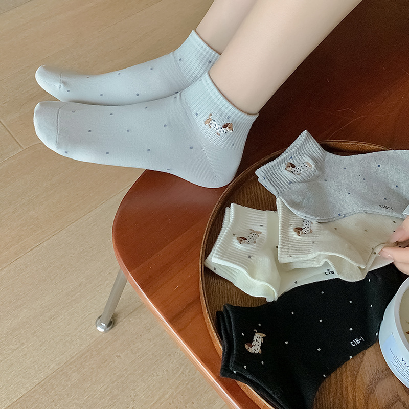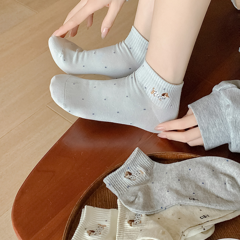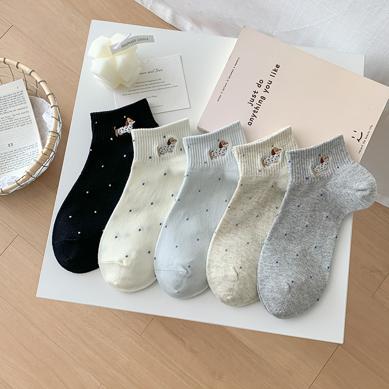수놓은 닥스 훈트 25 봄과 여름 새로운 통기성 일본 폴로 보트 양말 면 양말 짧은 양말