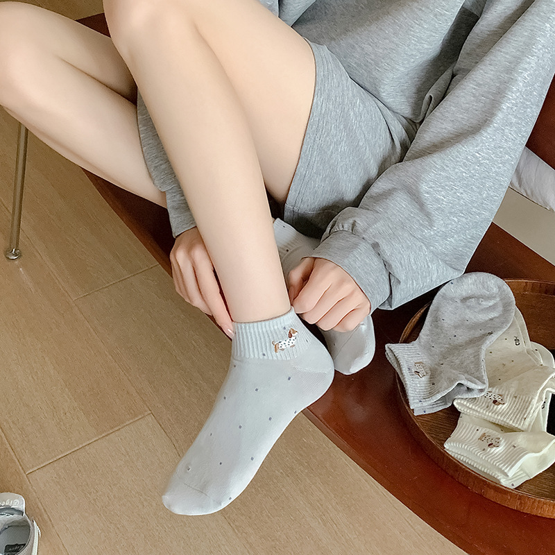 수놓은 닥스 훈트 25 봄과 여름 새로운 통기성 일본 폴로 보트 양말 면 양말 짧은 양말스토어 가기