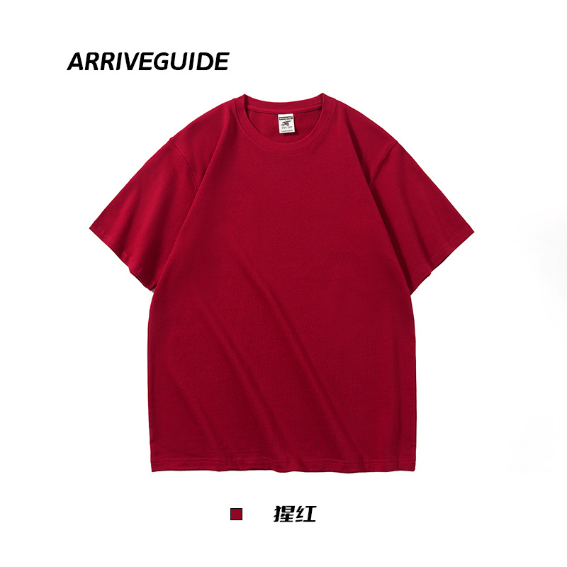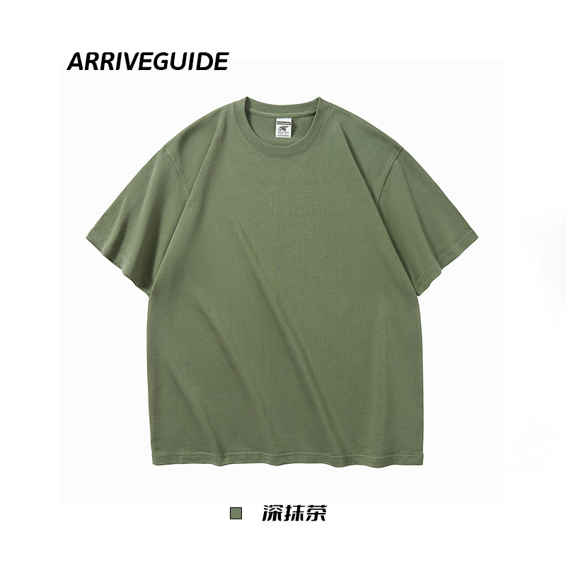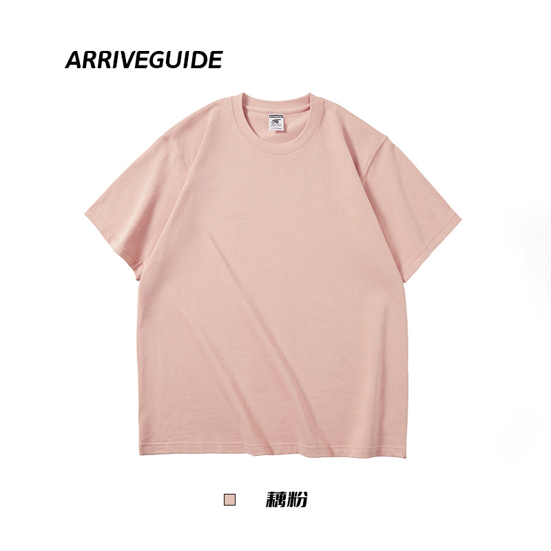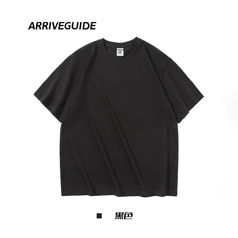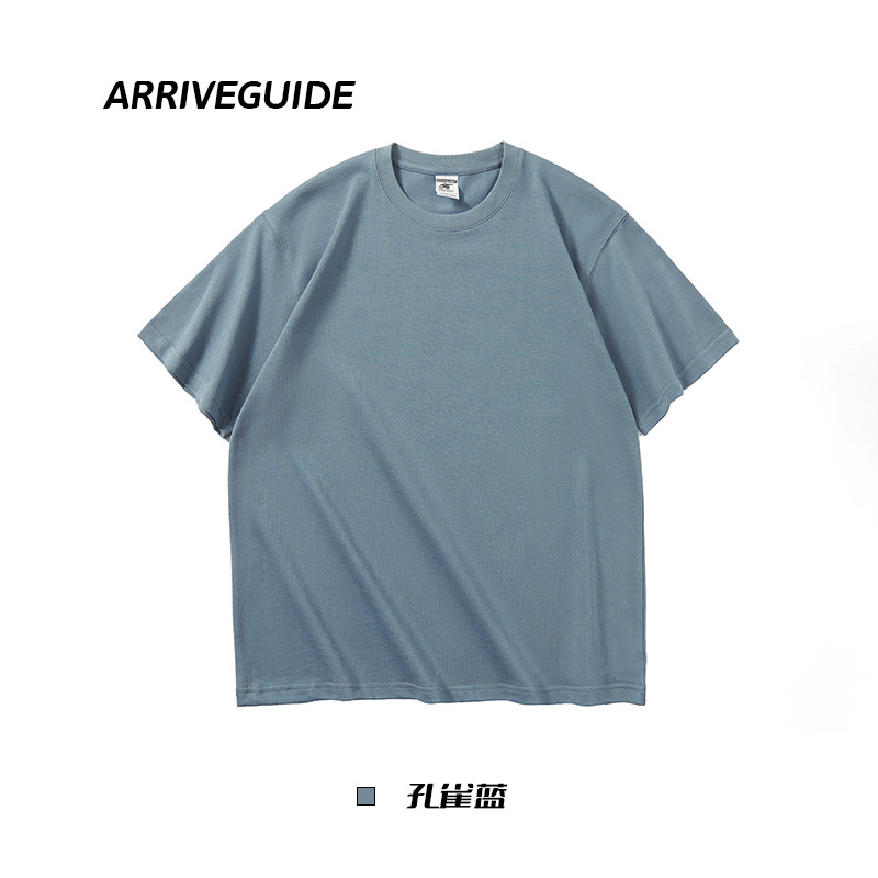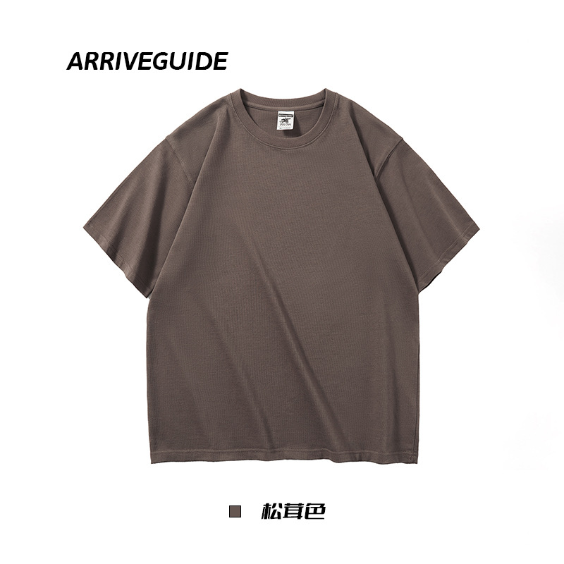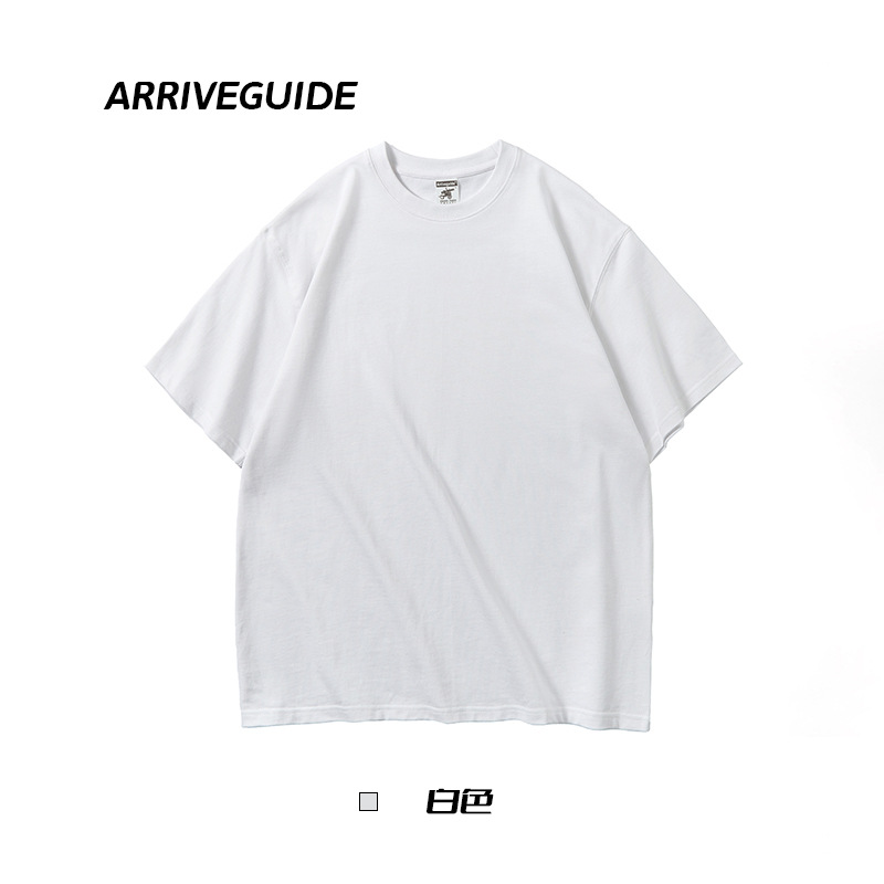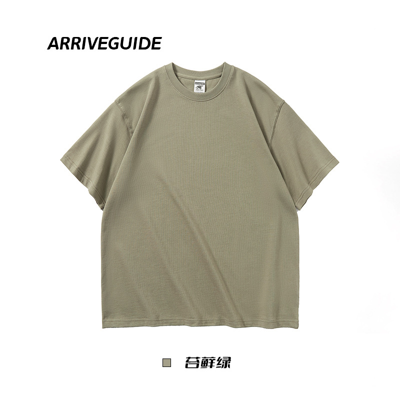 남자 여름 AG280 g 남자와 여자의 순면 반팔 티셔츠 솔리드 컬러 크루 넥 헤비급 레트로 패션 브랜드 루즈베이스 셔츠스토어 가기