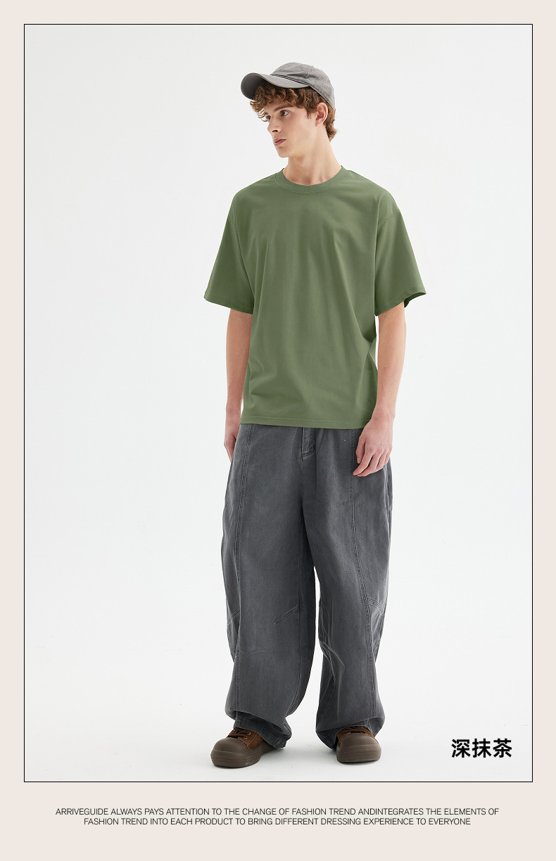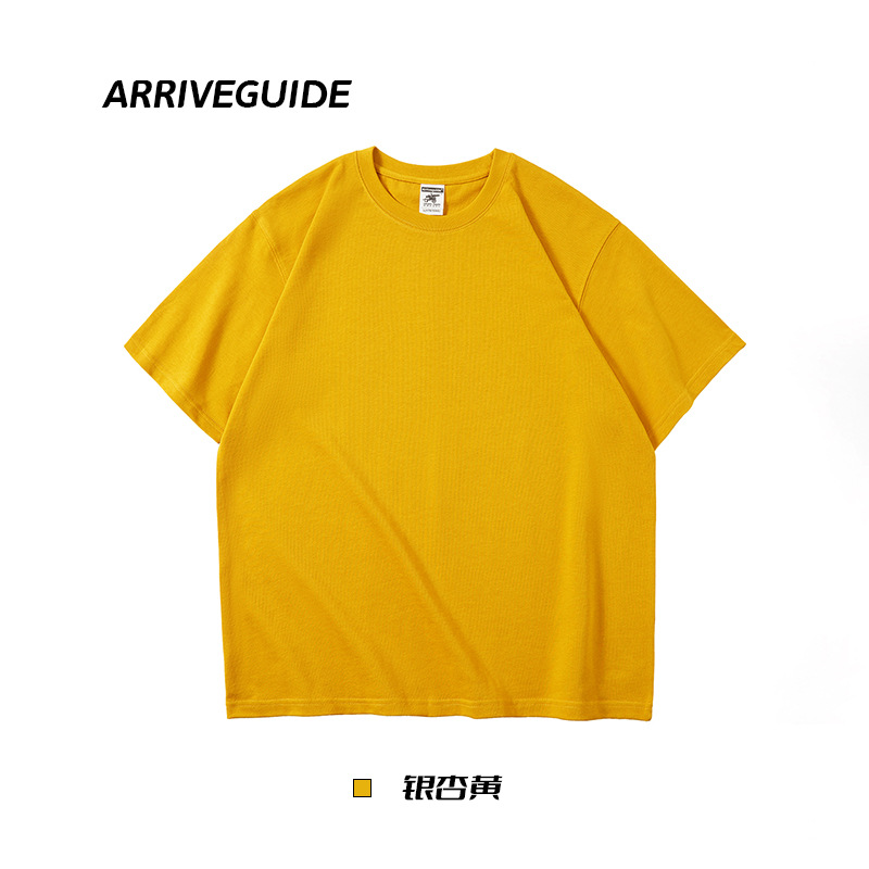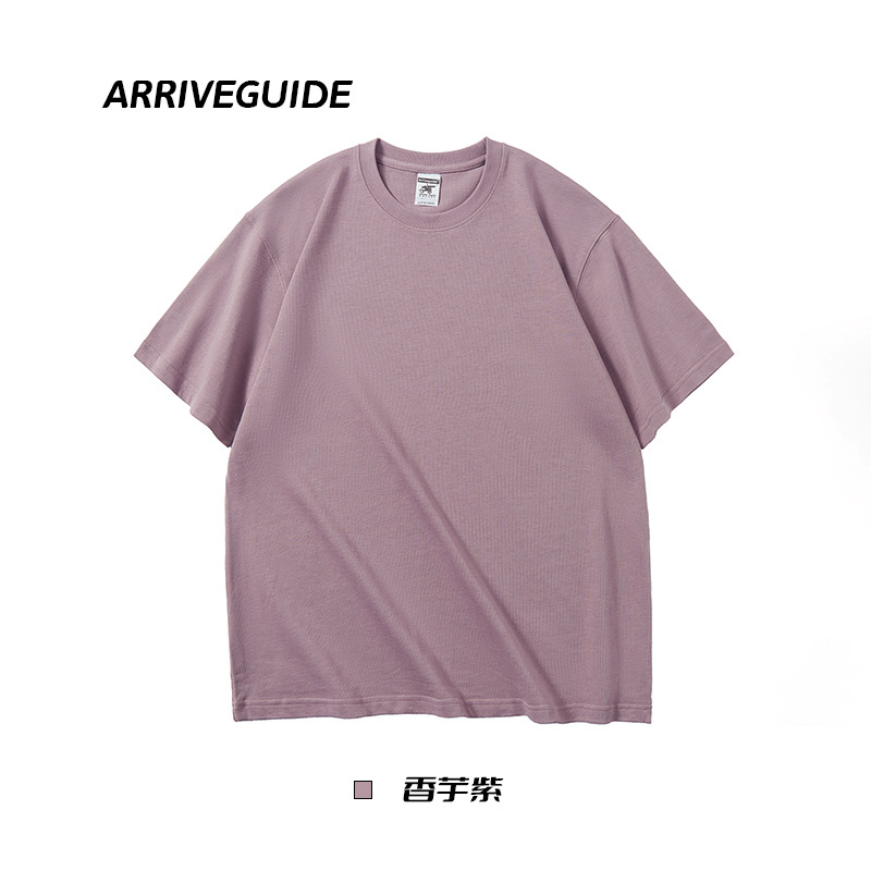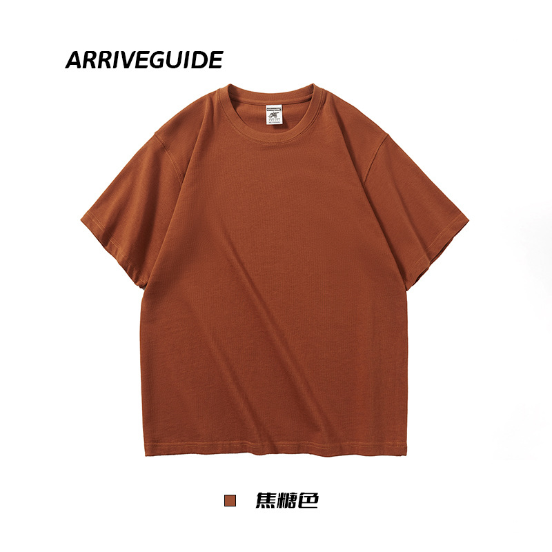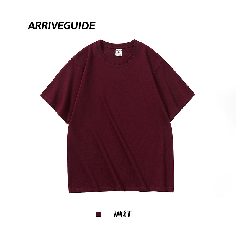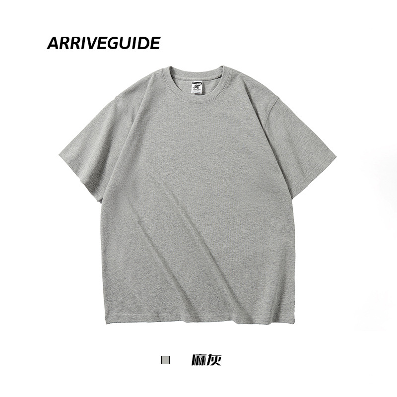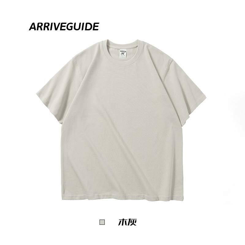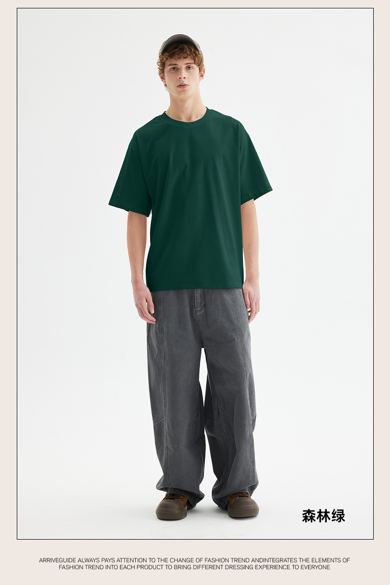 남자 여름 AG280 g 남자와 여자의 순면 반팔 티셔츠 솔리드 컬러 크루 넥 헤비급 레트로 패션 브랜드 루즈베이스 셔츠스토어 가기