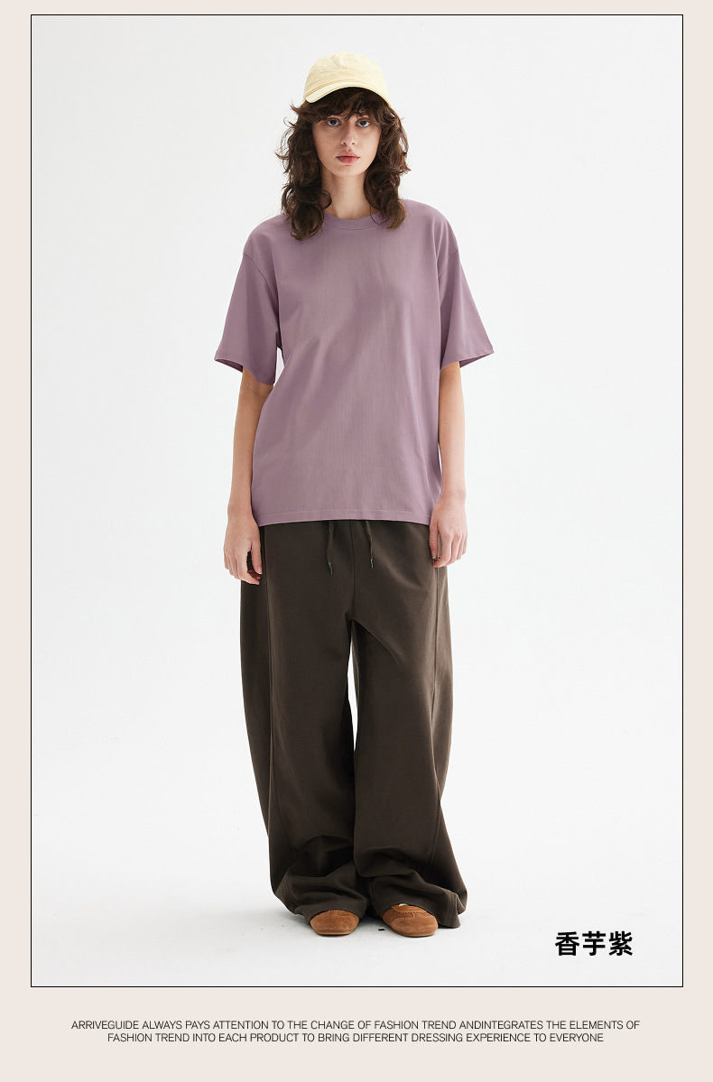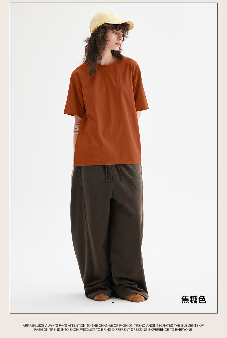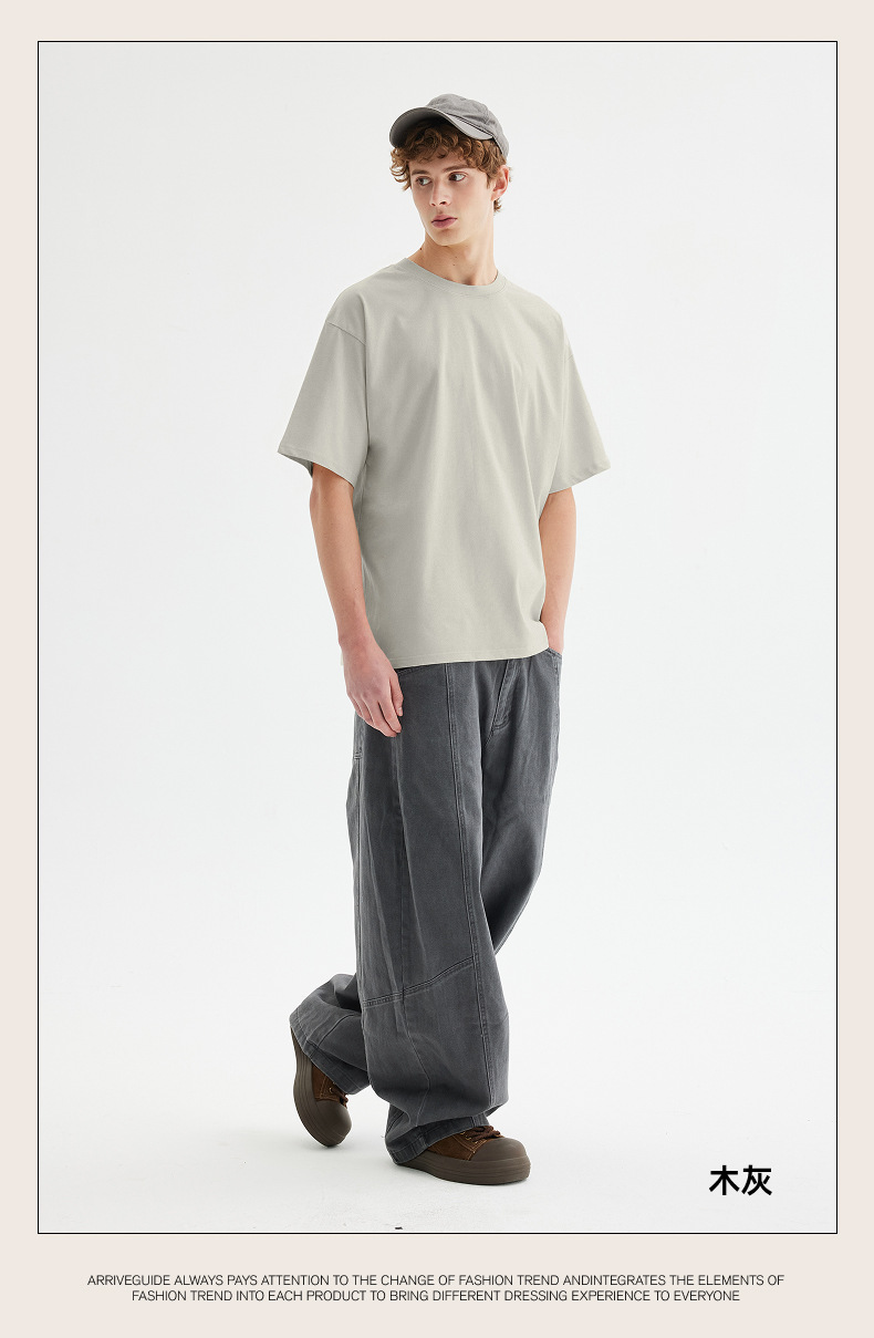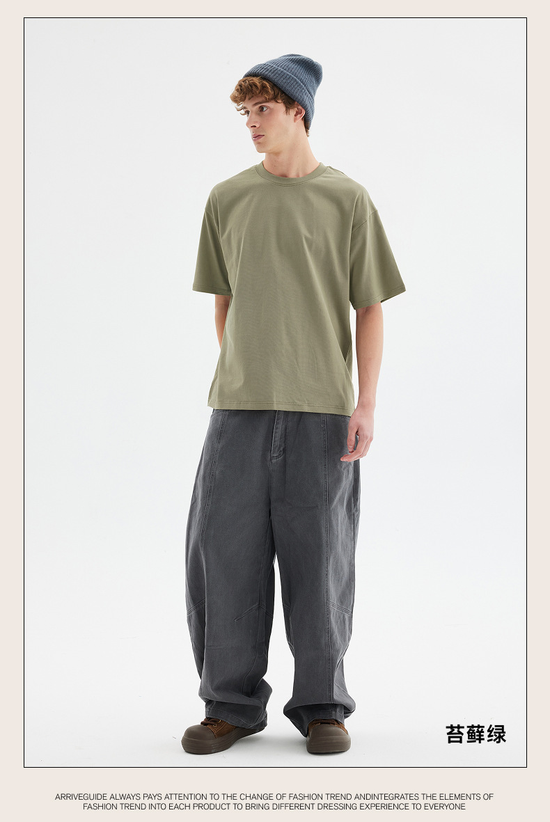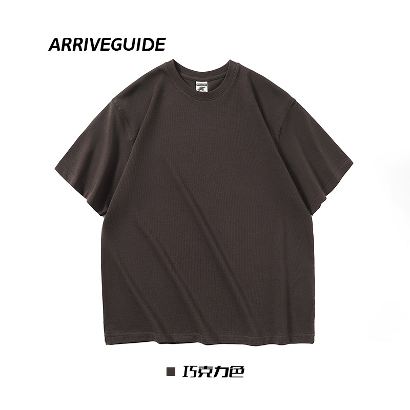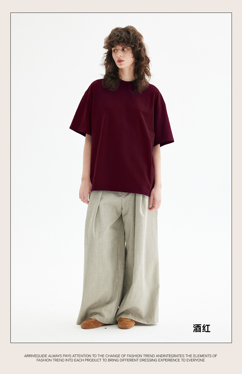 남자 여름 AG280 g 남자와 여자의 순면 반팔 티셔츠 솔리드 컬러 크루 넥 헤비급 레트로 패션 브랜드 루즈베이스 셔츠스토어 가기