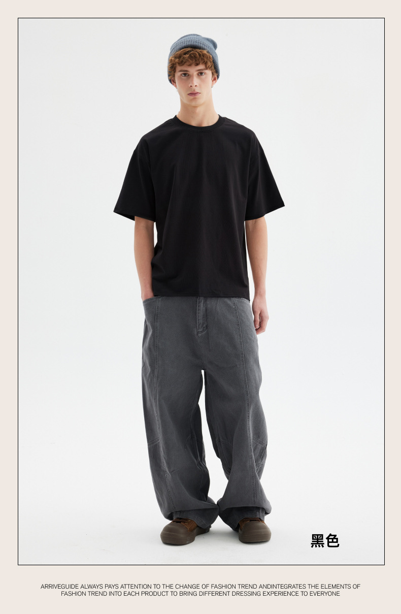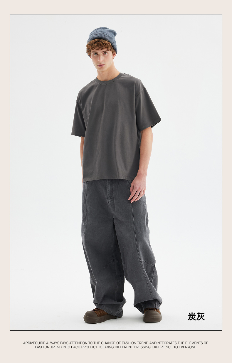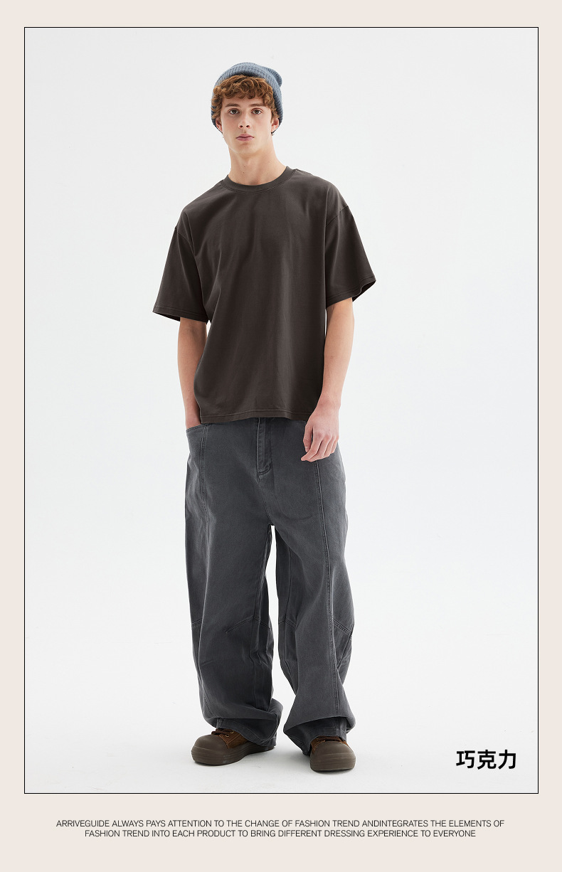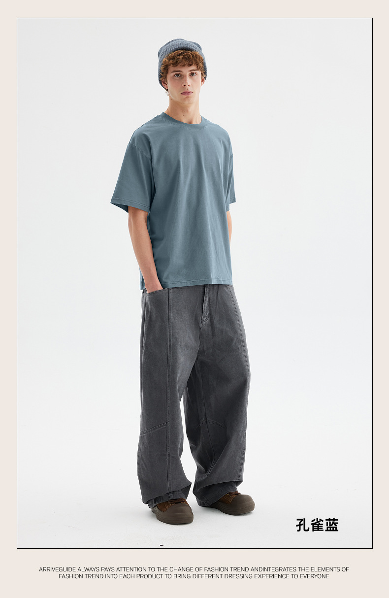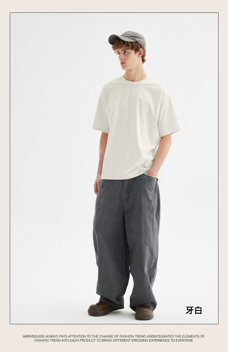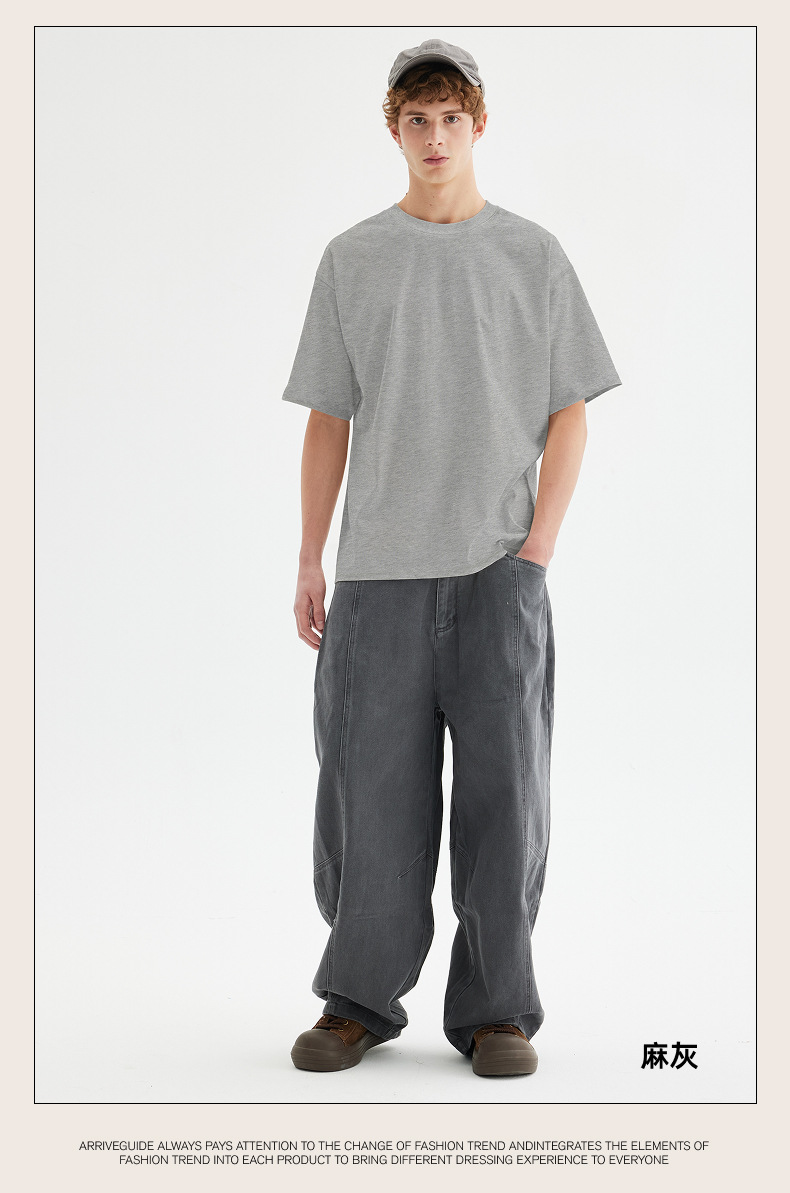 남자 여름 AG280 g 남자와 여자의 순면 반팔 티셔츠 솔리드 컬러 크루 넥 헤비급 레트로 패션 브랜드 루즈베이스 셔츠스토어 가기