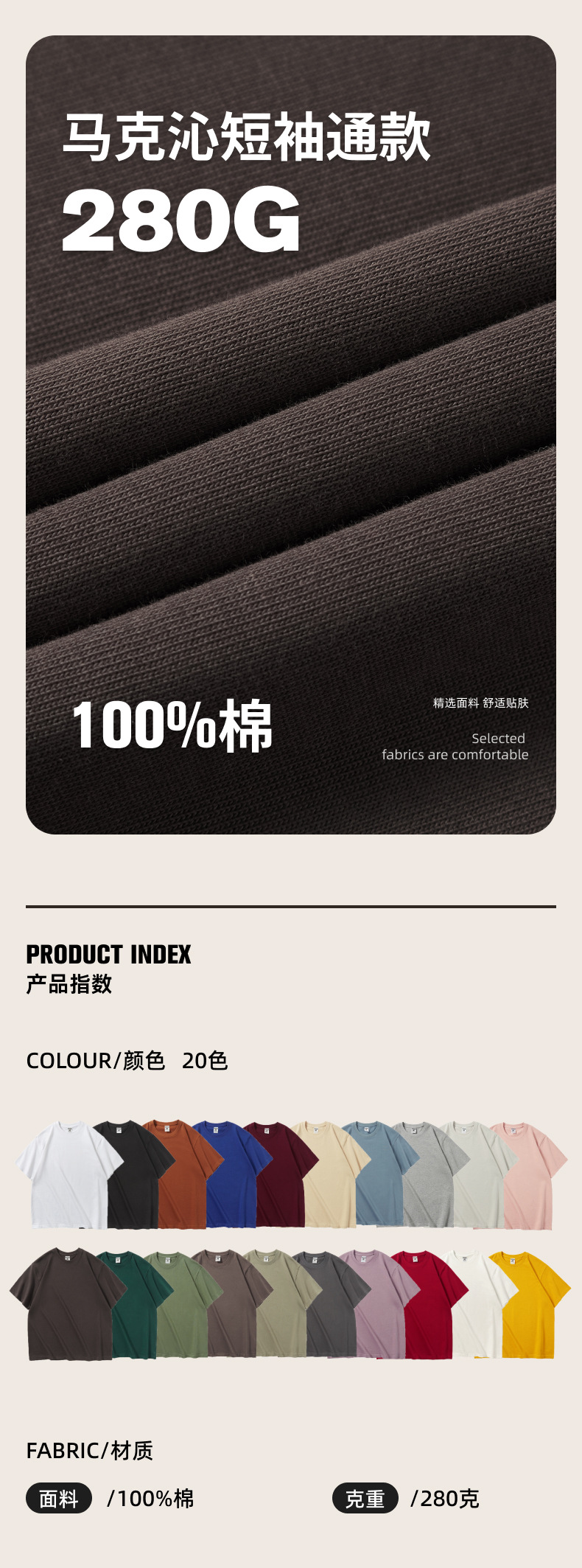 남자 여름 AG280 g 남자와 여자의 순면 반팔 티셔츠 솔리드 컬러 크루 넥 헤비급 레트로 패션 브랜드 루즈베이스 셔츠