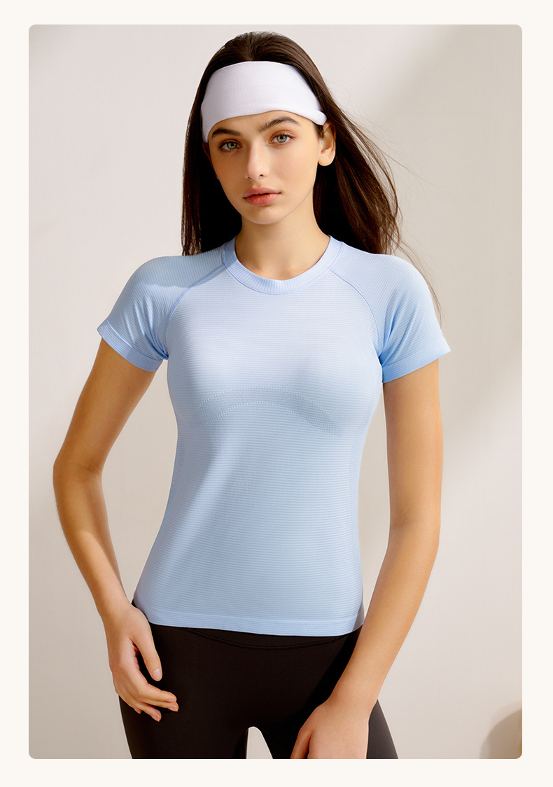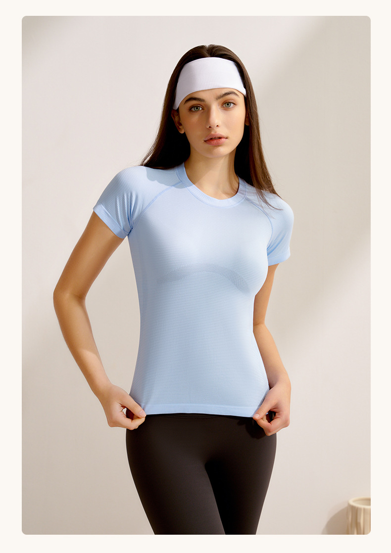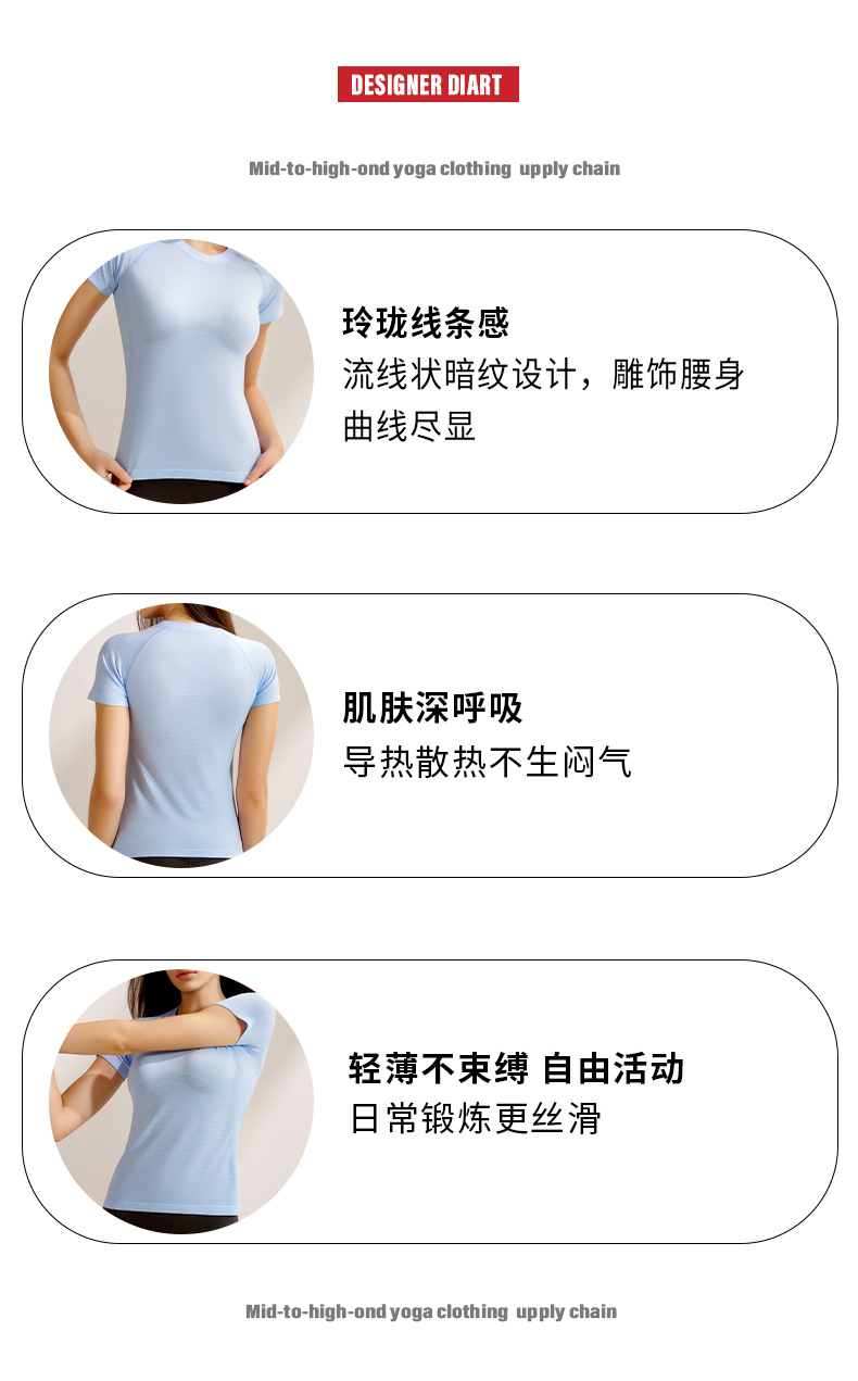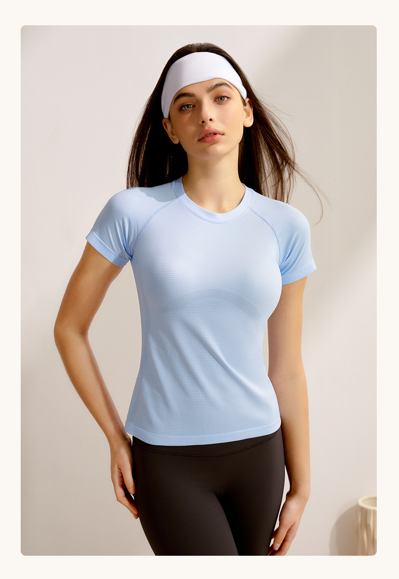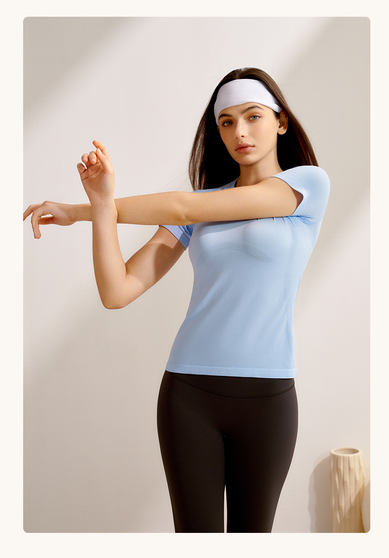 봄과 여름 새로운 요가 의류 여성 스포츠 최고 반팔 전문 필라테스 훈련 빠른 건조 달리기 요가 피트니스 의류스토어 가기