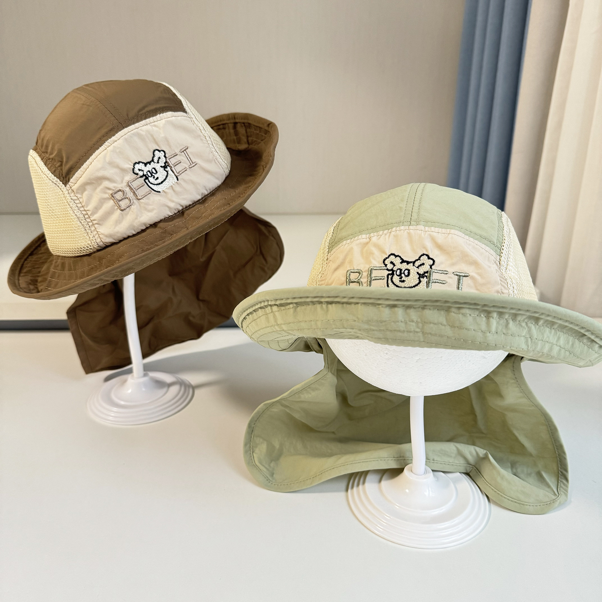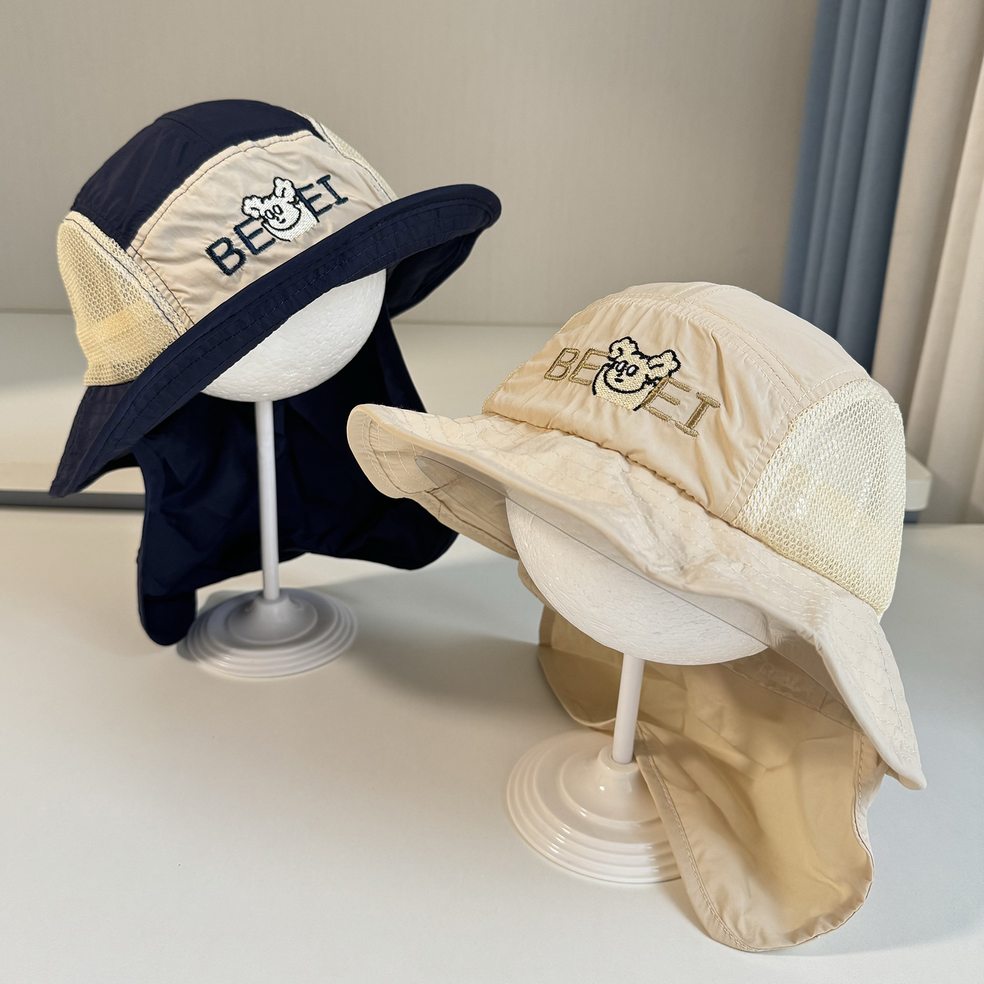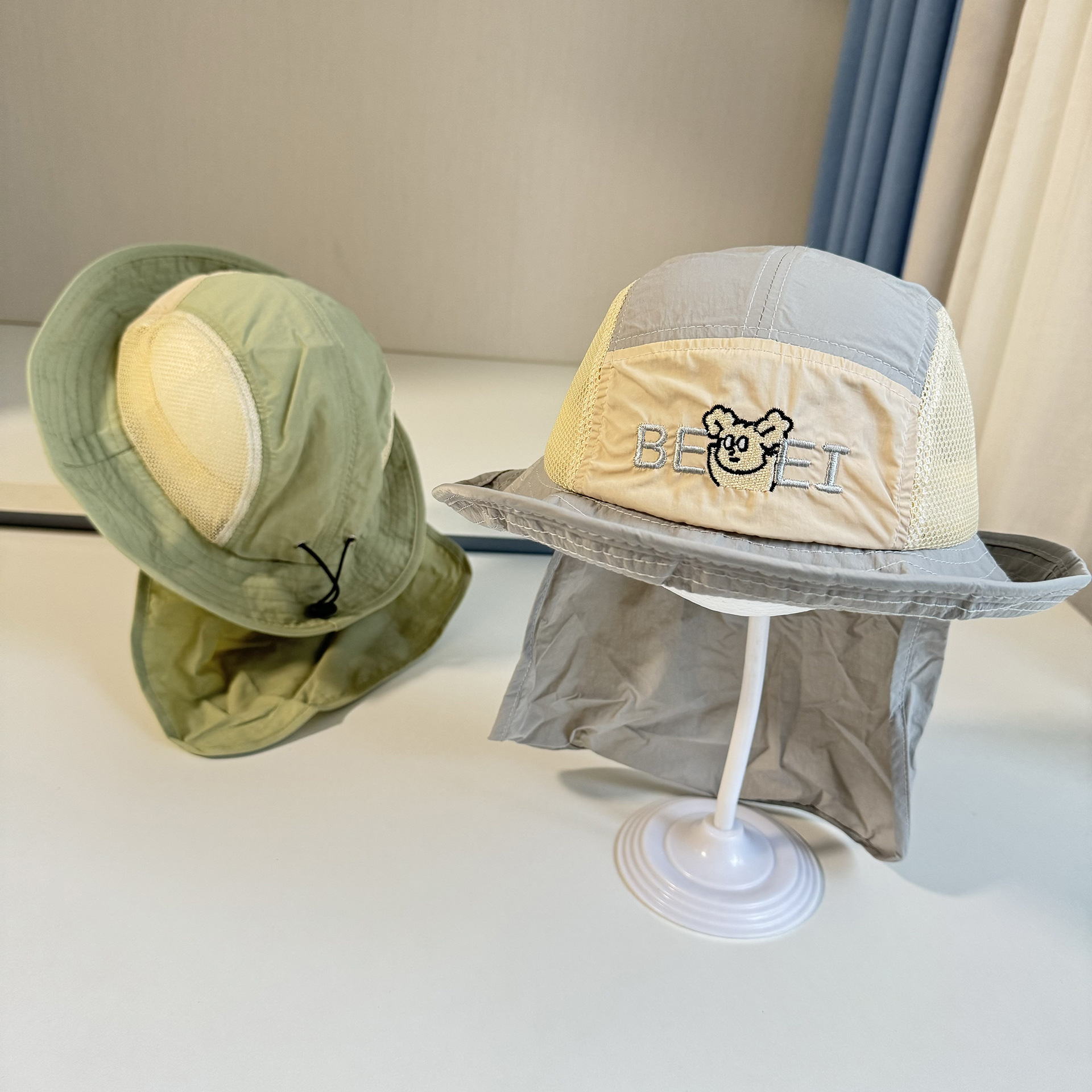 어린이 모자 빅 브림 어부의 모자 목도리 선스크린 빠른 건조 그물 태양 모자 일본 등산 얇은 통기성 어린이 모자