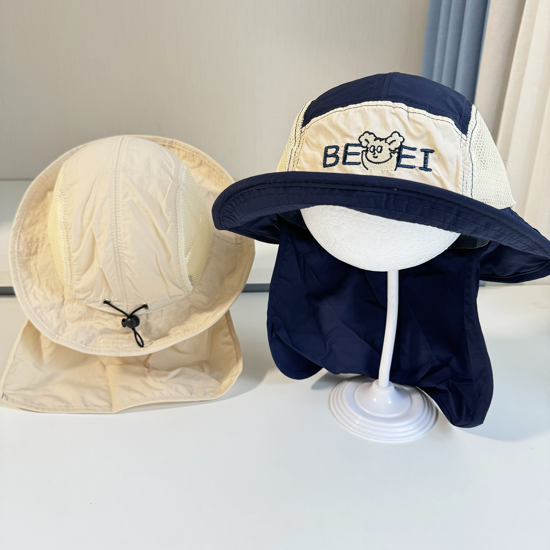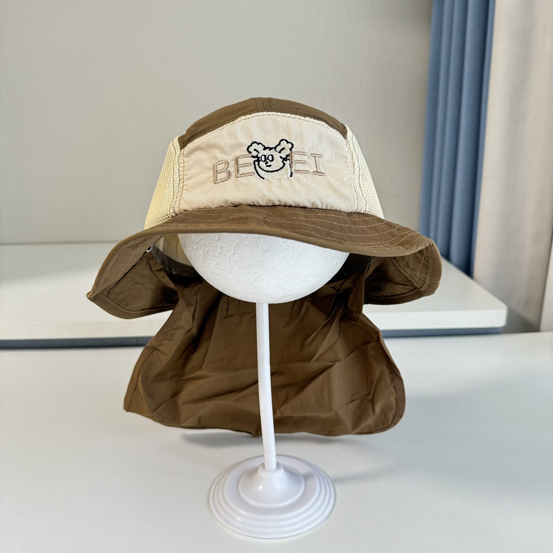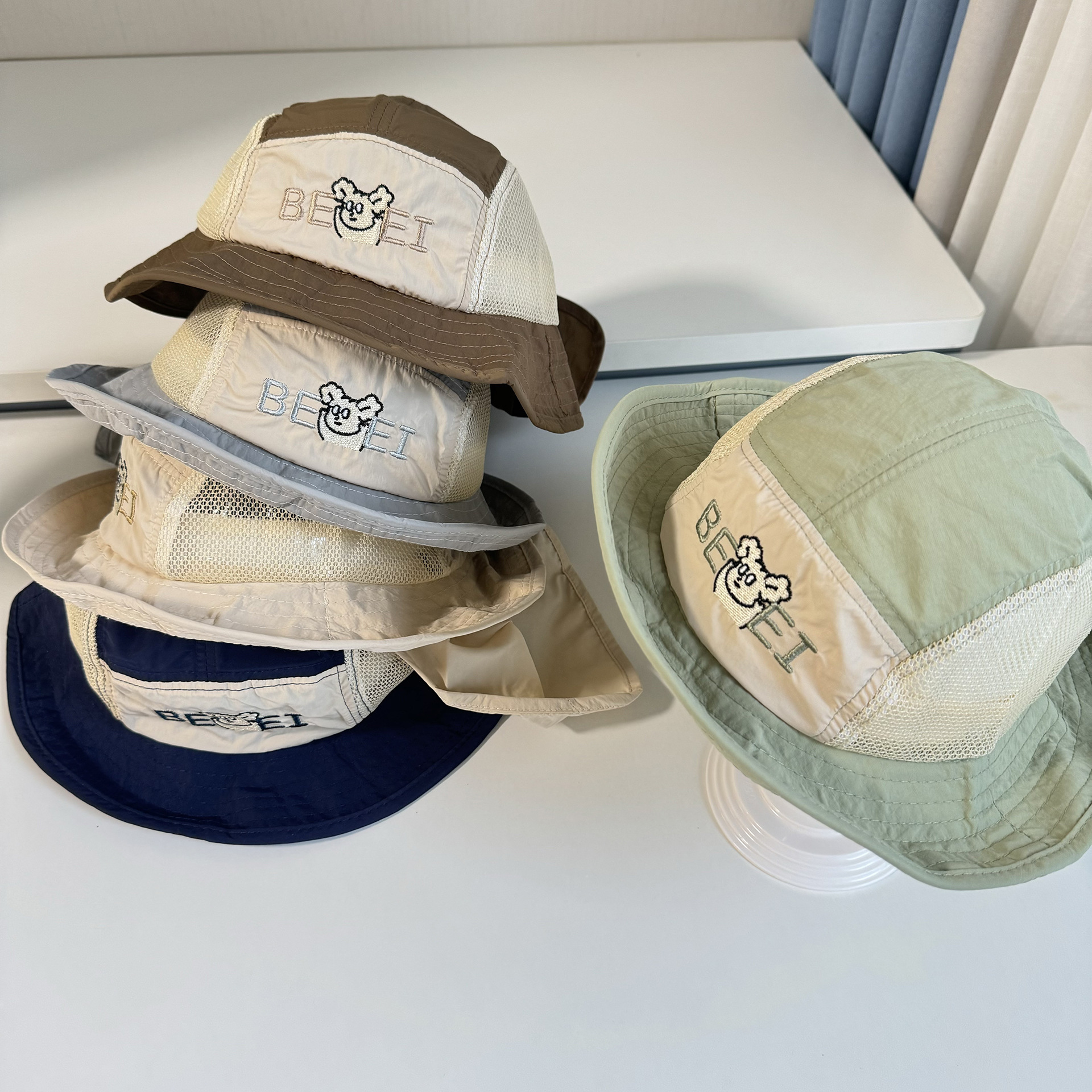 어린이 모자 빅 브림 어부의 모자 목도리 선스크린 빠른 건조 그물 태양 모자 일본 등산 얇은 통기성 어린이 모자