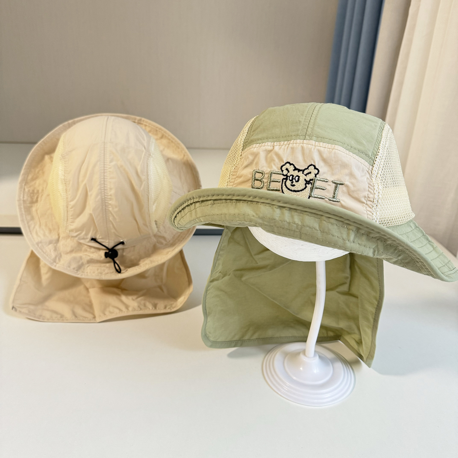 어린이 모자 빅 브림 어부의 모자 목도리 선스크린 빠른 건조 그물 태양 모자 일본 등산 얇은 통기성 어린이 모자스토어 가기