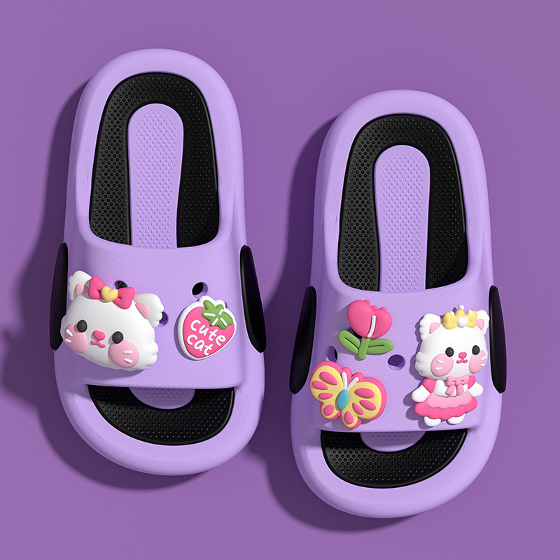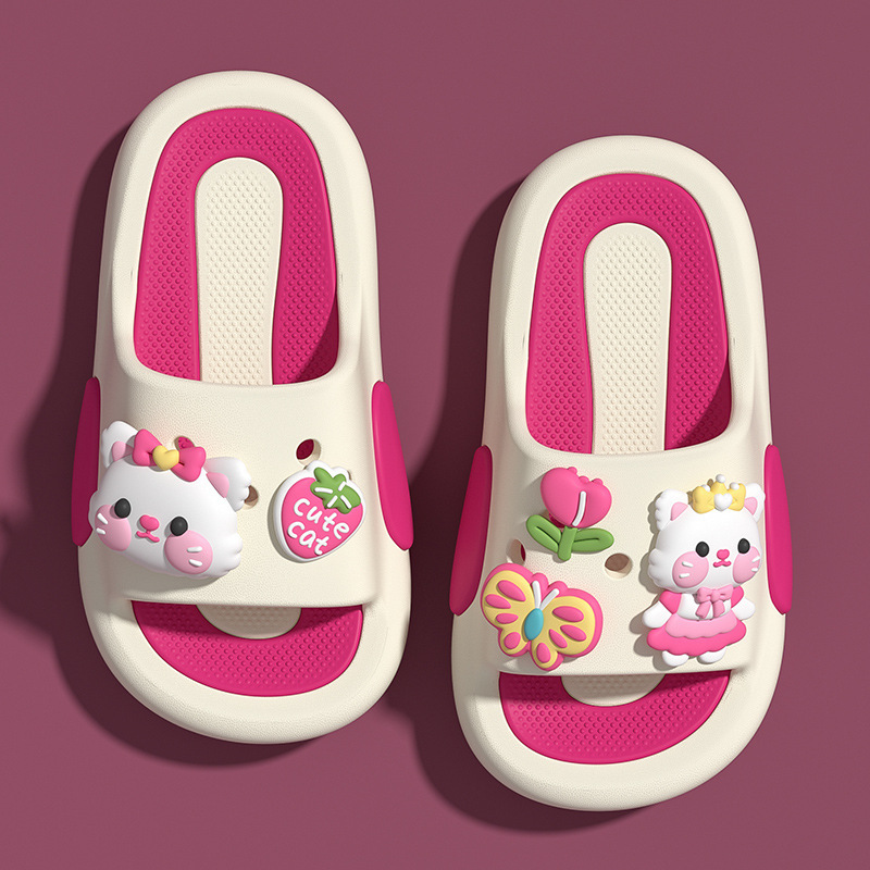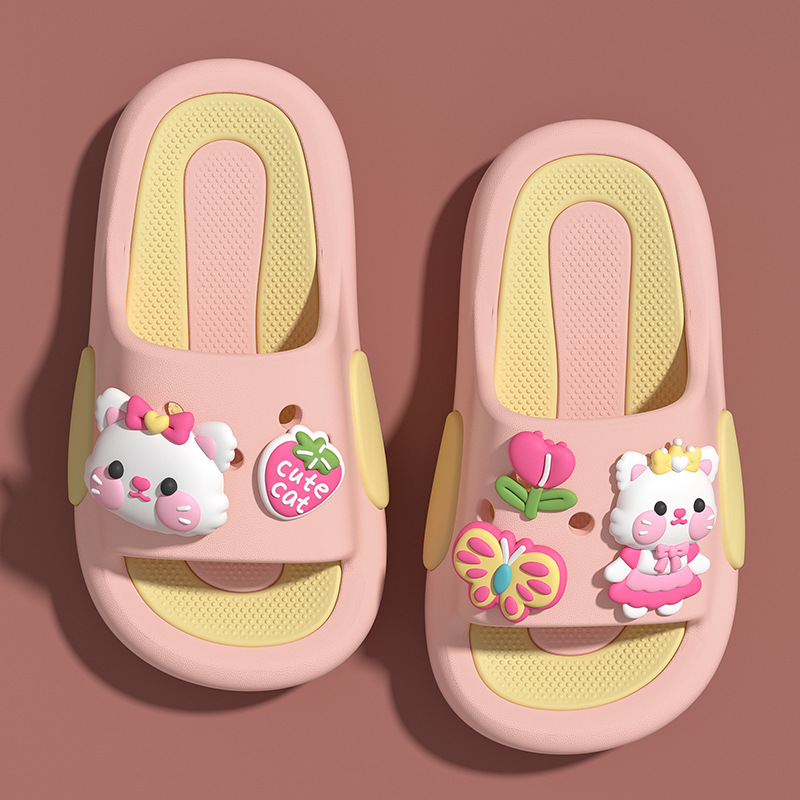 귀여운 새끼 고양이 귀여운 재미 만화 어린이 슬리퍼 소녀 여름 실내 홈 대형 어린이와 아기를위한 미끄럼 방지 샌들스토어 가기