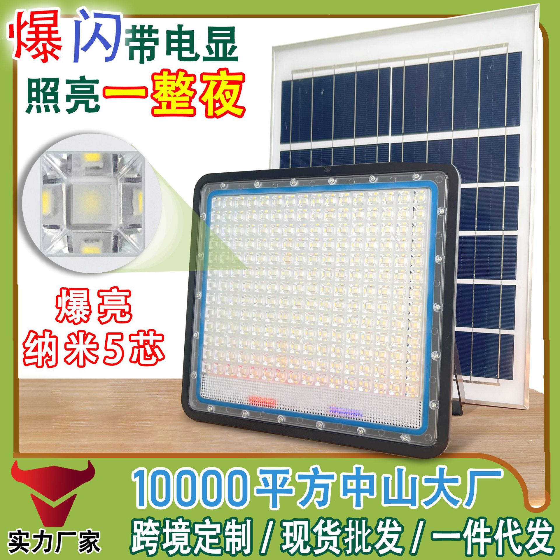 功能:有爆闪警告功能(可随时关闭)、充电指示功能、光控(白天自动关灯充电、晚上自动亮放电。(效果主图详情下面有!)