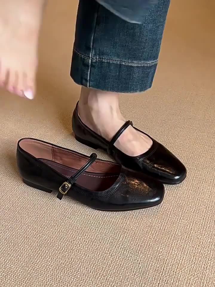 양가죽 버전 ~ 정품 가죽 프랑스 복고풍 한 단어 버클 벨트 메리 제인 신발 여성 평면 우아한 얕은 입 신발 작은 가죽 신발스토어 가기