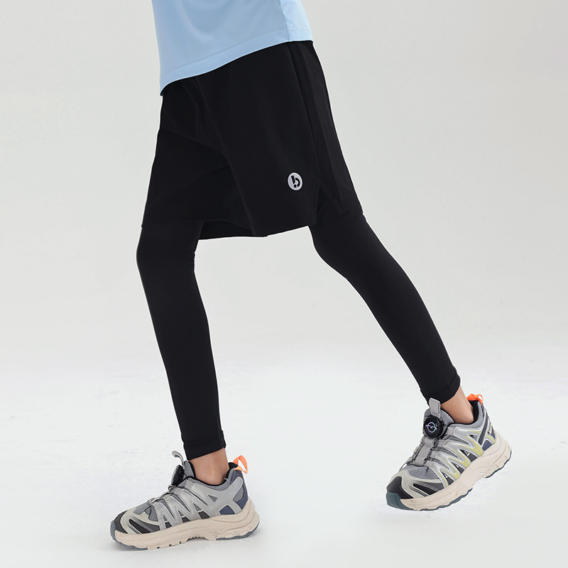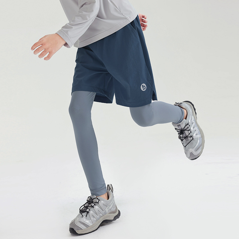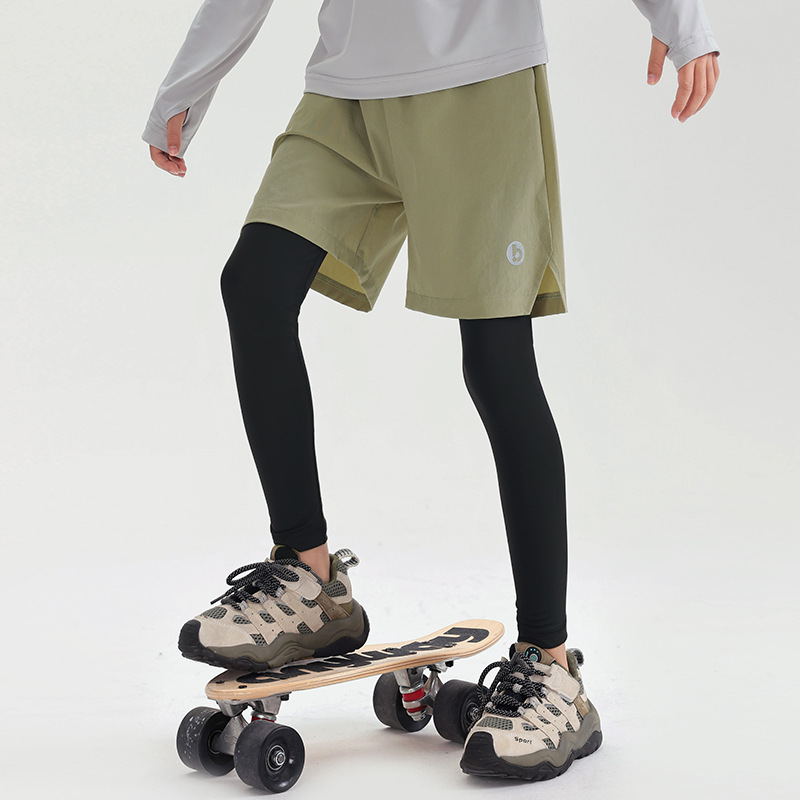 소년의 빠른 건조 바지 어린이 봄과 가을 가짜 투피스 스포츠 바지 체력 피트니스 중간 및 큰 어린이 달리기 훈련베이스 바지