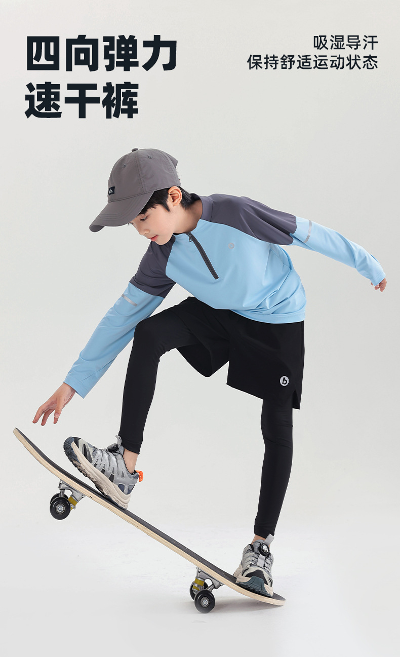 소년의 빠른 건조 바지 어린이 봄과 가을 가짜 투피스 스포츠 바지 체력 피트니스 중간 및 큰 어린이 달리기 훈련베이스 바지스토어 가기