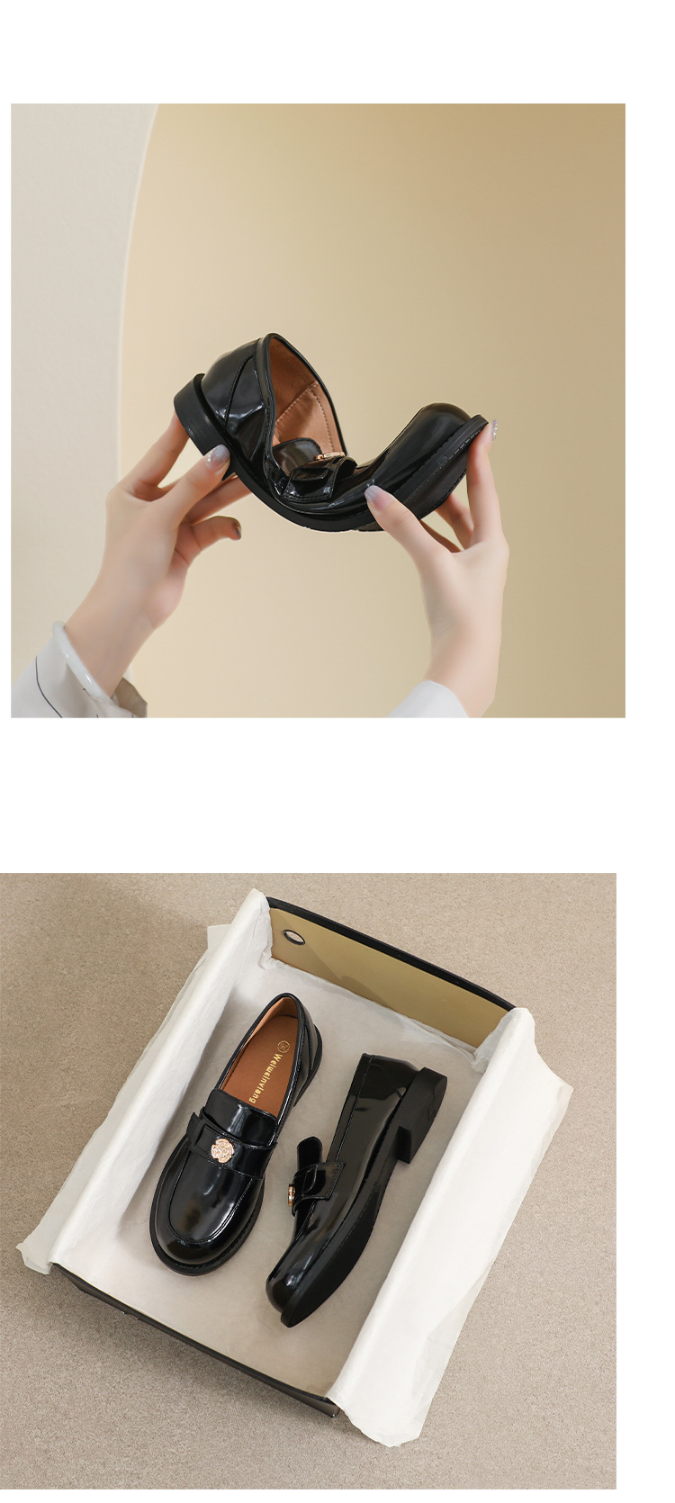 영국 두꺼운 가죽 신발 여성 치마 2025 봄과 가을 우아한 둥근 발가락 페달 두꺼운 굽 JK 싱글 레이어 신발 여성의 부드러운 밑창스토어 가기